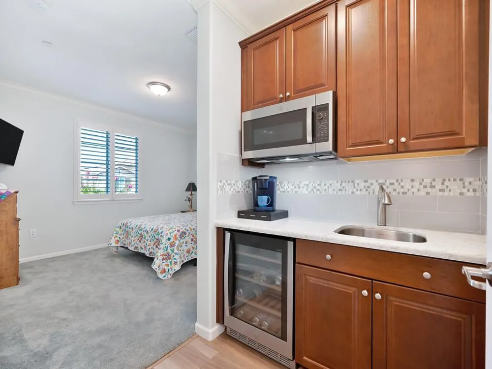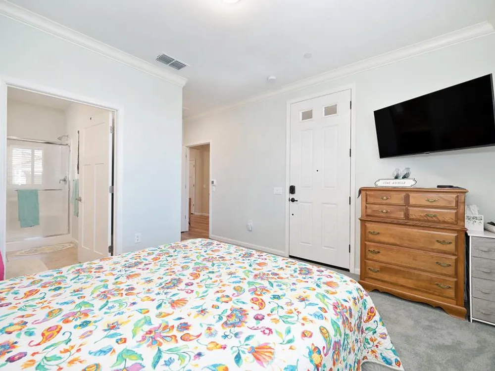 Welcome to the sought after Vineyard Creek Active Adult community! Upgrades galore in this beautiful Lennar built home that features a junior ADU with its own entrance, bathroom and kitchen! Beautiful vinyl plank flooring, quartz counters, owned ten panel solar system, GE Profile stainless steel appliances, drawers & cabinets feature pull outs for easy access, cellular window shades, shutters, crown moulding, great laundry room with sink and a huge walk in storage closet, smart home with three thermostats, fire sprinklers, large lot that features Clementine, Meyer lemon, blueberry, thornless berry, pineapple guava and fig fruit trees! The Resort features tons of activities, fitness room, lodge with double sided fireplace & kitchen, community garden, vineyard area, picnic tables, fire pit, two lighted Pickle Ball courts, Bocce ball court, sparkling pool, spa and much more! Whether you are looking to be active, social or just relax-you can find just what you need down the street at The Resort!