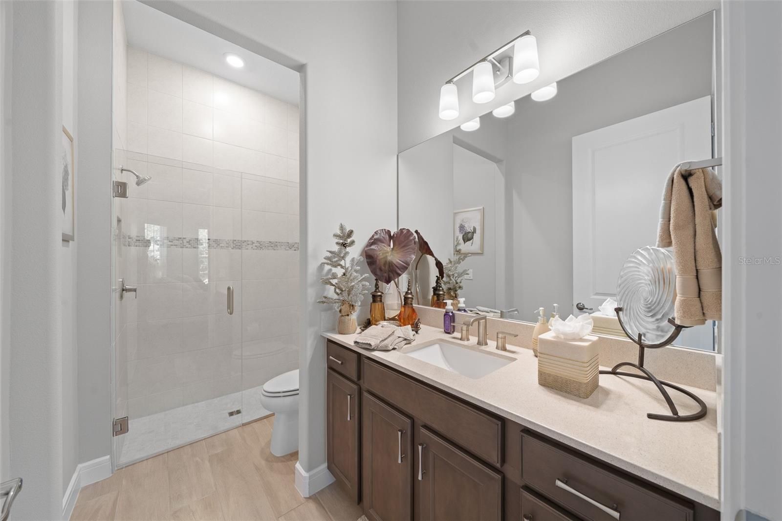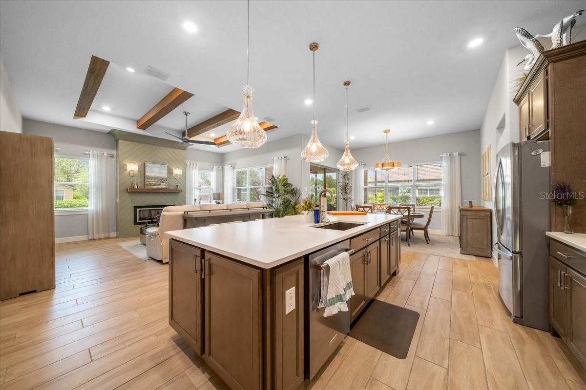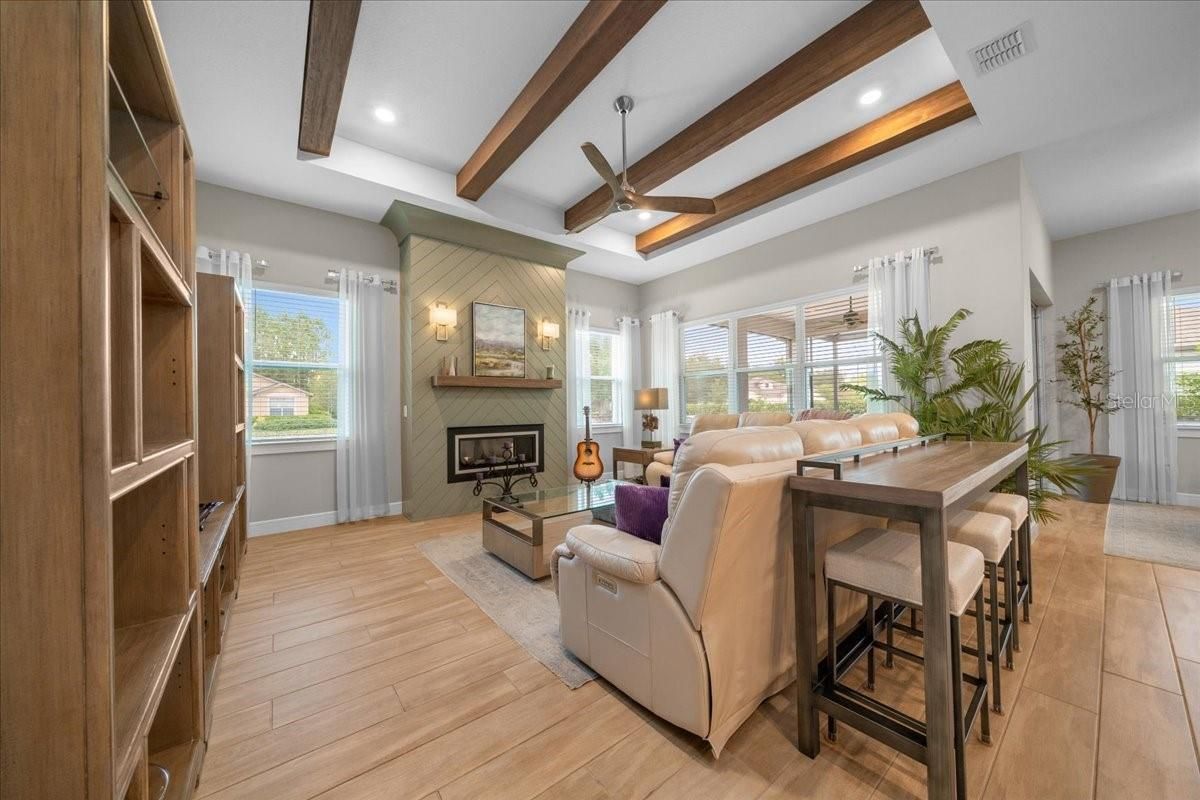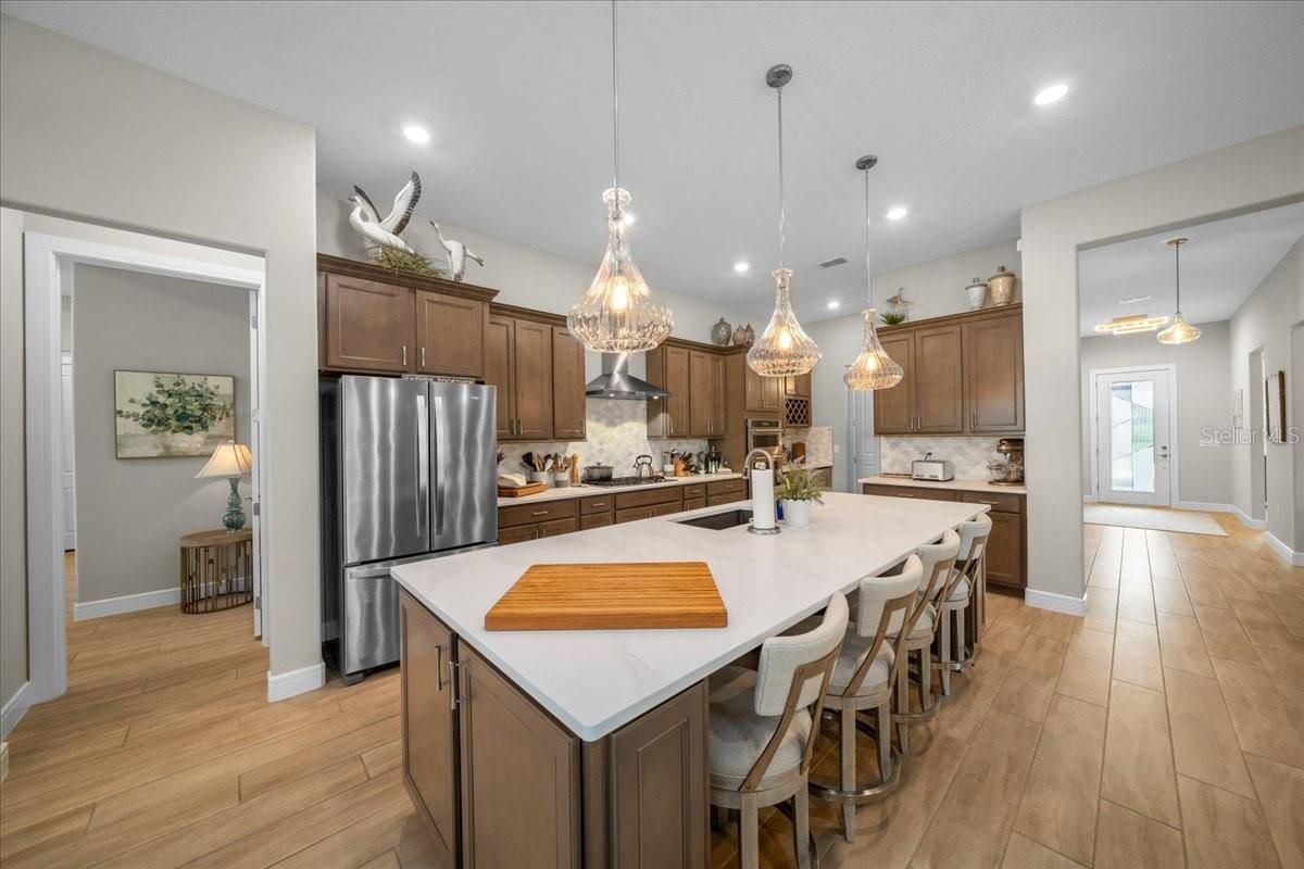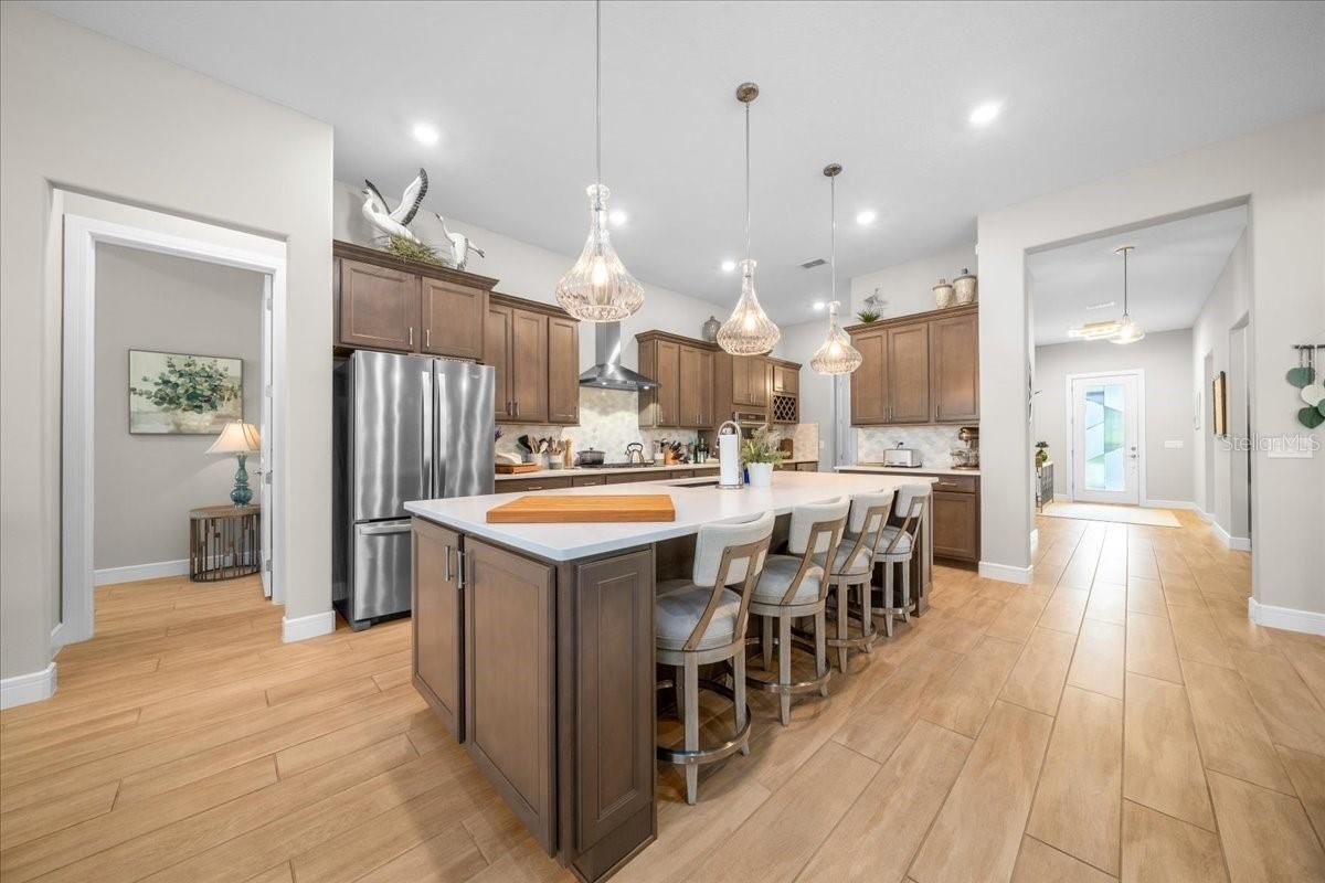 ONE of a KIND RENOWN model * 3 Bedrooms each with a private FULL bathroom * 1/2 bath for guests * 2 Car garage WITH golf cart garage * Double Corner lot * Paver Driveway * Landscaped with curbing & rock beds * LP (liquid propane) 120-gallon tank installed operating indoor Fireplace & cooktop – Still over half left, filled installed 8/2022 * Screened Front entry * 10.5 Ft Ceiling Height * 5 ¼ Baseboards * Rounded Corner * 2” Faux Blinds with custom window treatment * Coat closet * Linen closet for each bathroom * Added Additional recessed lighting added throughout * Upgraded wall switches * Custom design lighting * Modern upgraded fans * Upgraded SAME tile throughout the home * Tinted sliding glass door for privacy * ONE guest suite bathroom is GLASS tile showers, ONE is TUB/TILED shower * Tray ceiling in owner’s suite with upgraded lighting * Extra-large Roll in shower with bench in the owner’s suite * Added Medicine cabinets in owner’s suite * ADDED extra wall outlets at owners suite sink * BOTH Owner’s suites closets upgraded with built in’s & custom lighting * Laundry room access through 2nd owner’s suite closet w/full sink, cabinets & large folding counter OR use it as a BUTLERS kitchen area, has extra outlets * ALL other Closets upgrade with built in’s & upgraded shelving * Tray Ceiling with WOOD beams in Living room * LP Fireplace with shiplap * GOURMET kitchen * LEATHER Quartz countertops in Kitchen & Owner’s suite * Upgraded Stainless Appliances with WOLF GAS stove * Stackable oven/microwave * WINE Chiller * Pantry * Upgraded Cabinets offers pull outs & SOFT close * Custom backsplash * Overhead Storage RACKS in the garage * Built in cabinets in the garage * Epoxied garage floor * Screened garage door * 30 amp outlet in garage * Extended, Screened, and pavers in the lanai (29.5 X 26.5) * Extended Pavers to Knee/sitting wall bench, & sitting area. Del Webb Stone Creek is an active 55 plus community which offers a fitness center, spa, basketball, dog park, pickle ball, softball, tennis, heated resort-style pool, walking & bike paths, catch & release fishing pier. For additional fees a golf course, grille and cafe' is on site. Don't miss out on the opportunity to own this amazing ready to move in home, schedule your showing today!