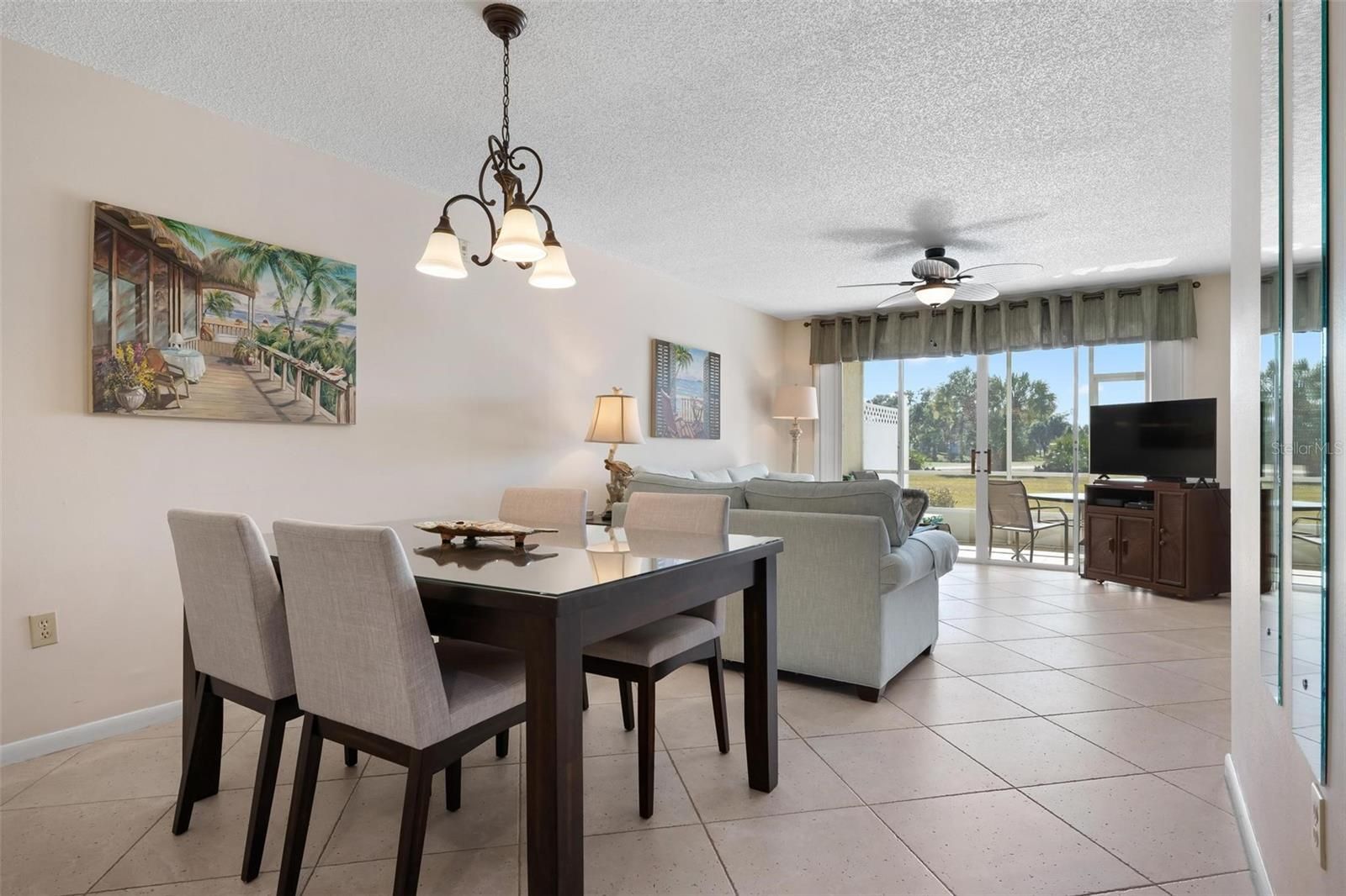 Immaculate and turnkey furnished, this desirable ground-floor Ninth Fairway residence welcomes you with sweeping golf and water views and a sunny southern exposure that fills the home with natural light all year long. A bright, open living area showcases diagonal-set porcelain tile and a wall of sliding glass doors that lead to a screened and covered balcony overlooking expansive fairway vistas and swaying palms—an ideal setting to enjoy Florida’s tropical breezes and tranquil surroundings. The well-updated interior features clean white cabinetry, granite countertops, and comes fully outfitted with furnishings, décor, and home goods, making this a true move-in-ready opportunity where all you need are your clothes and a toothbrush. Major updates include a new AC in 2021 and a roof replacement in 2018, offering peace of mind along with exceptional presentation. Just steps away, the heated community pool and clubhouse overlook the golf course and serve as a lively hub for residents, hosting card and table games, water aerobics, and regular social gatherings that make it easy to connect with neighbors and enjoy an active lifestyle. Optional membership at Plantation Golf & Country Club offers an array of resort-style amenities including two championship golf courses, pickleball, Har-Tru tennis, bocce, a fitness center, a resort pool, and multiple dining and social venues. Ideally located within 15 minutes of area beaches, the charm of historic downtown Venice, the energy of Wellen Park, and CoolToday Park, this residence places you close to shopping, dining, and year-round recreation. More than just a condo, this home delivers a true sense of well-being and effortless Florida living—perfectly positioned to enjoy its exceptional setting, tropical climate, and the relaxed elegance of life at The Plantation.