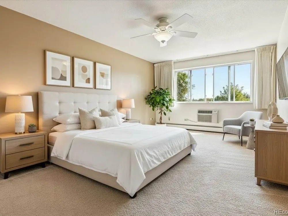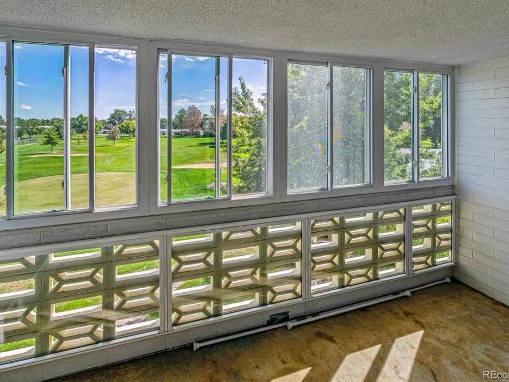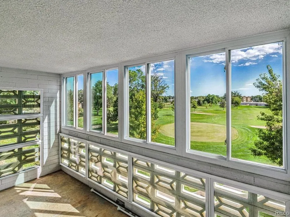 One of the best golf course views in Windsor Gardens- this condo is 1200 sf, with 2 bedrooms, 2 bathrooms, and includes a 1 car detached garage! Priced to sell- this condo offers spacious rooms and golf course views from both bedrooms and lanai. The kitchen includes the existing appliances, and lots of cabinet space plus double sided pantry. Double pane vinyl slider door and vinyl glass/screen lanai enclosure- included! Both living room and primary bedroom include digital wall a/c units. Multi-purpose room offers shelving for lots of storage- or can turn this into mini-office/hobby space. Bonus storage room on same floor in building. If you are looking for a condo to update to your liking- in an amazing location, this is the one! **Windsor Gardens is Colorado's Largest Age 55+ Active Adult Living Condo Community. Did you know? Monthly HOA Dues include annual property taxes! And heat, water, sewer, trash, round-the-clock patrolling community responders, full time onsite association management, grounds/building maintenance, and activities department. Enjoy clubhouse amenities such as fitness center, indoor/outdoor pools, hot tub, sauna, billiards, library, craft rooms for ceramics, sewing, woodworking, and 9 hole par 3 golf course and onsite restaurant both open to the public. Stay engaged with a wide array of activities, clubs, and events scheduled every month. Additional features include garden plot program, private walking trail and nature preserve, and RV/Boat storage. The Highline Canal runs full length along south side of the complex. RTD Bus Stops located thru-out the community. FHA/VA approved. Close to restaurants, stores, shopping…Minutes to Lowry, Hwy 225, Cherry Creek…Easy access to DIA and downtown. Come see for yourself what Windsor Gardens has to offer. ©2021**