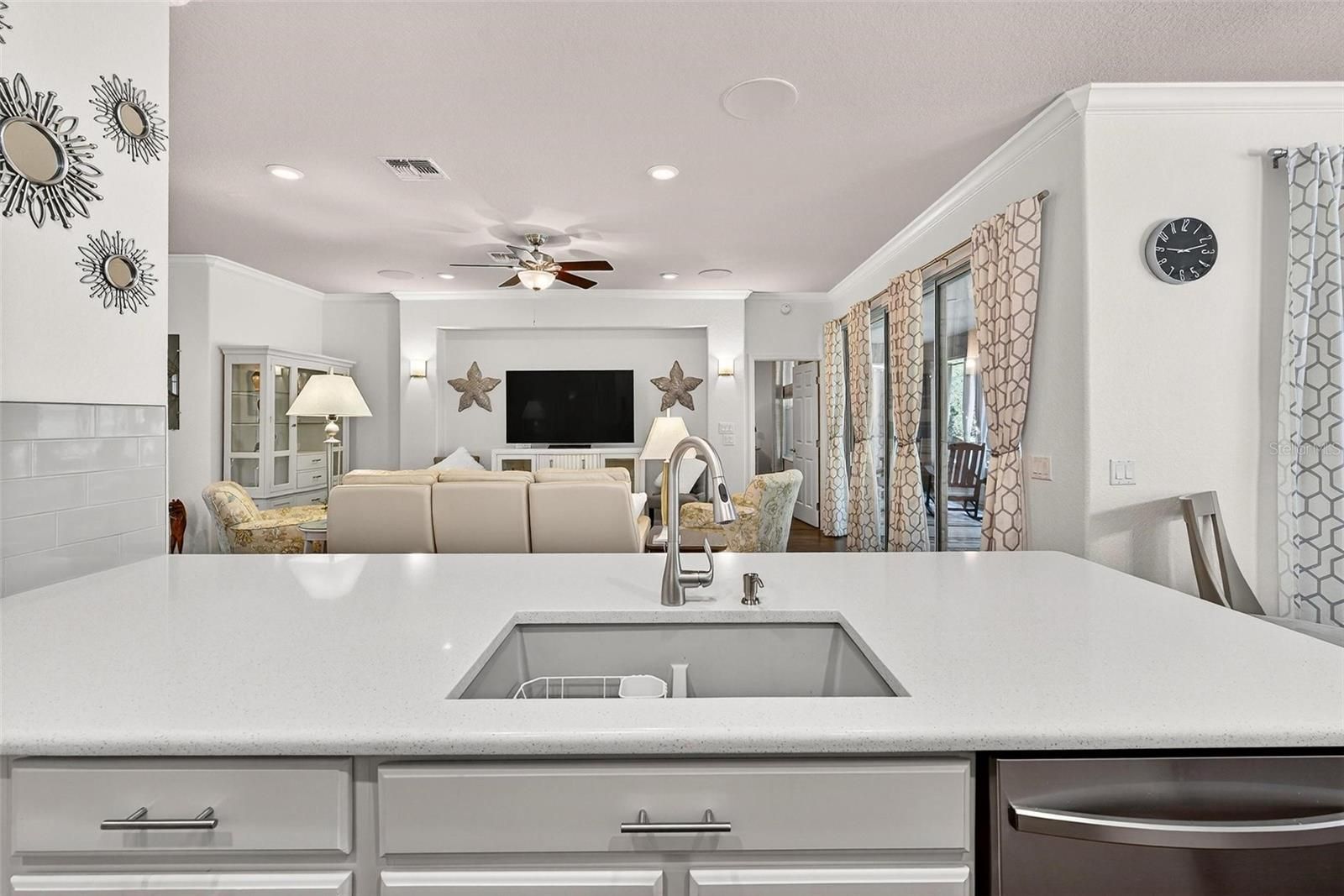 Located in Ocala’s premier gated 55+ active community, this beautifully updated Stetson model offers 2 bedrooms, 2 baths, a den, and a spacious two-car garage. Enhanced with multiple attractive upgrades, this home shines with over $90,000 in recent upgrades, including a **new roof**, **fully remodeled kitchen**, **new appliances**, **updated bathrooms**, **new flooring**, ** additional built in carpentry with butcher block counter in dinning room, **bar door access to primary bath and walk-closet**, **fresh interior and exterior paint**. You’ll love the inviting curb appeal with a paver driveway and walkway, screened front porch, and a covered back porch. Inside, the open floor plan features a formal dining area and a stunning kitchen with stone countertops, tile backsplash, and a convenient closet pantry. The family room boasts triple sliders that fill the space with natural light and open to the screened lanai, seamlessly blending indoor and outdoor living. The primary suite offers comfort and convenience with dual sinks, a walk-in shower, linen closet, and an oversized walk-in closet. This home is also handicap-ready with no thresholds and wheelchair-accessible doorways. Additional smart-home features include app-ready front door access, sprinkler system, and thermostat. This exceptional community offers unmatched amenities such as indoor and outdoor heated pools, saunas, spas, a clubhouse, full-service restaurant and bar, golf, fitness center, multiple sports courts, walking trails, and golf-cart access to nearby shopping, dining and Top of World Square. Ideally located close to medical facilities, shopping, restaurants, and just 7.5 miles from the World Equestrian Center. Move-in ready and designed for comfort, convenience, and an active lifestyle—this home truly has it all!