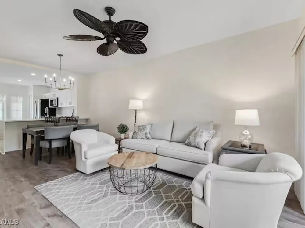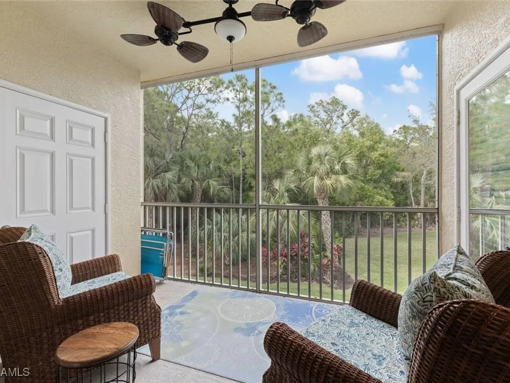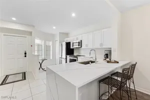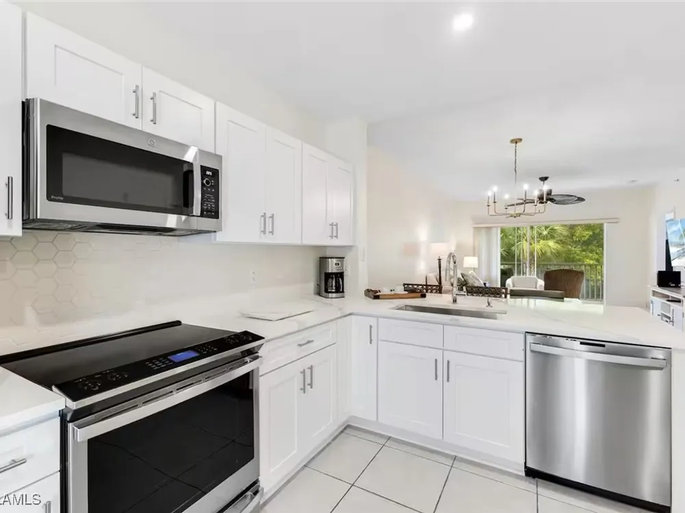 Beautifully upgraded and move-in ready, this second-floor 2-bedroom, 2-bath condo offers both privacy and security. Renovated in summer 2023, the home features an upgraded kitchen with new cabinetry, quartz countertops, stainless appliances, and tile backsplash. Both bathrooms were luxuriously remodeled—the primary bath showcasing a frameless glass shower, double vanity, and modern fixtures. Additional updates include a new washer and dryer, plus stylish living room furnishings with media center and television. Priced below reproduction cost. Coral Falls residents enjoy a private pool, on-site dining at Sam Snead’s Tavern, and optional membership to The Player’s Club & Spa. With a prime location between Naples and Marco Island and weekly rentals permitted, this condo is ideal for both personal enjoyment and investment.