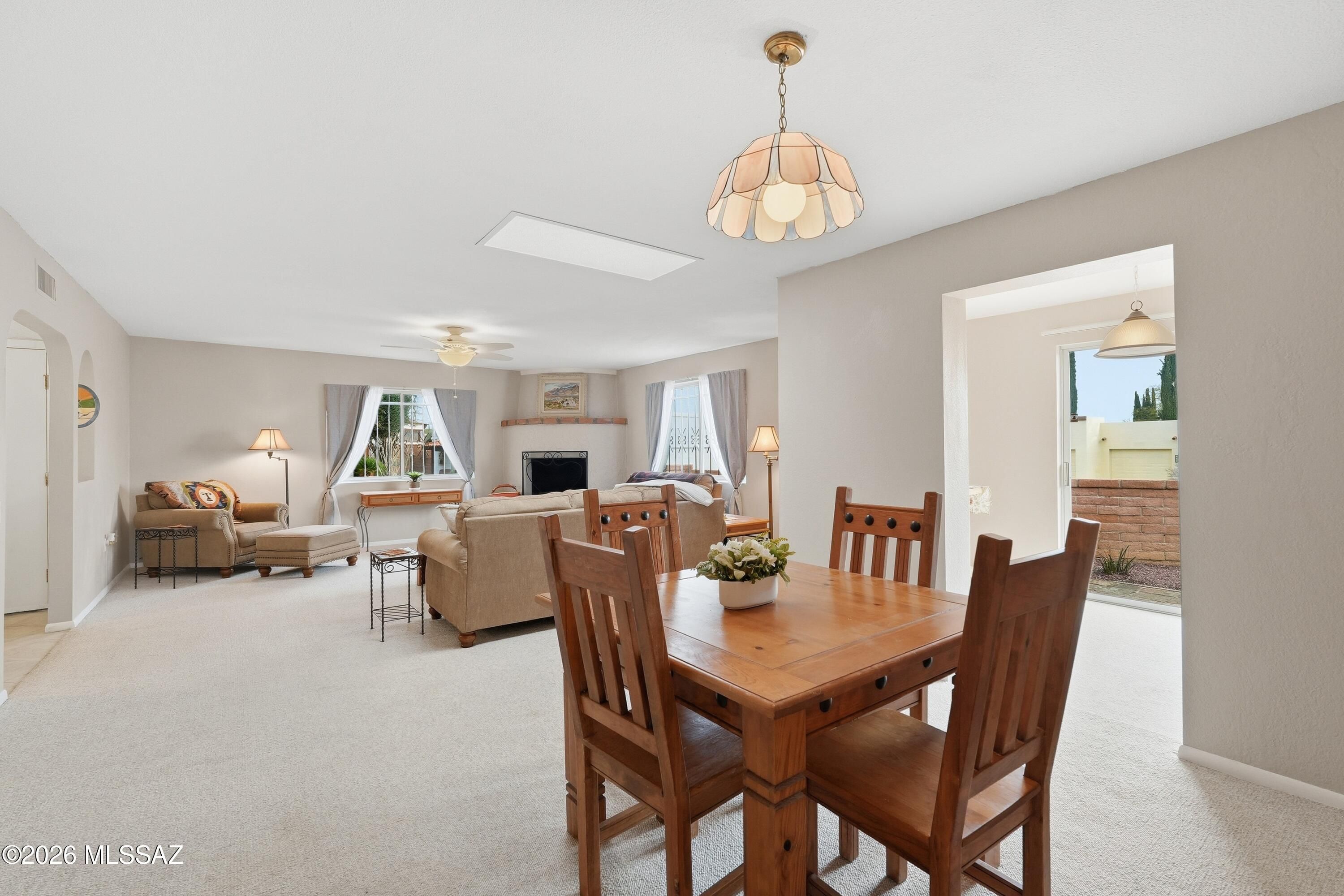 Experience comfort and stunning scenery in this furnished 2‑bed, 2‑bath home with a den and office, offering 1,821 sq. ft. of well‑designed living space. Perched on an elevated lot, it showcases panoramic mountain views from multiple rooms and the spacious covered back patio. A charming beehive fireplace adds warmth and Southwestern character. The home provides abundant closets and storage, plus a 2‑car garage with a separate workshop. Located in desirable Continental Vistas with GVR access, enjoy 13 recreation centers, clubs, and activities ideal for an active, social lifestyle. A beautiful setting and exceptional amenities come together in this inviting retreat.