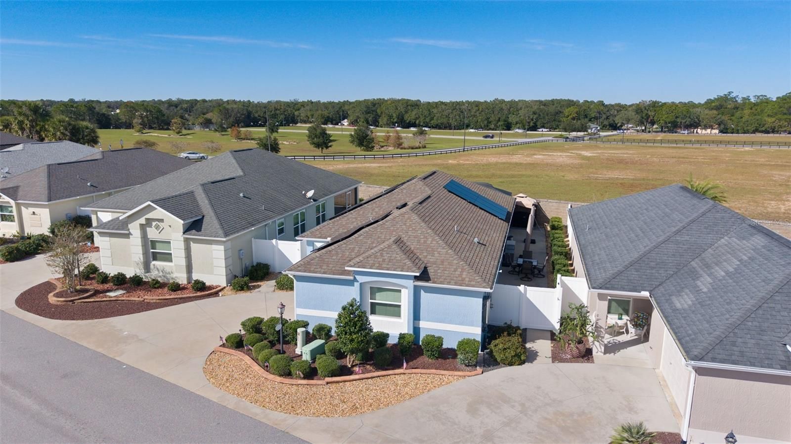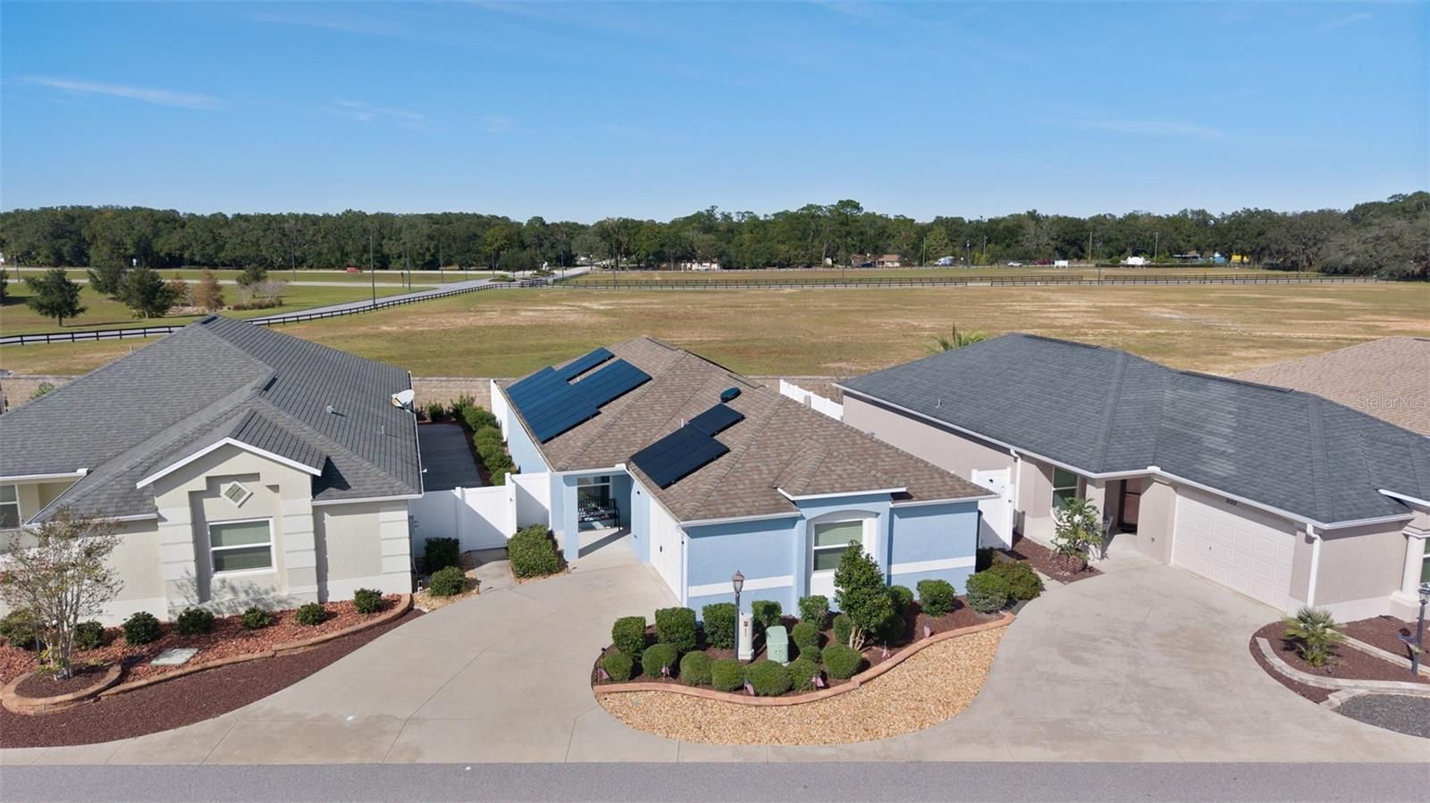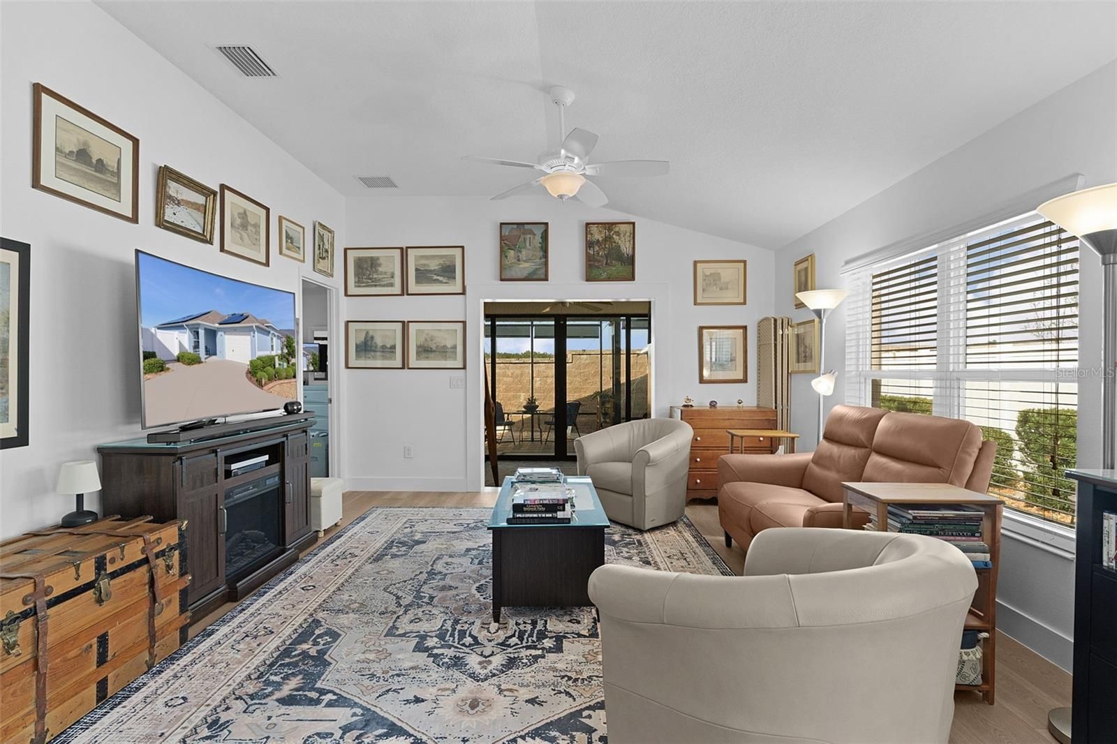 ~BUILT IN 2016~ ~14’-8”x8’-8” GLASS ENCLOSED LANAI UNDER HEAT & AIR~ ~SOLAR PANELS PAID FOR~ ~2025 HVAC~ ~2024 Hot Water Heater with Rheem Heat Pump~ Beautiful 2/2 DURHAM model Courtyard Villa in the Village of WOODBURY, PHILLIPS VILLAS! This home provides a spacious OPEN FLOOR PLAN and numerous upgrades throughout. As you enter you are greeted with HIGH VAULTED CEILINGS and LUXURY VINYL PLANK FLOORING for a bright, airy feel. The living room features a ceiling fan, and the dining area shares the same soaring ceilings. The kitchen is a showstopper with QUARTZ COUNTERTOPS and BACKSPLASH, stainless-steel appliances, recessed lighting, roll-out lower cabinets, and a CLOSET PANTRY. The primary suite boasts a TRAY CEILING, ceiling fan, WALK-IN CLOSET, and a beautiful ensuite bath with PORCELAIN TILE, a GORGEOUS TILED WALK-IN SHOWER with NEW GLASS DOORS, and tall cabinetry with QUARTZ countertops. The guest bedroom also features vaulted ceilings, a ceiling fan, and a built-in closet, while the guest bath includes a TILED WALK-IN SHOWER with NEW GLASS DOORS, porcelain tile, linen closet, and QUARTZ counters. Relax year-round in the GLASS ENCLOSED LANAI under HEAT AND AIR or open the telescoping sliders to the BIRDCAGE with COMPOSITE DECKING and BLINDS for outdoor enjoyment. The lanai features a ceiling fan and provides a seamless blend of indoor and outdoor living. The 1½-car garage includes a laundry tub, LG WASHER AND DRYER, shelving, and a SOLAR ATTIC FAN. The home has SOLAR PANELS with a 6-hour emergency battery and a POWER SURGE PROTECTOR. For your comfort, the Hot Water Heater kicks cold air back into the garage. This stunning villa combines comfort, style, and thoughtful upgrades—ready for you to move right in and enjoy The Villages lifestyle! Minutes from Mulberry Rec Center, First Responders Rec Center, Nancy Lopez Golf Course, and the Mulberry Shopping Center for shopping, restaurants and more.