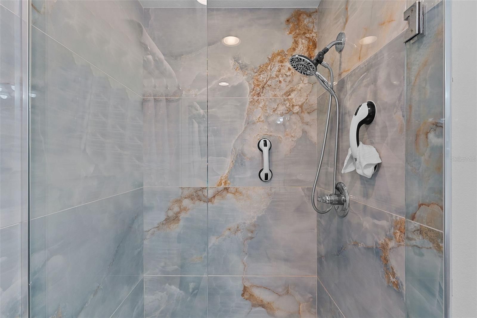 - Ceiling Fan(s), High Ceilings, Living/Dining Room, Open Floorplan, Split Bedrooms, Stone Counters, Thermostat, Tray Ceiling(s), Vaulted Ceiling(s), Walk-In Closet(s)