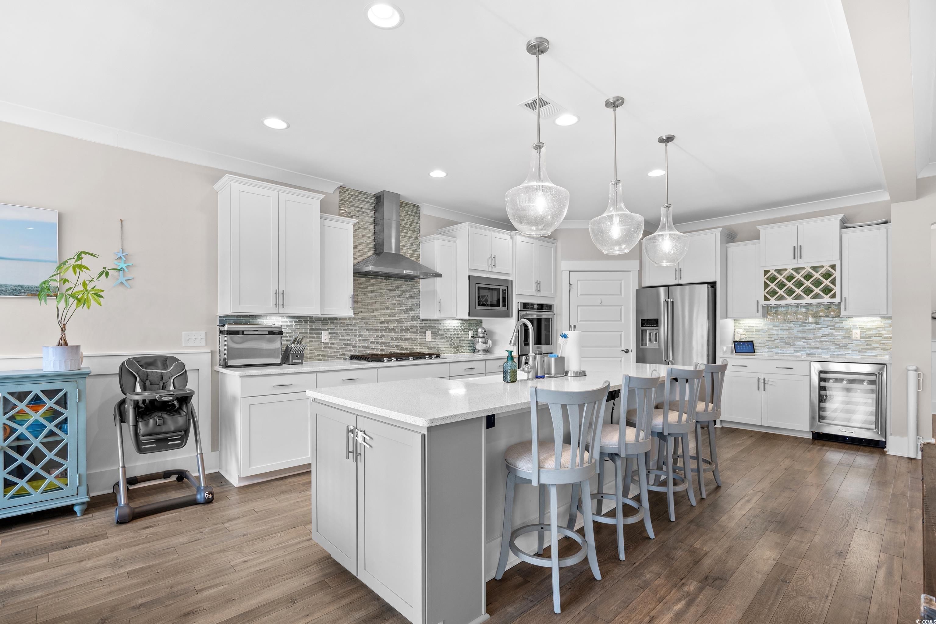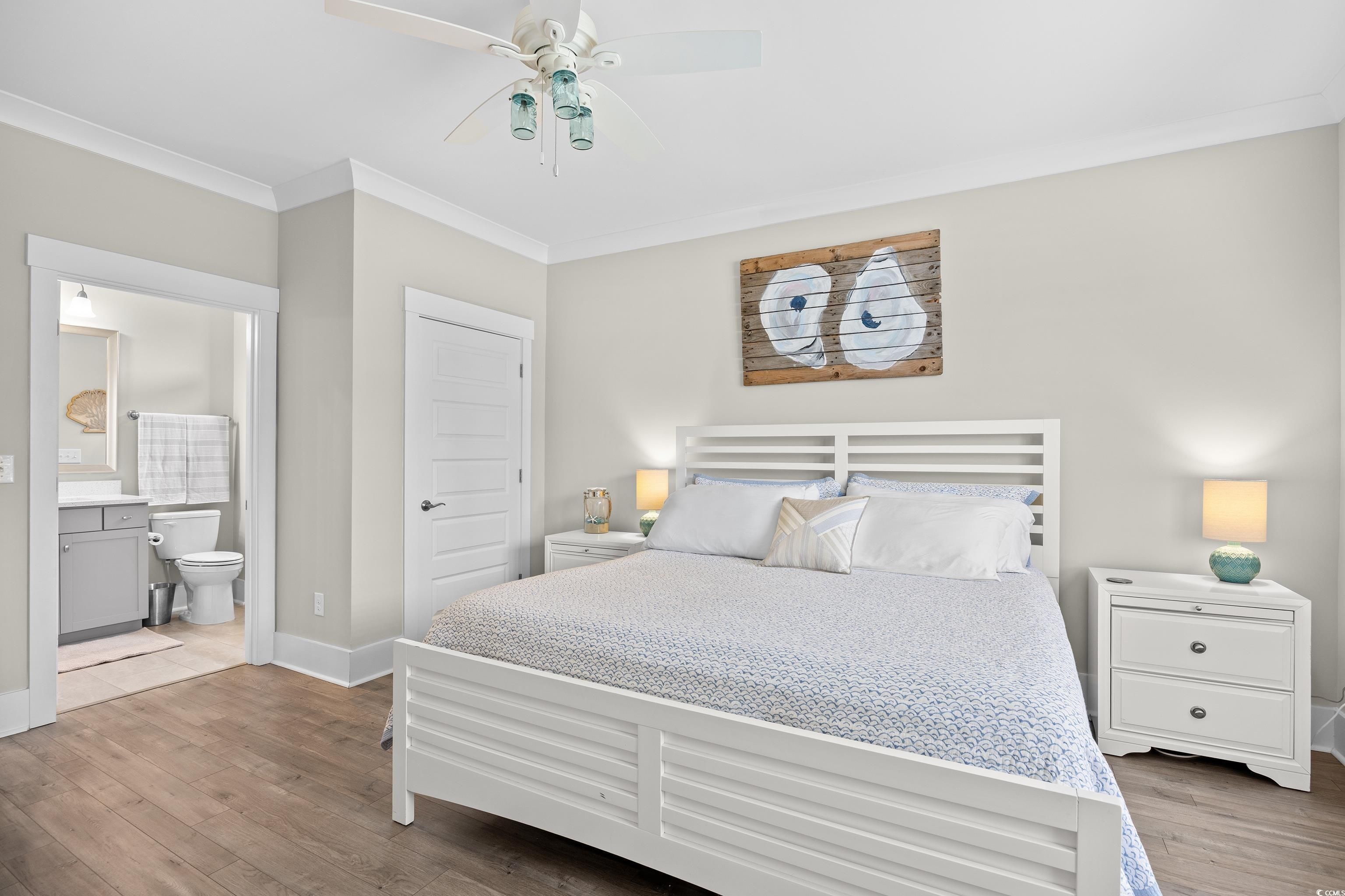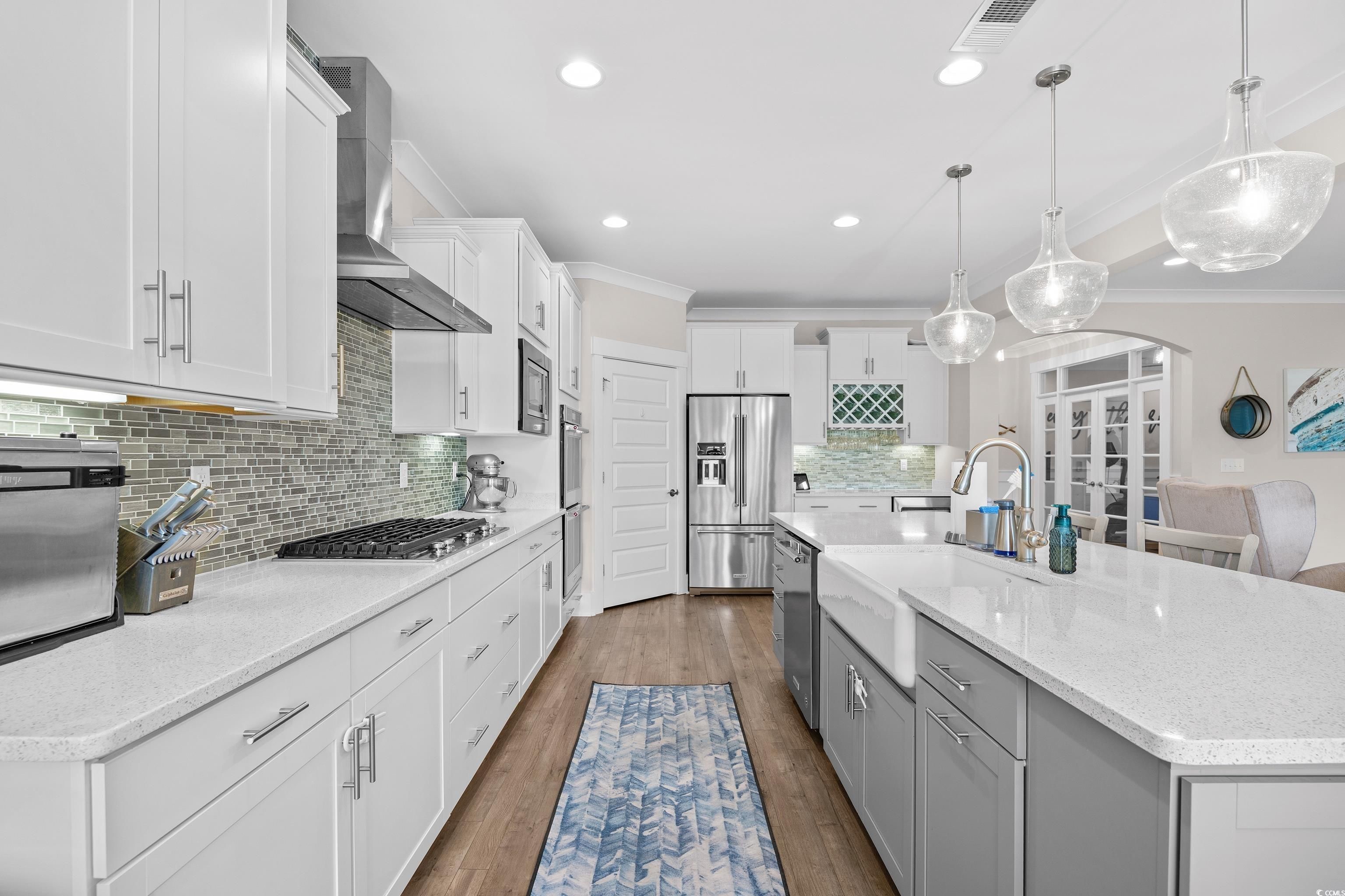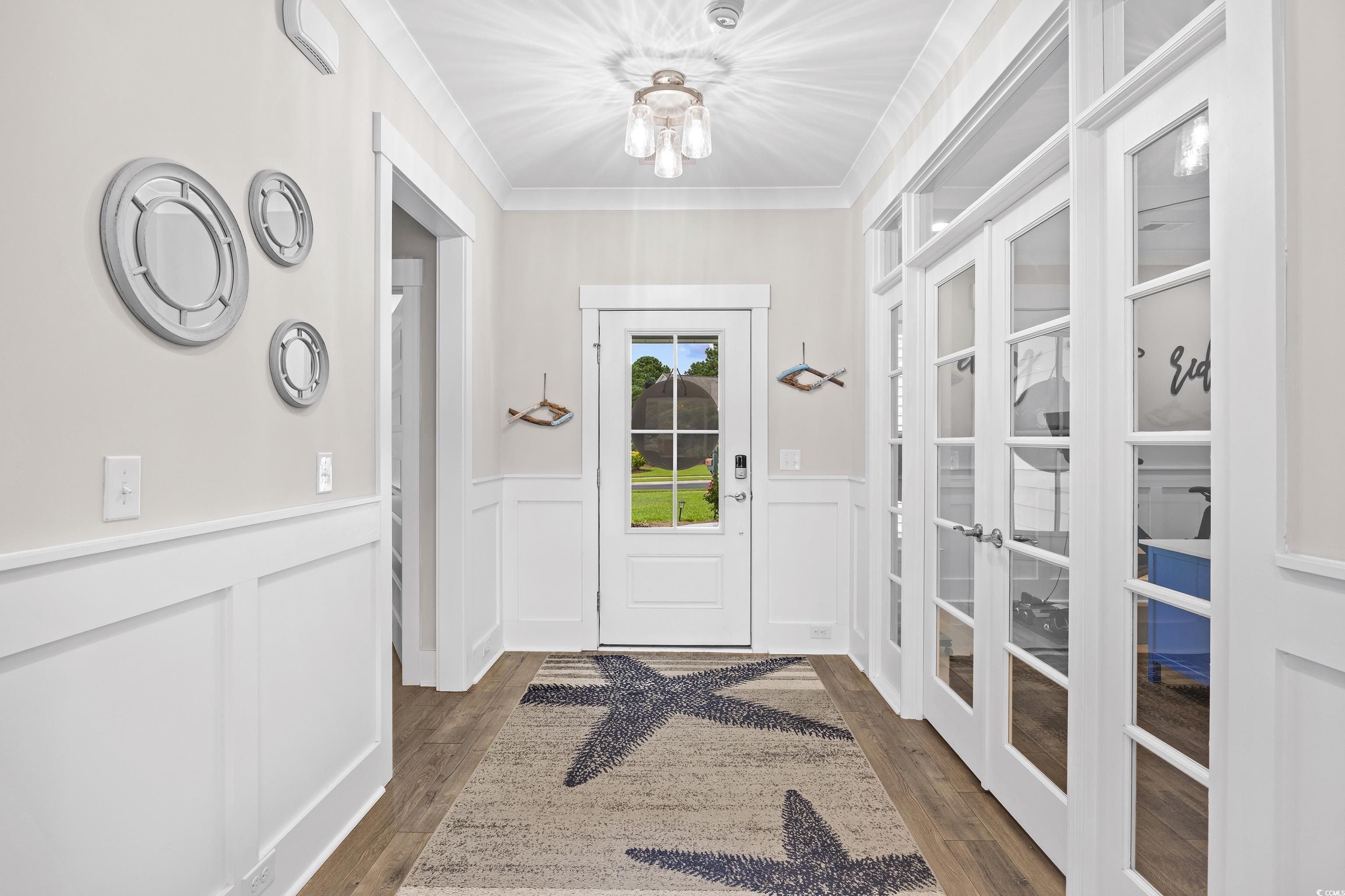Welcome to this stunning and spacious 3-bedroom 3-bathroom home in the desirable Crow Creek neighborhood! Home is located on one of the biggest lots in this private gated golf course community with large backyard and screened lanai that boasts views of the water from 2 sides. Home has 2.5 car garage (2 car and golf cart garage) with a 4ft garage extension for all your storage and recreational needs. From the moment you walk through the front door you are met with 8ft sliders that allow you to enjoy this gorgeous view. The gourmet chef’s kitchen features double ovens and all Kitchen Aid stainless steel appliances - perfect for entertaining! Extra-large gas cook-top for all your cooking needs. Laminate flooring throughout - no carpet. Enjoy the luxury of quartz countertops and soft shut cabinets throughout the home. Open floor plan with tons of natural light allowed by plantation shutters throughout. Lovely amenity center with a pool and spa, exercise room, game room, tennis and pickle-ball courts. Less than 10 miles from the beach." Listing Agent and Co-Listing agent are licensed both in North and South Carolina. Flood insurance not required for this property. However, owners did purchase a Flood Policy thorough Wright Insurance company even though this property is located outside the AE zone area. SQUARE FOOTAGE IS APPROXIMATE AND NOT GUARANTEED. BUYER IS RESPONSIBLE FOR VERIFICATION.