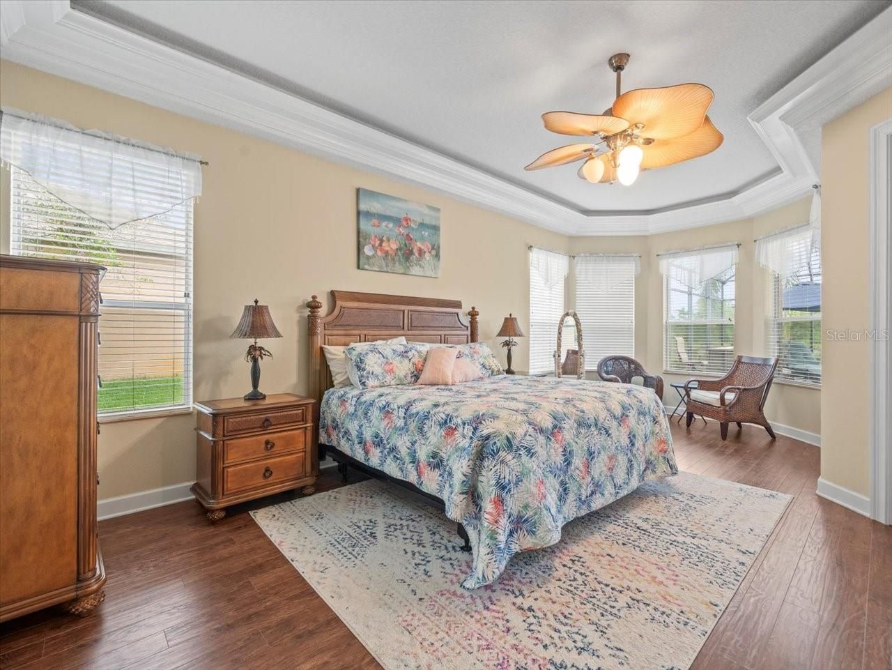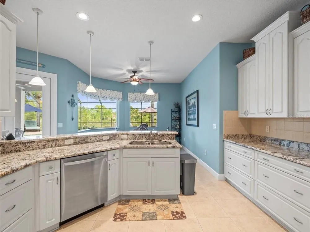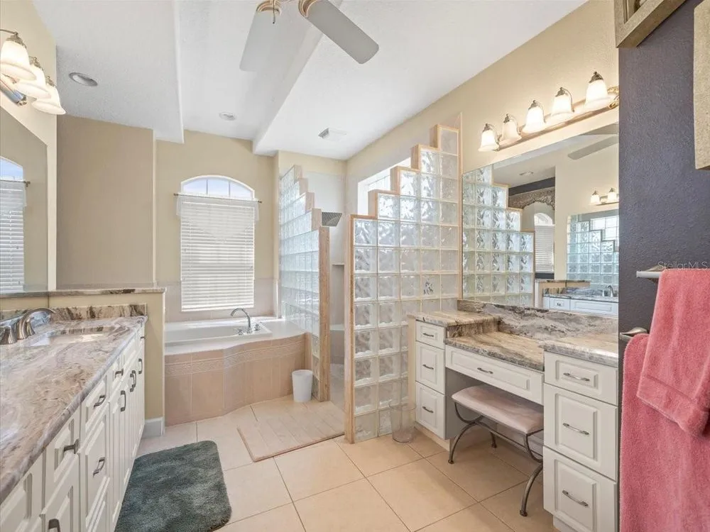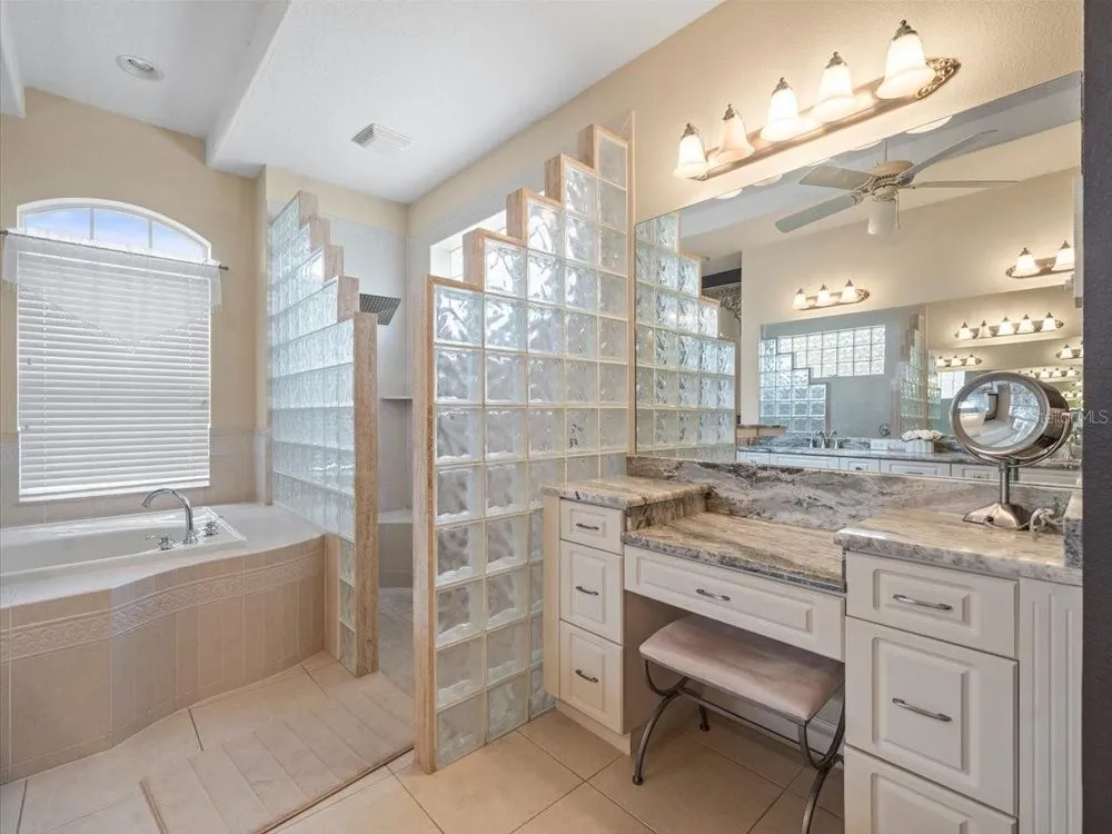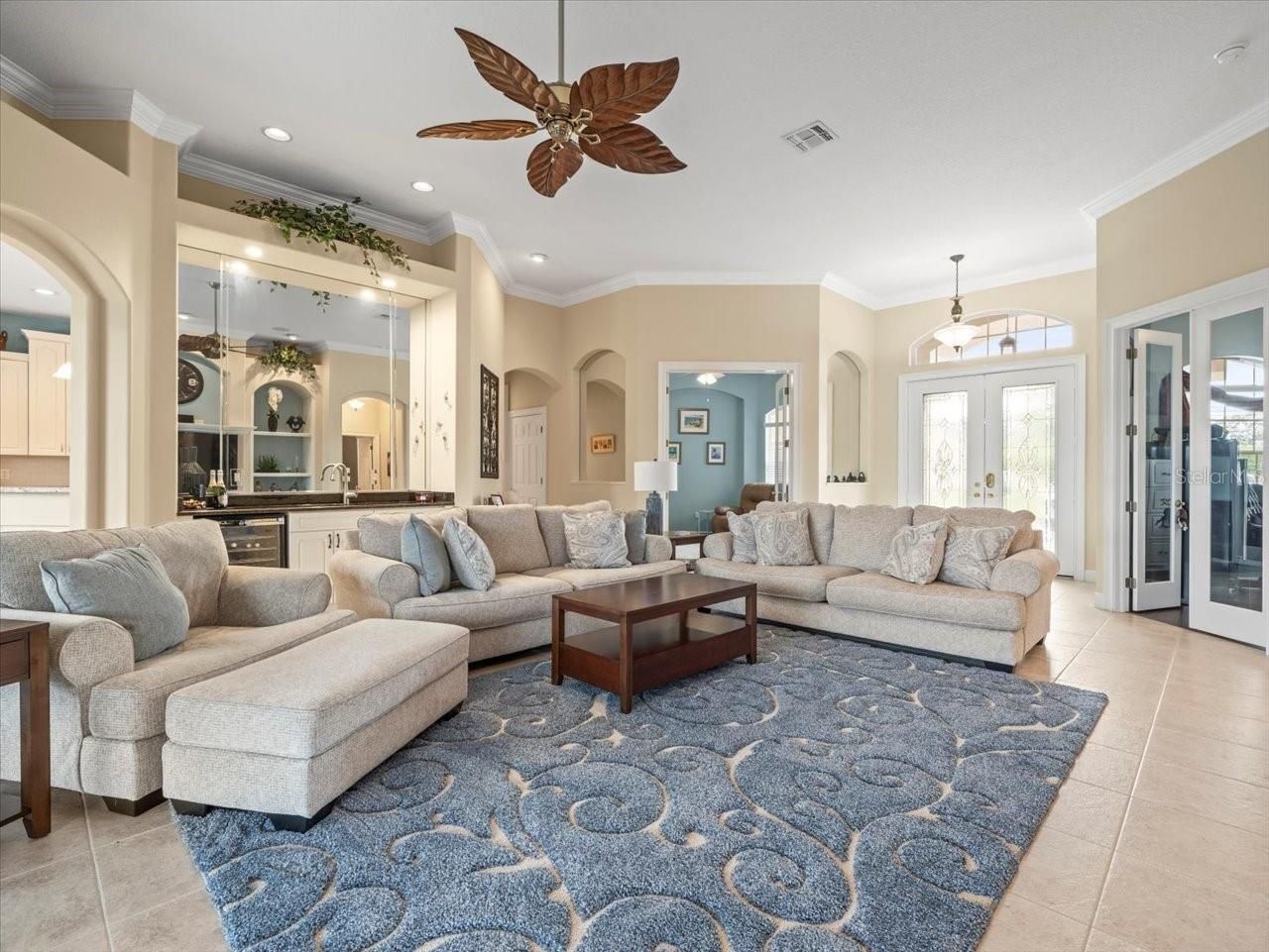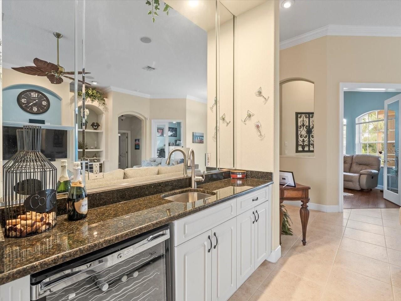 - Built-in Features, Ceiling Fan(s), Central Vacuum, Crown Molding, High Ceilings, Open Floorplan, Split Bedrooms, Stone Counters, Walk-In Closet(s), Wet Bar, Window Treatments