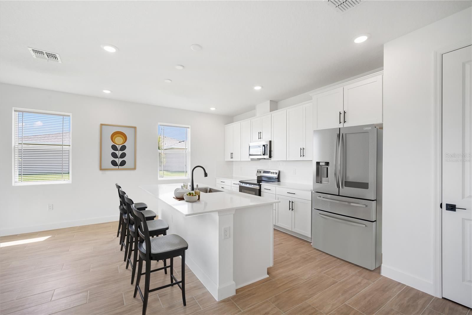 Welcome to 9211 Players Drive! This AGATE model offers approximately 2080 square feet of living space with 4 bedrooms and 3 bathrooms, located on a spacious 1/3-acre lot with a GOLF COURSE VIEW in the gated community of Glen Lakes! This home includes an expanded 3-car garage with epoxy floors, an open floor plan, wood-look tile, soft-close cabinets, quartz countertops, 8 ft doors, and a large center island—perfect for entertaining! There is NO CDD, and the HOA is $300/month but includes a Spectrum internet package. Virtually Staged photos.