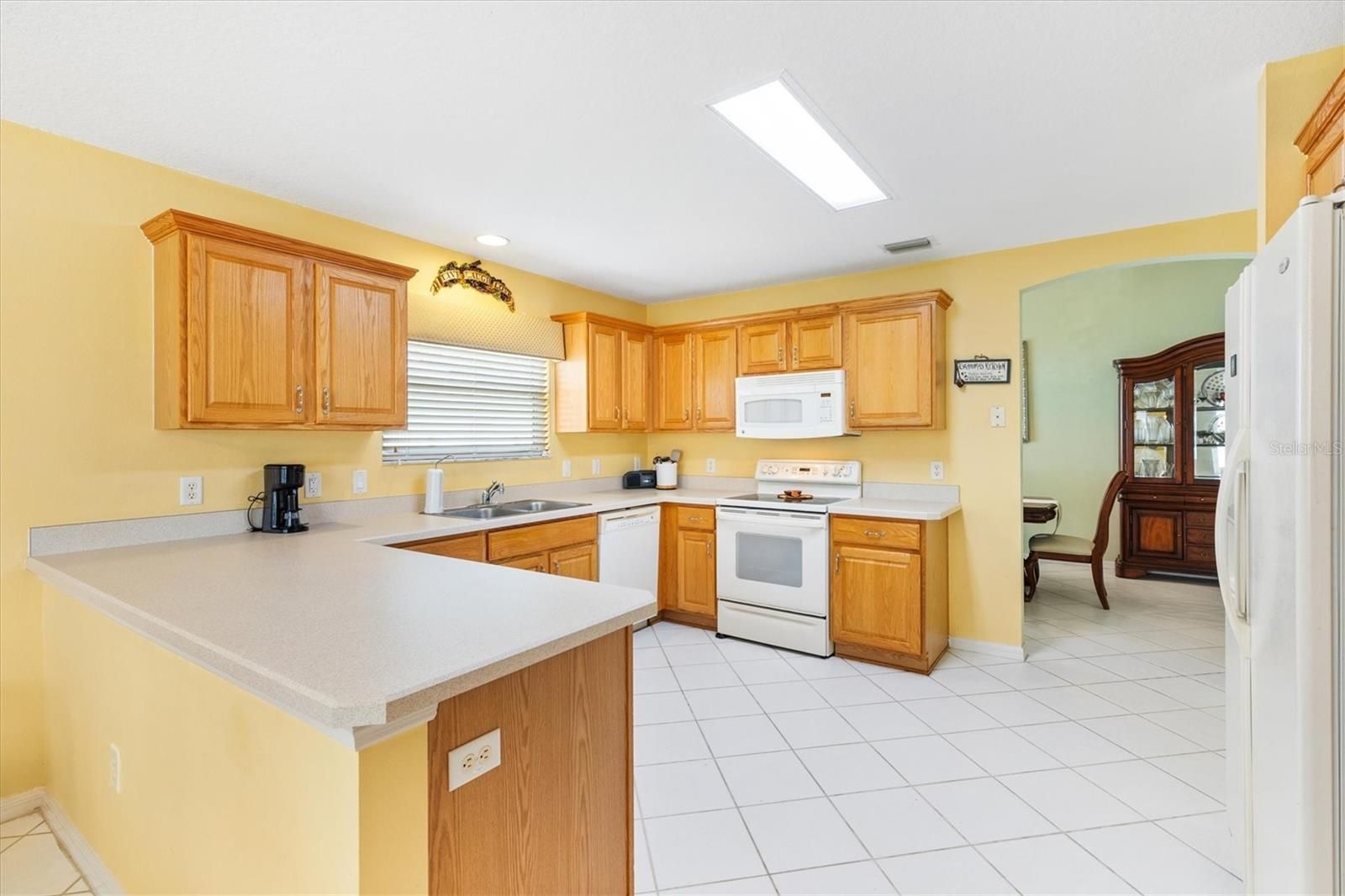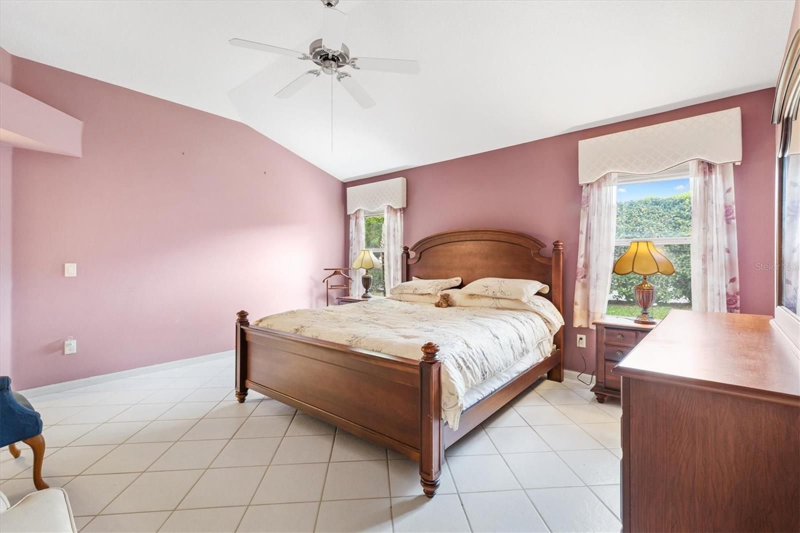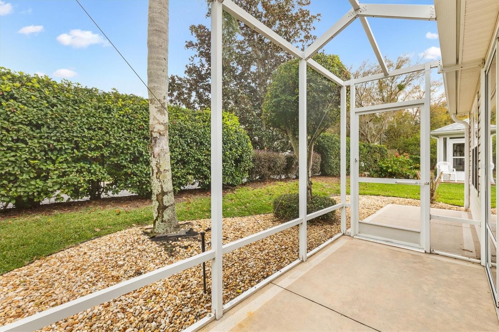 TURNKEY!LOW BOND Lovely 3/2 Cypress Designer home in the Village of Woodbury. Roof 2020, HVAC 2021 and Gas HWH 2002. This charming split floor plan features a covered front porch that invites you inside to discover ceramic tile flooring throughout. The eat-in kitchen is a highlight, boasting a breakfast bar, pantry, and convenient pull-out cabinet shelves. Enjoy casual dining while looking out the bay windows in kitchen or formal dining in the dining room. The spacious living room seamlessly connects to an enclosed lanai, which also provides access to the third bedroom. Sliding Doors in the Lanai lead to the back birdcage expanding your outdoor entertaining space. The master bedroom offers a large walk-in closet and an ensuite bath with dual split vanities, a built-in makeup table, and a shower with a built-in bench, ensuring comfort and style. The two guest bedrooms share a bath with a shower-tub combo, making this home ideal for family and guests. The third bedroom is currently set up as an office. Additional features that make this one special are: phantom screen door, interior laundry, coat closet, electric roll down garage screen, ceiling fans, solar tube in living room and guest bath, and cornices on all the windows adding to the home's charm and functionality. Just ½ mile to the Springdale Pool. Mulberry Regional Rec Center and Mulberry Grove Plaza Shopping Center for activities, dining, and shopping are just minutes away. Short golf cart ride to Spanish Springs and Lake Sumter Landing town squares. Call today to schedule your private showing and start living The Villages dream.