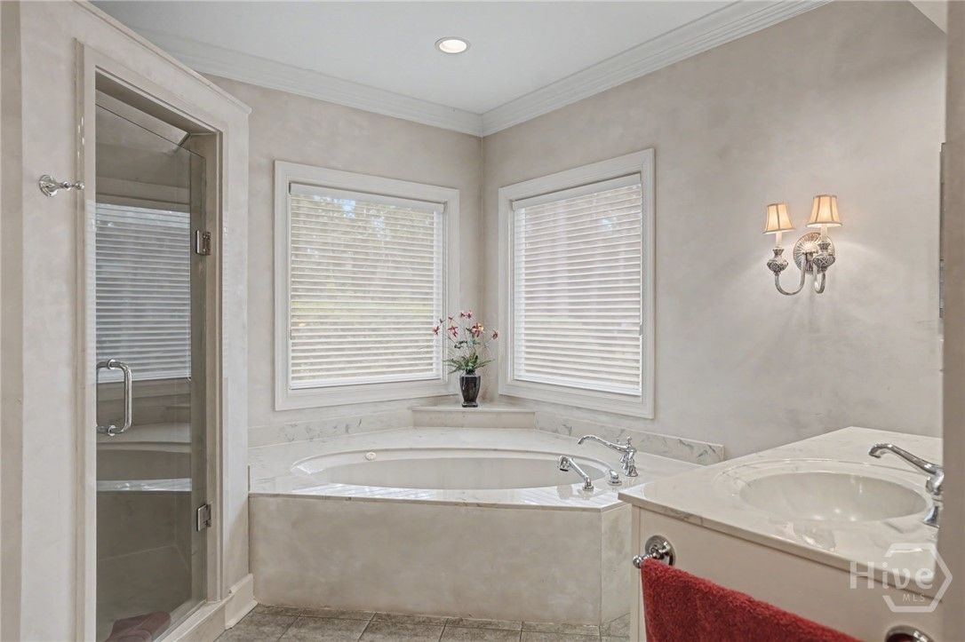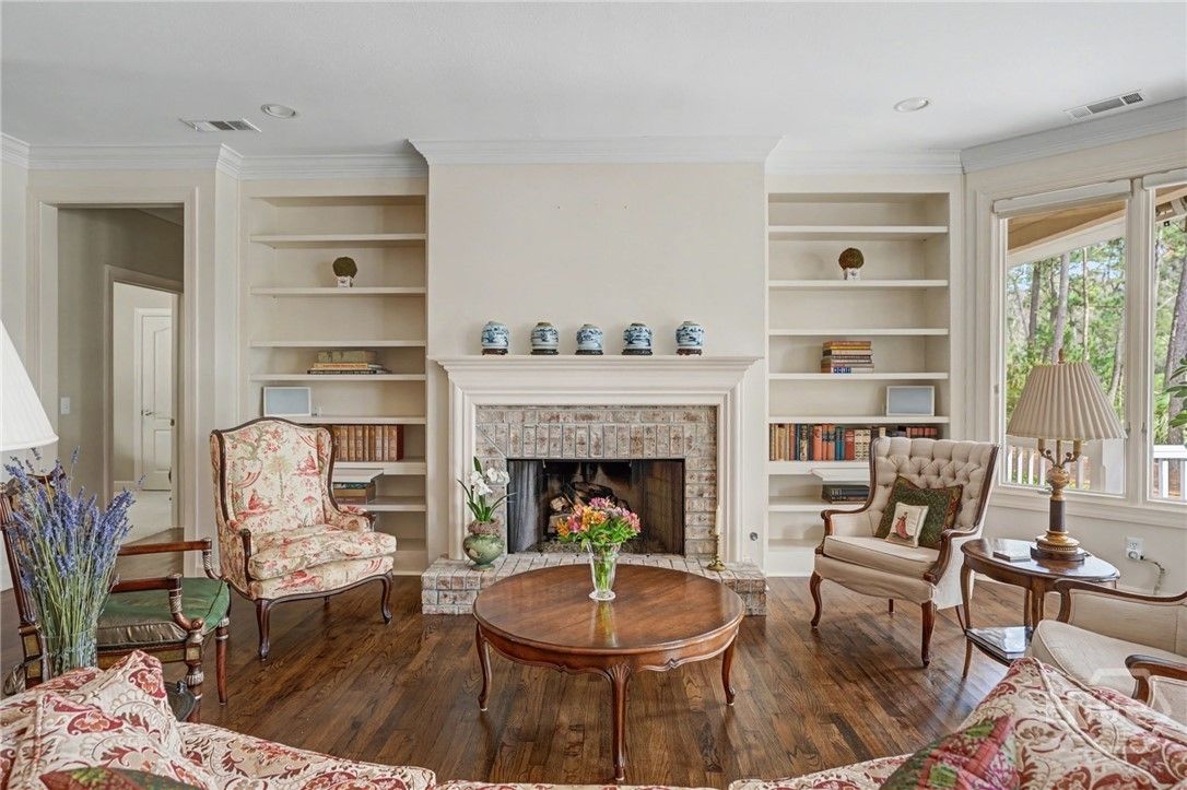 - Attic, Built-in Features, Butler Pantry, Breakfast Area, Double Vanity, Entrance Foyer, Fireplace, High Ceilings, Jetted Tub, Main Level Primary, Primary Suite, Separate Shower