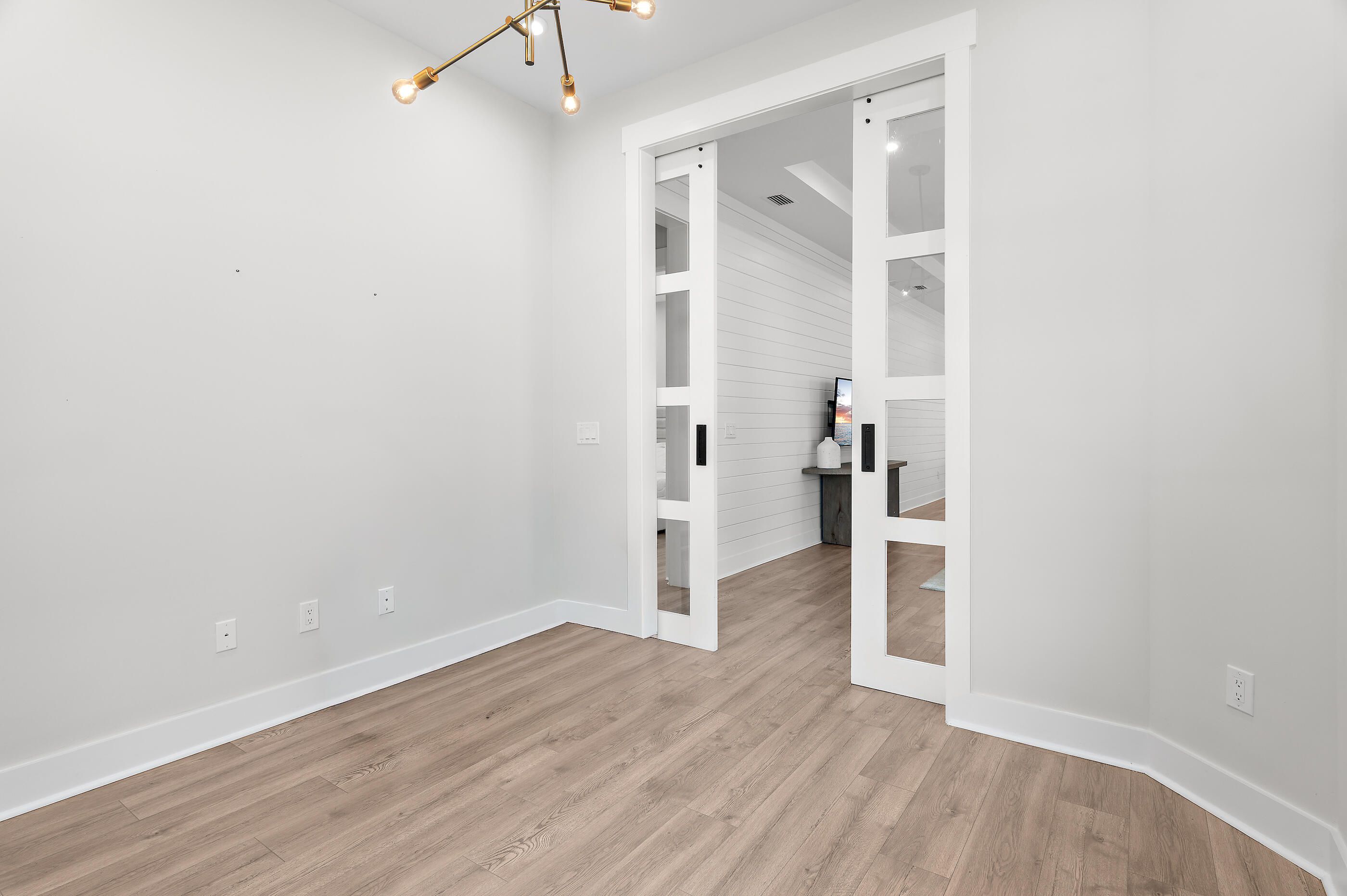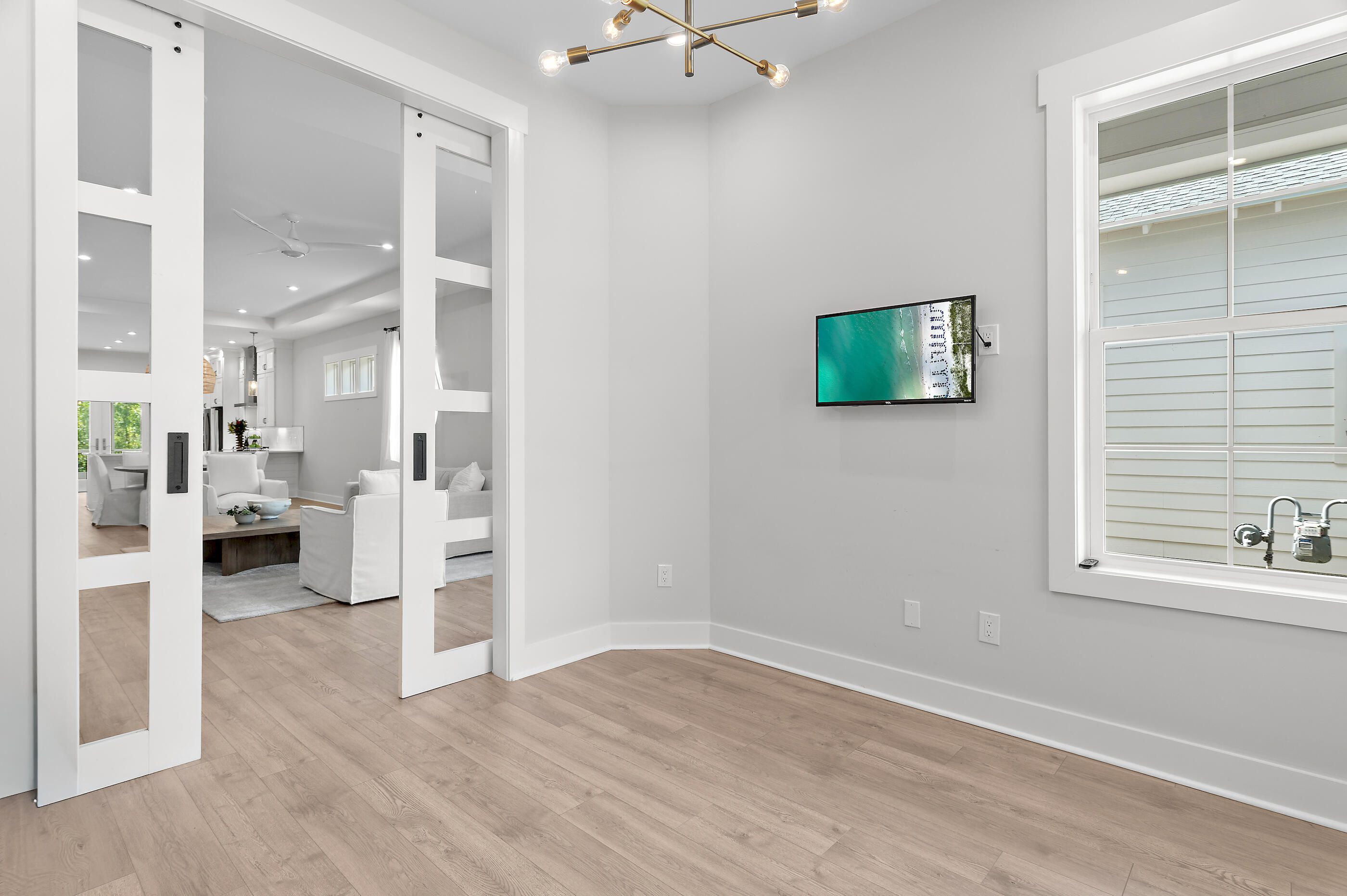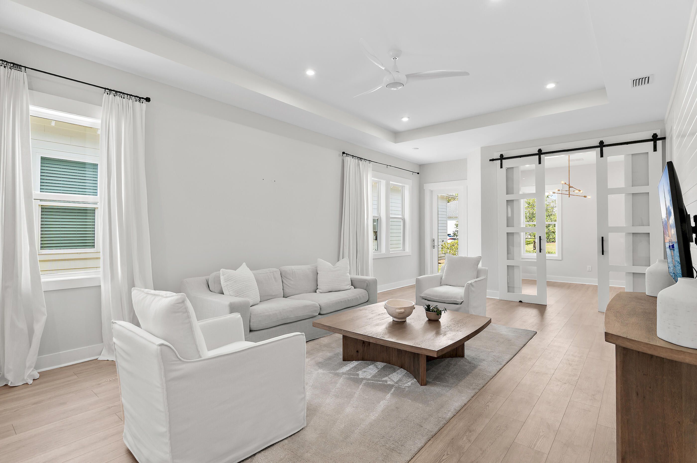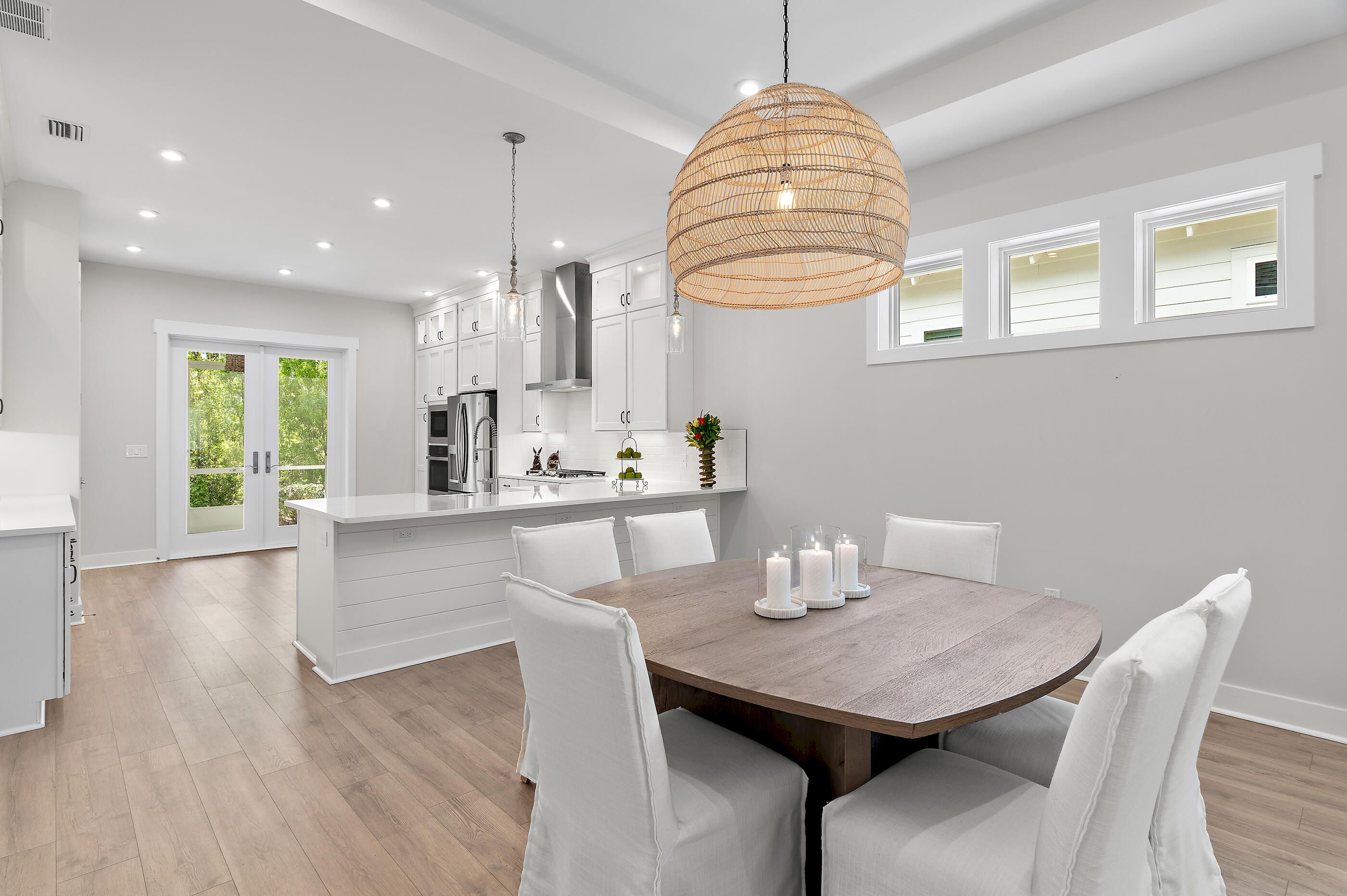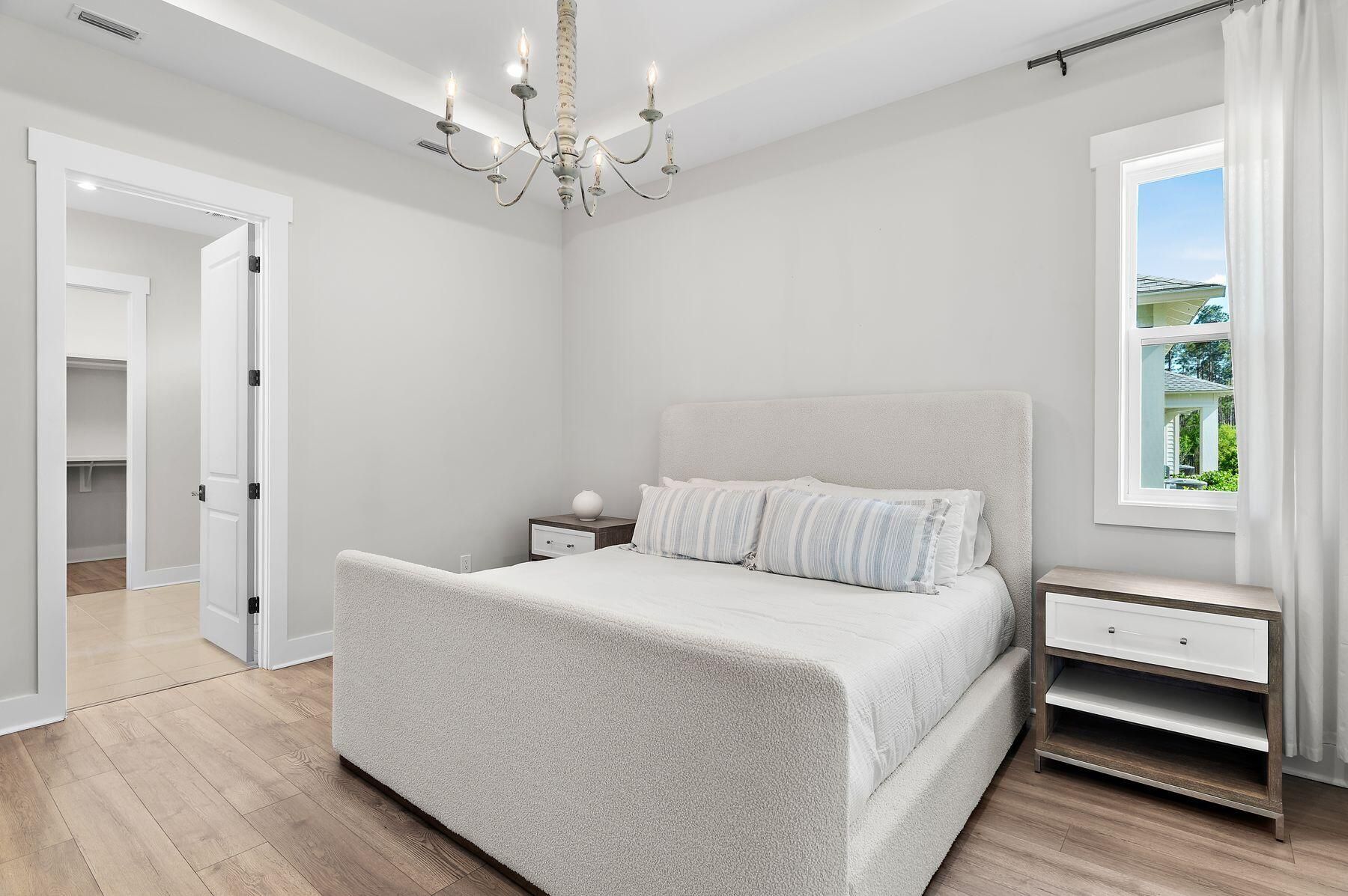 Classic coastal charm defines this thoughtfully designed home, built in 2021 and ideally positioned within the gated NatureWalk community, backing to a peaceful wooded preserve. The popular ''Clearwater'' plan welcomes you with a charming front porch and an inviting open floor plan, where the living and dining areas feature tray ceilings and upgraded shiplap accents for a refined coastal feel. A versatile bonus space just off the main living area--complete with custom glass barn doors--offers the perfect setting for a home office or den. The spacious kitchen blends style and function, showcasing white cabinetry with glass-front upper cabinets extending to the ceiling for added storage, stainless steel appliances, a sleek subway tile backsplash, an oversized pantry, and direct access to the screened lanai through double doors--ideal for enjoying cool evenings and tranquil views of the preserve and colorful winter sunsets. The primary suite is light-filled and airy, featuring tray ceilings, a generously sized walk-in closet, and a well-appointed ensuite bath with an extended vanity and makeup area, along with a large walk-in shower. An additional guest bedroom, full bath, and laundry room complete the home. Notable upgrades include 10' ceilings, Mohawk RevWood flooring, and an oversized screened lanai designed for relaxed outdoor living. Designed with ease of living in mind, this home is an excellent option for retirees seeking a low-maintenance lifestyle without the burden of a large home, while still enjoying thoughtful design, quality finishes, and comfortable indoor-outdoor living. Residents of NatureWalk enjoy exclusive amenities including a heated pool, fitness center, two lighted tennis courts, and four lighted pickleball courts. Ownership also includes access to all Watersound Origins amenities, featuring a 9-hole golf course, additional tennis and pickleball courts, basketball, fitness center, clubhouse, resort-style pool, Watersound Town Center, and dock access to Lake Powell for paddleboarding and kayaking. Watersound Origins homeowners are automatically enrolled in Watersound Membership, with the option to upgrade to Watersound Club for access to the Watersound Beach Club, Camp Creek Golf Club, and private member events. Long-term rentals are allowed, offering flexibility for use as a primary residence, second home, or investment opportunity. Measurements are approximate. Buyer to verify all data and dimensions if important.