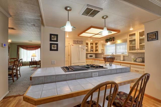 Amazing new holiday price of only $435k! Lovely updated 1,536 sq ft home on a terrific corner lot with welcoming front and rear covered decks perfect for relaxing or entertaining. The spacious family room has an open feel and the addition creates a versatile office area. Enjoy a beautifully remodeled kitchen with tile counters, breakfast bar seating, and light cabinetry, plus tastefully updated baths. Upgrades include sheetrock walls, dual-pane windows, newer furnace and A/C, updated plumbing, earthquake bracing, and more. (Home is actually over 1600 sf with added office off family room!) Two bedrooms and two full baths are complemented by the added office space for work or hobbies. Bright living and dining areas flow easily to the kitchen, while the outdoor spaces offer both privacy and charm. A well-maintained home with thoughtful improvements and plenty of room to spread out. Move-in ready and waiting for its next owner. Enjoy access to clubhouse, pool, spa, gym, tennis, and RV parking. A must-see gem in Woodland Estates, Morgan Hills most desirable senior park; one of only two resident owned parks in Santa Clara county! Woodland Estates is a resident owned senior park with a low park fee of only $370/mo including water, sewer & garbage!