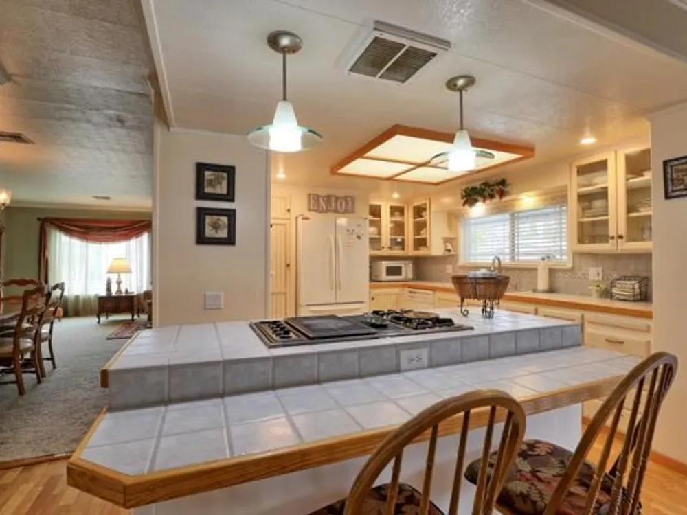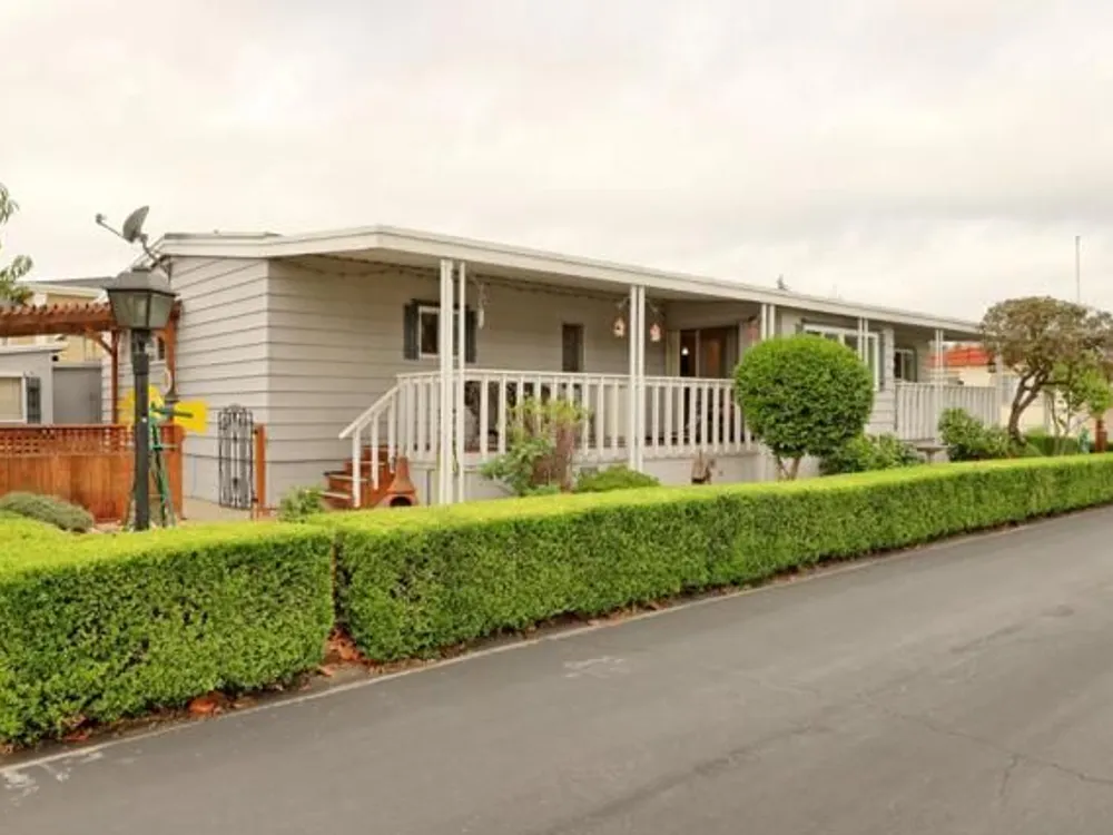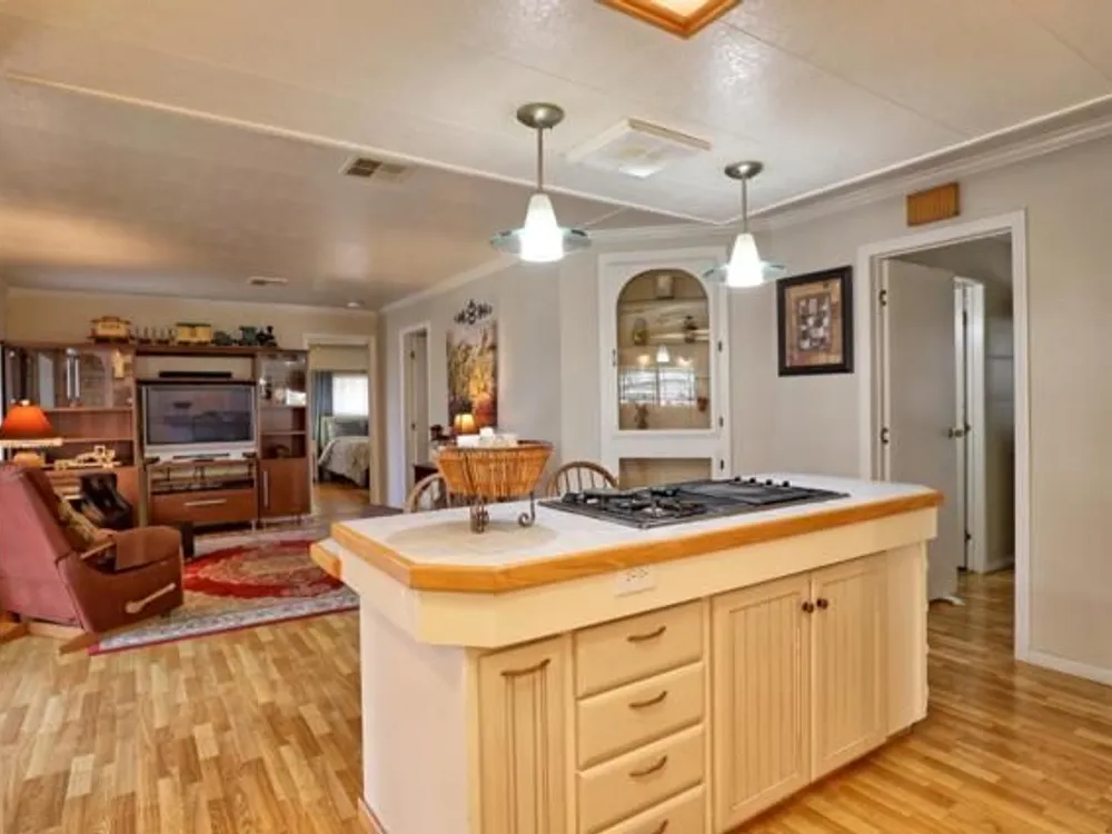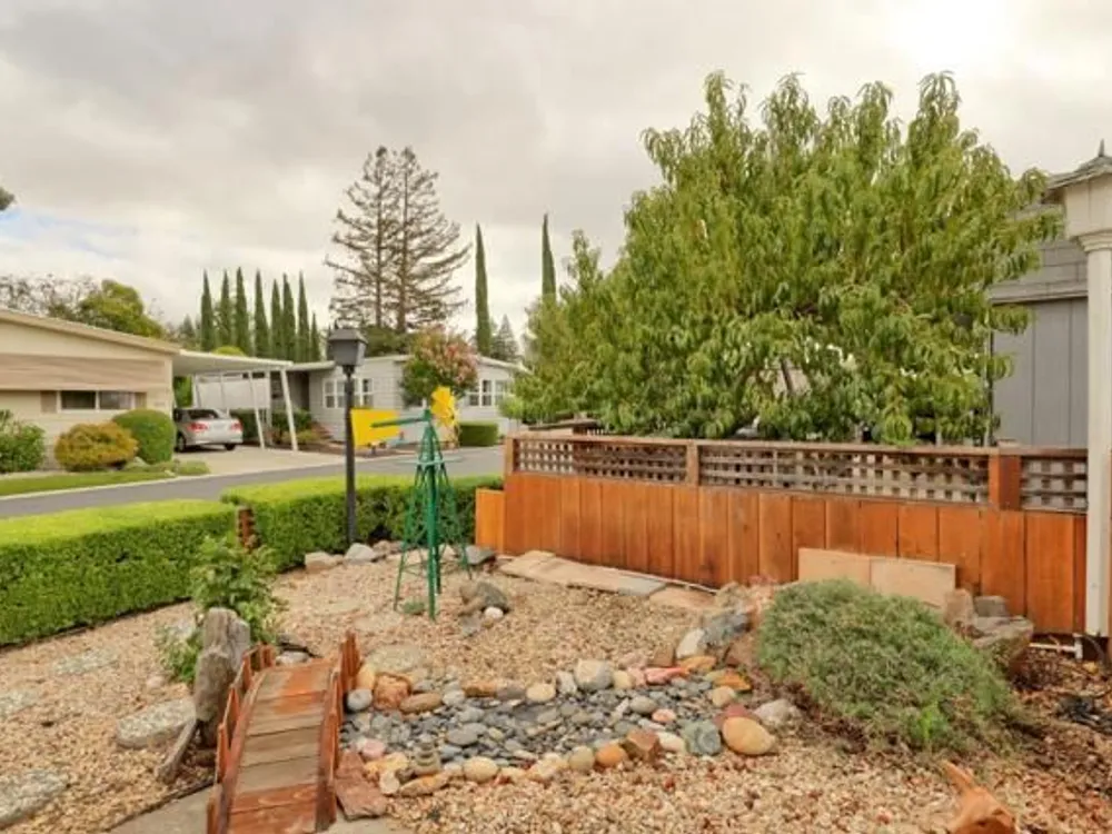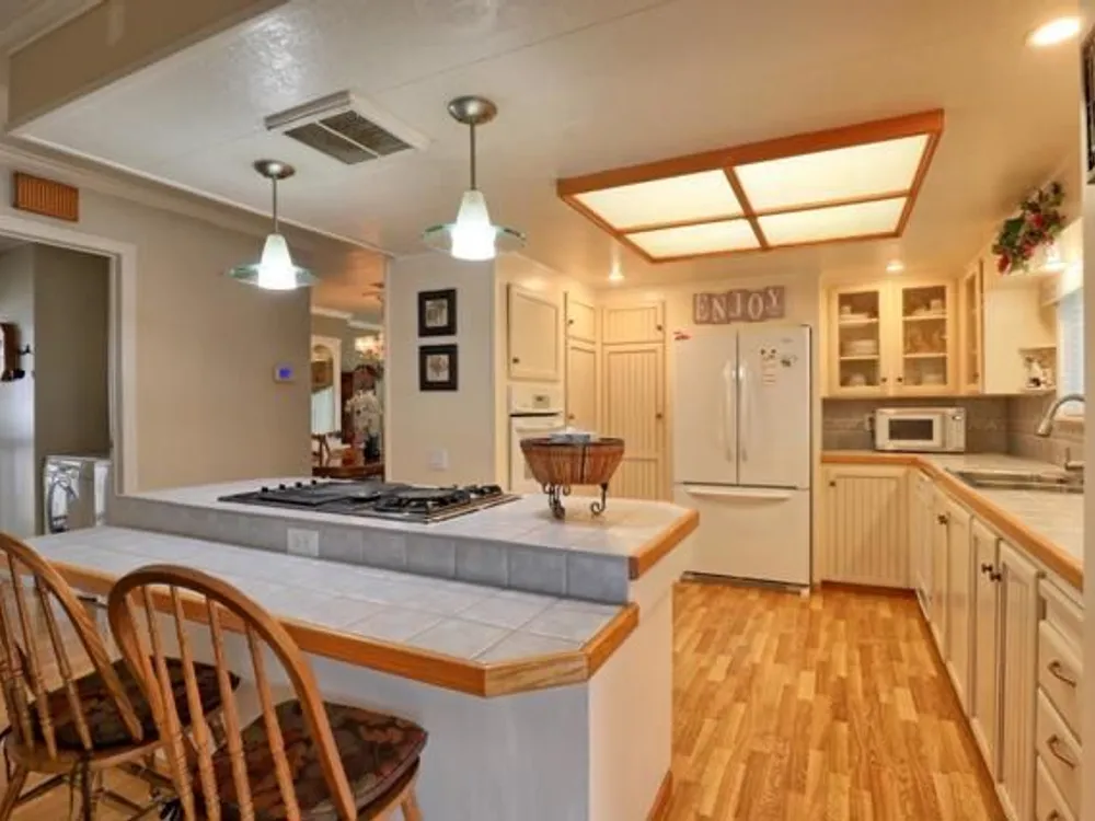 Lovely updated 1,536 sq ft home on a terrific corner lot with welcoming front and rear covered decks perfect for relaxing or entertaining. The spacious family room has an open feel and the addition creates a versatile office area. Enjoy a beautifully remodeled kitchen with tile counters, breakfast bar seating, and light cabinetry, plus tastefully updated baths. Upgrades include sheetrock walls, dual-pane windows, newer furnace and A/C, updated plumbing, earthquake bracing, and more. Two bedrooms and two full baths are complemented by the added office space for work or hobbies. Bright living and dining areas flow easily to the kitchen, while the outdoor spaces offer both privacy and charm. A well-maintained home with thoughtful improvements and plenty of room to spread out. Move-in ready and waiting for its next owner. Enjoy access to clubhouse, pool, spa, gym, tennis, and RV parking. A must-see gem in Woodland Estates, Morgan Hills most desirable senior park; one of only two resident owned parks in Santa Clara county! Woodland Estates is a resident owned senior park with a low park fee of only $370/mo including water, sewer & garbage!
