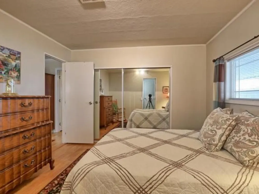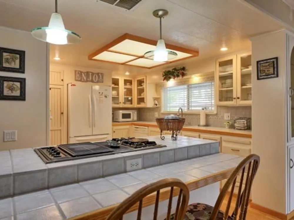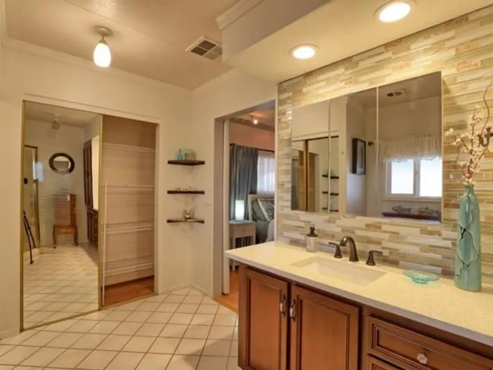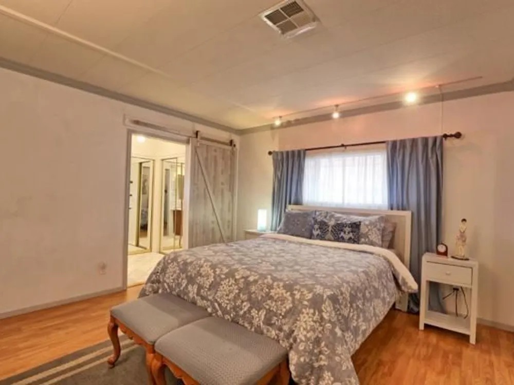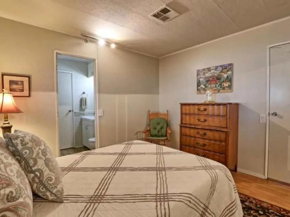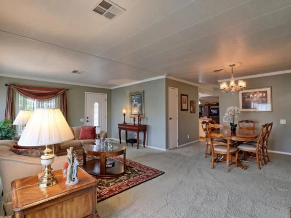 Lovely updated 1,536 sq ft home on a terrific corner lot with welcoming front and rear covered decks perfect for relaxing or entertaining. The spacious family room has an open feel and the addition creates a versatile office area. Enjoy a beautifully remodeled kitchen with tile counters, breakfast bar seating, and light cabinetry, plus tastefully updated baths. Upgrades include sheetrock walls, dual-pane windows, newer furnace and A/C, updated plumbing, earthquake bracing, and more. Two bedrooms and two full baths are complemented by the added office space for work or hobbies. Bright living and dining areas flow easily to the kitchen, while the outdoor spaces offer both privacy and charm. A well-maintained home with thoughtful improvements and plenty of room to spread out. Move-in ready and waiting for its next owner. Enjoy access to clubhouse, pool, spa, gym, tennis, and RV parking. A must-see gem in Woodland Estates, Morgan Hills most desirable senior park; one of only two resident owned parks in Santa Clara county! Woodland Estates is a resident owned senior park with a low park fee of only $370/mo including water, sewer & garbage!