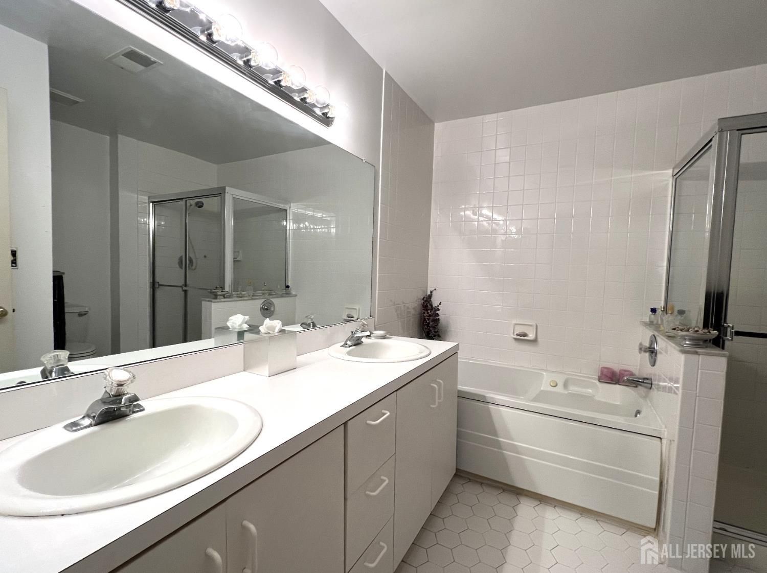 Welcome to desirable Greenbriar at Whittingham, a gated 55+ community! This well-maintained 2-bedroom, 2-bath lower-level unit offers a spacious, functional layout. The eat-in kitchen with center island provides room for casual dining, while the formal dining room is perfect for entertaining. The living room features a cozy fireplace. The primary bedroom includes a WIC plus an additional double closet and an en-suite bath with a double-sink vanity, whirlpool tub, and separate shower. A second bedroom is ideal for guests or a home office. Additional highlights include a separate garage and access to resort-style amenities: clubhouse, indoor and outdoor pools, 9-hole golf course, fitness center, tennis, pickleball, bocce, and shuffleboard courts, community garden, and scenic trails.
