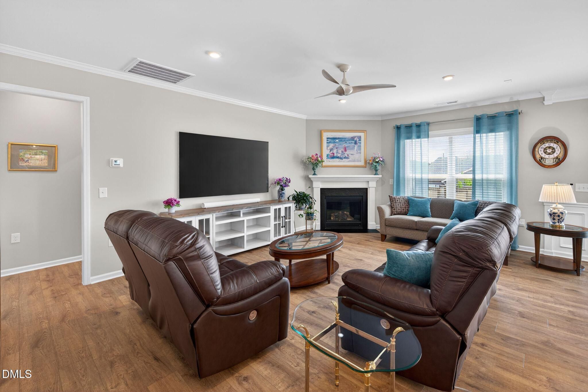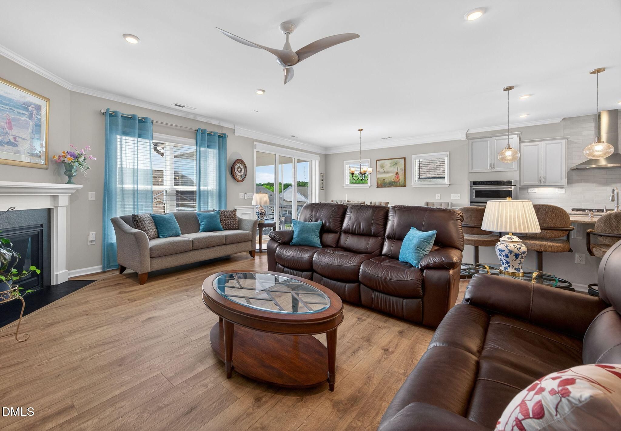 Beautifully appointed home in a vibrant 55+ community designed for easy living, comfort, and exceptional entertaining! From the moment you arrive, you'll notice the thoughtful details and upgrades that make this home truly stand out. The gourmet kitchen is a showstopper, featuring 16 pull-out drawers for effortless organization, a huge walk-in pantry, and abundant workspace--perfect for hosting gatherings or enjoying quiet nights at home. The open-concept design flows seamlessly into the main living area, where a cozy fireplace creates a warm and inviting atmosphere. Extensive wainscoting throughout the home adds timeless elegance and architectural interest, elevating every space. The spacious primary suite is a relaxing retreat, complete with a custom closet system and a well-appointed bath offering two linen closets for exceptional storage. The guest bedroom features its own ensuite bath, providing privacy and comfort for visitors, while the versatile office/den with French doors offers the ideal space for work or hobbies. Additional upgrades continue in the thoughtfully designed laundry room, complete with custom cabinetry and a granite sink for both style and function. One of the home's most special features is the upgraded triple sliding glass doors--found in only a limited number of homes--which open beautifully to the back porch and create a seamless indoor-outdoor living experience, complete with an electronic roll-down shade for added comfort and privacy. Step outside and enjoy a low-maintenance lifestyle with access to incredible, resort-style amenities just a short walk away, including a pool, clubhouse, tennis courts, pickleball and bocce ball courts, fitness center, and scenic walking trails. Weekly lawn maintenance is also included through the HOA, allowing you to spend more time enjoying everything this community has to offer. Whether you're staying active, socializing with neighbors, or simply enjoying the peaceful surroundings, this community offers it all. This is more than just a home--it's a lifestyle upgrade!