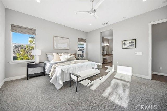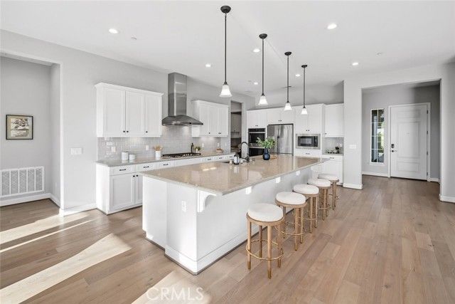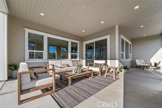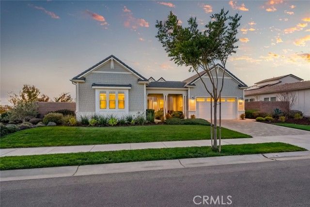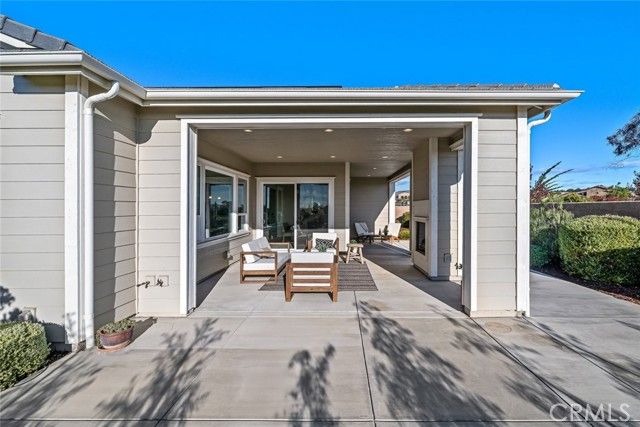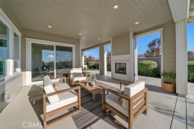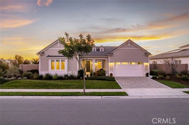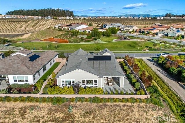 This elegant, coastal cottage-style home enjoys one of the most coveted settings—framed by open space on three sides, with an expansive park and vineyard just across the way and sweeping views of distant dunes and tree-lined horizons behind. A generous entry courtyard sitting area creates an immediate sense of welcome, leading into 2,696 sq ft of refined, open-concept living. Inside, desirable white oak hardwood floors set an elegant yet relaxed tone, guiding you into the light-filled living and dining spaces. The gourmet kitchen takes center stage with soft-close shaker cabinetry, quartz countertops, double-oven, an oversized island, and a walk-in pantry complete with a 50-bottle wine fridge. A well-designed "Smart Space" utility room offers laundry and a built-in office with desk area to further enhance your everyday comfort. Enjoy the restful, primary suite featuring a spa-inspired bath with stone-slab counters, double vanity, walk-in shower and a spacious walk-in closet. Beyond the main living areas, an oversized, air-conditioned guest casita awaits—accessible through its own private entrance and appointed with a generous sitting area, bedroom, and en-suite bath. Perfect for visiting friends, in-laws, creative pursuits, or simply curling up with a good book, this wonderfully flexible space enhances the home’s livability and offers endless possibilities. An expansive covered patio and outdoor fireplace invite year-round enjoyment of the tranquil backyard and scenic vistas. The home’s thoughtful design also includes a 3-car garage, whole-house water filtration, keyless entry door, garage cabinetry, included washer, dryer and refrigerator and solar energy. The result is a sanctuary where thoughtful design and breathtaking surroundings come together in perfect harmony.