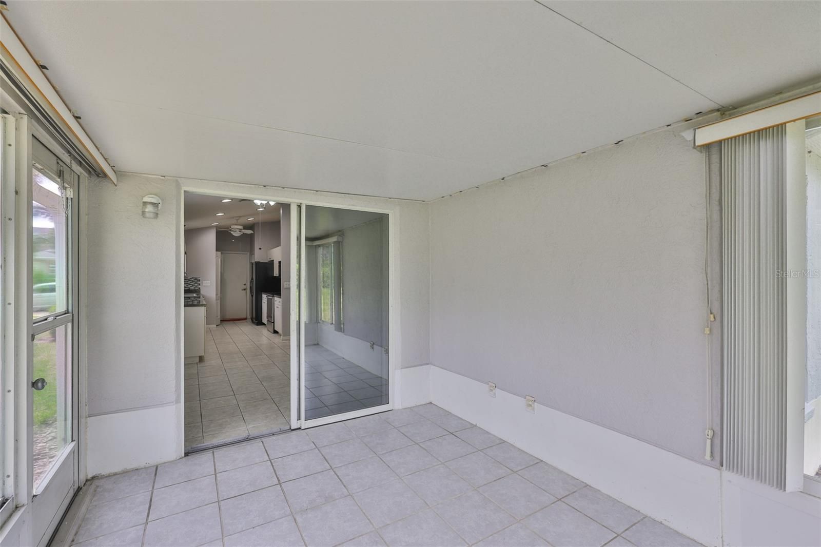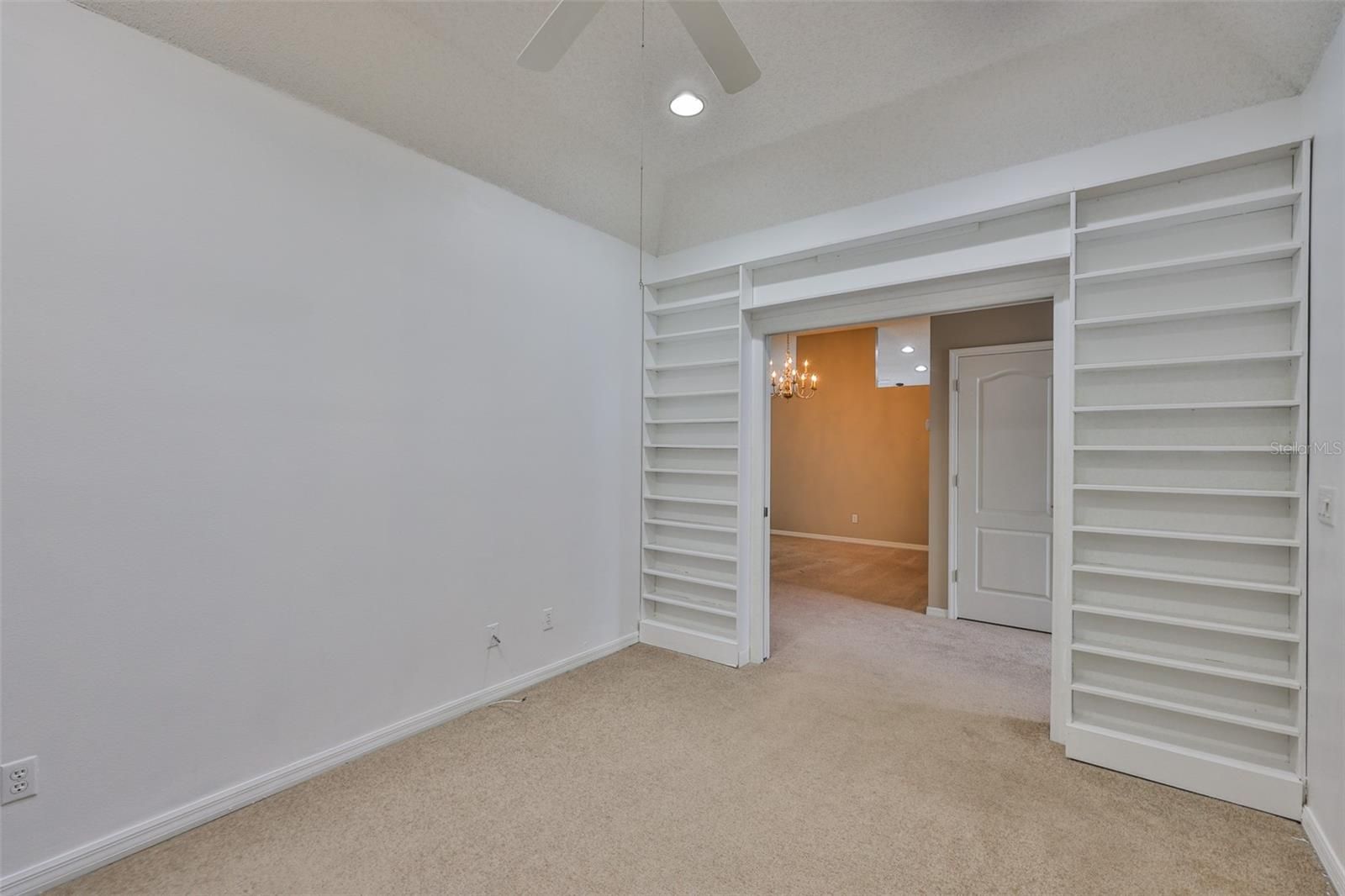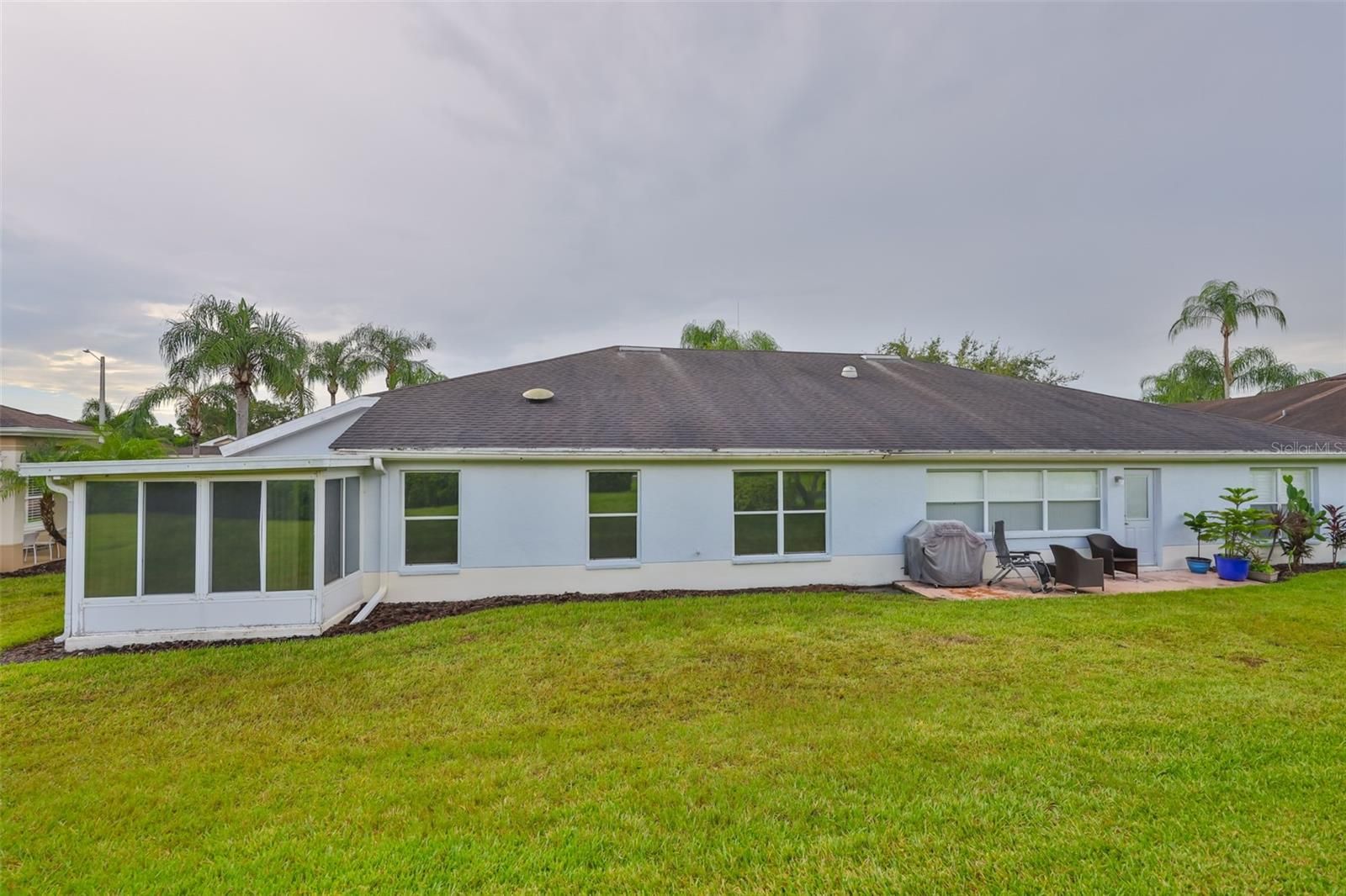 This Dartmouth model condo is centrally located with quick access either by car or golf cart to both the north and south clubhouses. Each features indoor and outdoor pools, spas, exercise areas, arts and crafts, and party rooms. The north also includes a cafe and large auditorium with a stage for various entertainment including movies and live performances The south includes a restaurant and bar. Other activities include: golf, pickle ball, tennis, lawn bowling, bocce courts and much more. Upon entering your condo, your tiled foyer leads directly to the large great room with a formal dining area and a huge living area. On the left will be the entrance to the guest bedroom and bath and than a bonus room with a stunning built in work area. Off the living area is the split primary bedroom with a large walk-in closet and additional reach in closet. The bathroom includes dual sinks, large walk-in shower and a water closet. Sky lights are located in the living area and bonus room. Your kitchen area has a large breakfast nook that also has a slider door leading to the enclosed lanai with access door to the outside. The updated kitchen has newer counters with back splash tile. Your double sink includes a fresh drinking water faucet and a spray faucet. Your water comes from a reverse osmosis system with a large water softener located in the garage which serves the whole house. The chef of the house will appreciate the updated kitchen appliances including built in microwave. Notice the two inch blinds in the kitchen and Roman cloth blinds elsewhere in the condo. Before entering the garage from the kitchen, you pass the pantry and utility area for for hookup to a washer and dryer. Finally enjoy the near by white beaches of the gulf coast, professional sports, cruise lines and Disney World.