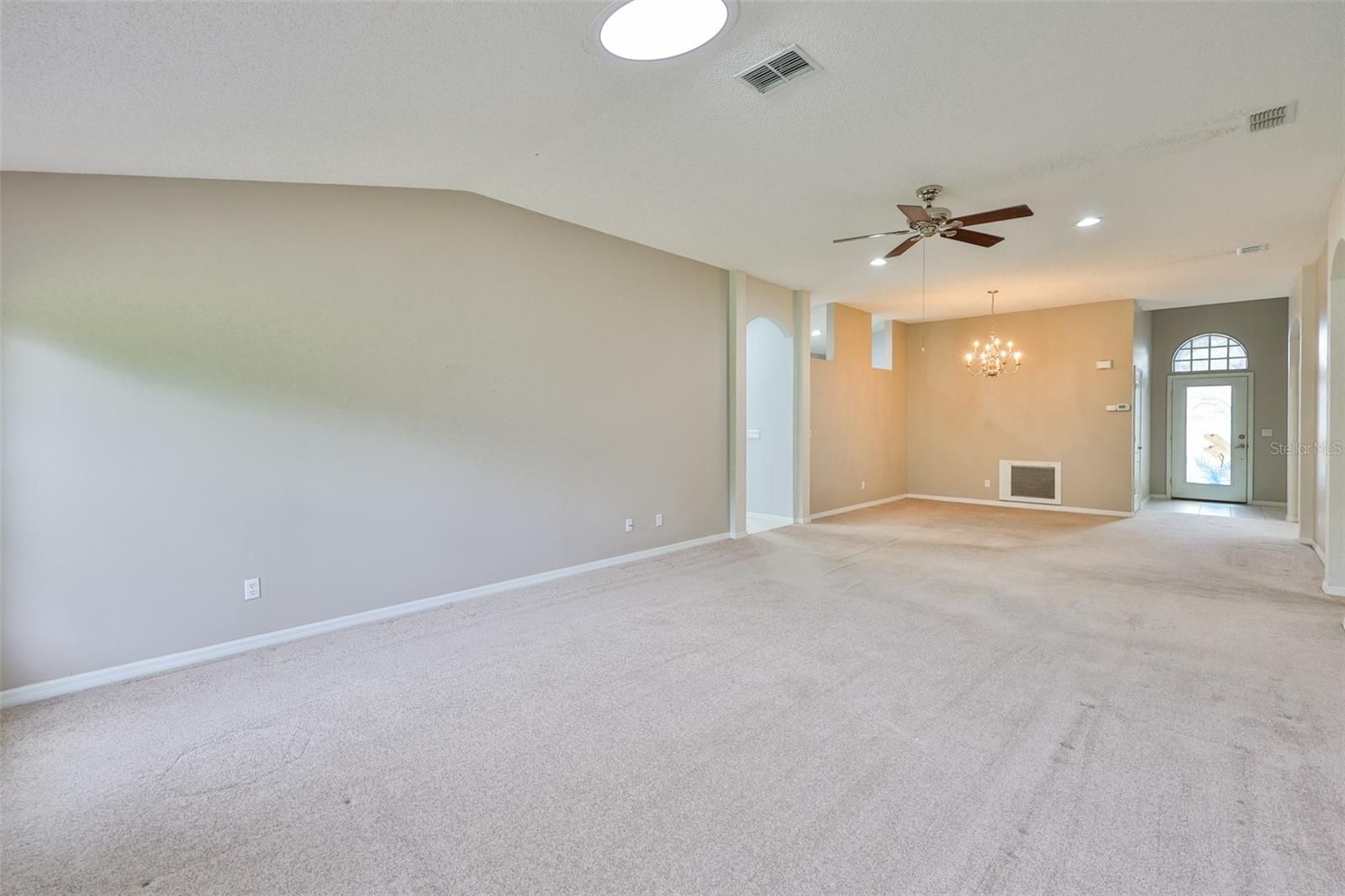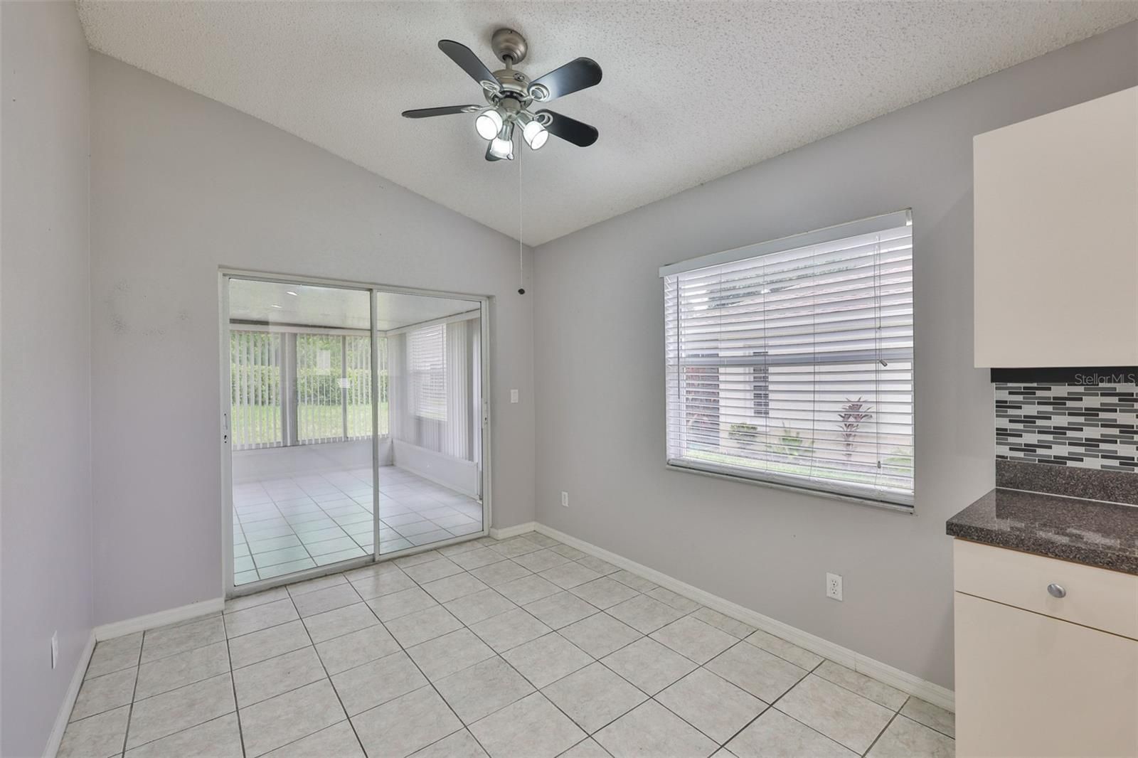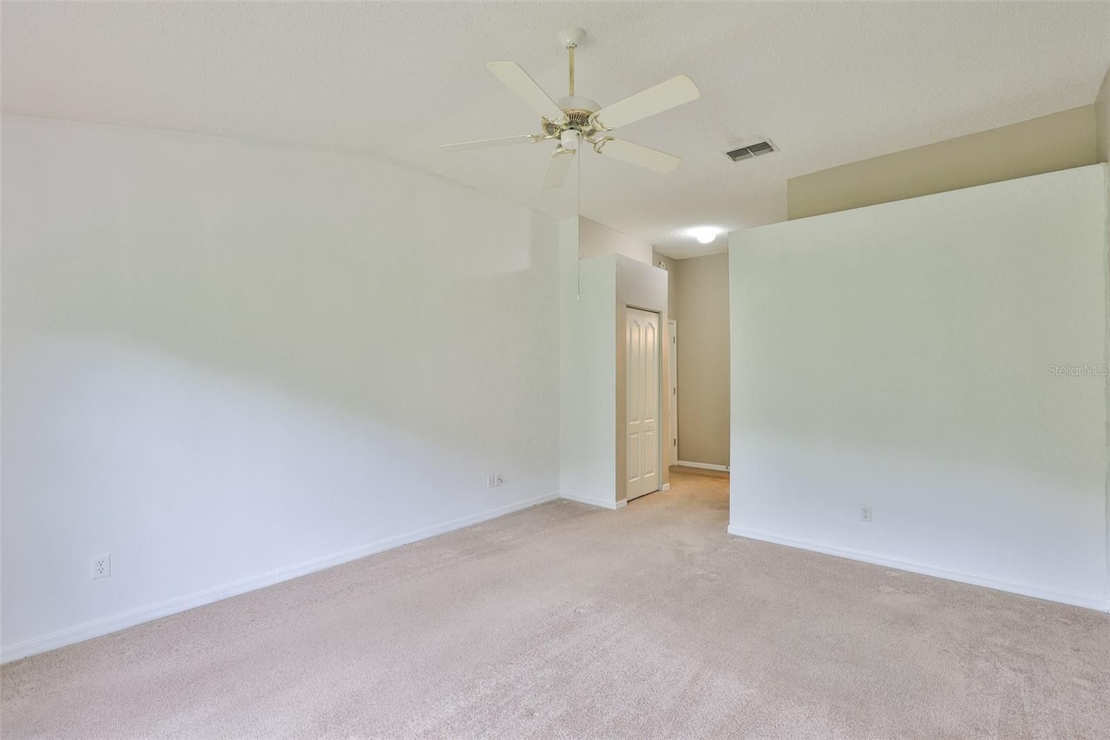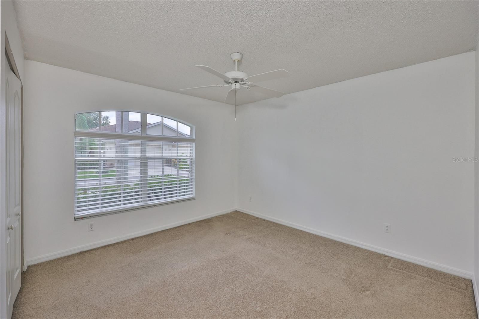 - Ceiling Fan(s), Eat-in Kitchen, Living/Dining Room, Main Level Primary, Solid Surface Counters, Split Bedrooms, Walk-In Closet(s), Window Treatments