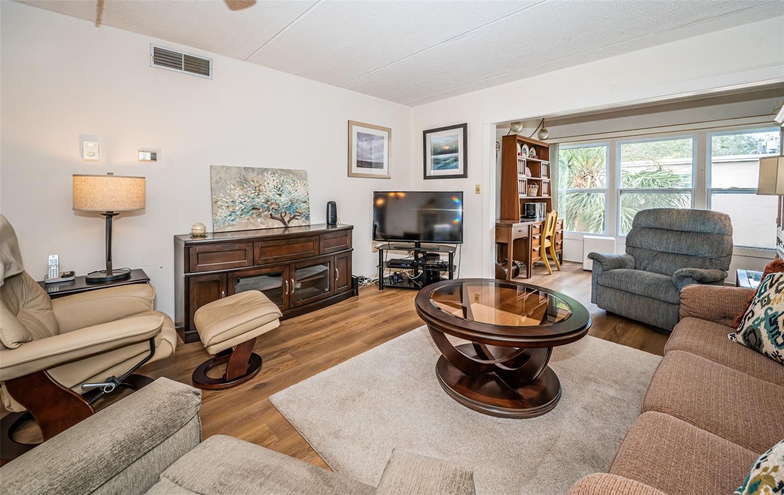 Live with ease in this beautifully updated FURNISHED third-floor condo in the highly sought-after 55+ Heather Lakes community. This bright 2-bedroom, 1-bath home features a remodeled kitchen with white quartz countertops, shaker cabinets, tiled backsplash, and newer stainless steel appliances, flowing effortlessly into the open living and dining space—perfect for relaxing or entertaining. Solid surface flooring, newer blinds, and updated ceiling fans add polished style throughout. Impact windows to keep your space quiet and private. The spa-like bathroom boasts quartz finishes, shaker cabinetry, and a newer walk-in shower. Enjoy morning coffee on your cozy front porch, plus the convenience of covered parking near the elevator and bike storage. Heather Lakes offers a heated pool, clubhouse, new roof, internet, cable, and a friendly, well-managed atmosphere. Walking distance to Downtown Dunedin and the Pinellas Trail, marina, shopping, dining, and transit—this hidden gem delivers the perfect blend of comfort, convenience, and carefree Florida living. Make it yours today!