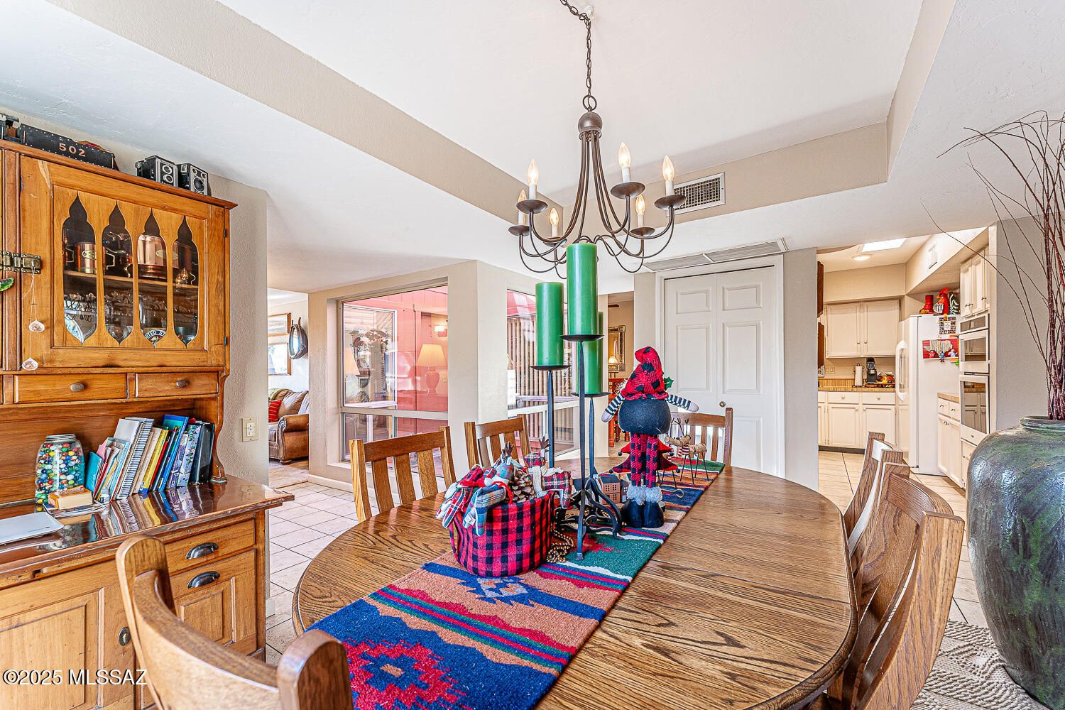 Welcome to your dream home, a pristine standalone home nestled in Green Valley, Arizona. A spacious lot offers privacy & parking is a breeze with a convenient two-car garage that features access & entry to a spacious, separate laundry room. A covered entry opens to an enclosed foyer room, greeting you with an inviting atrium that infuses the space w/natural light & is an impressive focal point. The updated kitchen has a new oven/microwave. The kitchen-dining area is perfect for casual meals. Entertain guests w/ease in the spacious dining area, conveniently located adjacent to the foyer. A luminous great room window frames views of the Mountains. All of the sliders provide access to a stunning patio area. The primary bedroom is a private retreat complete w/ensuite & plenty of closet space.