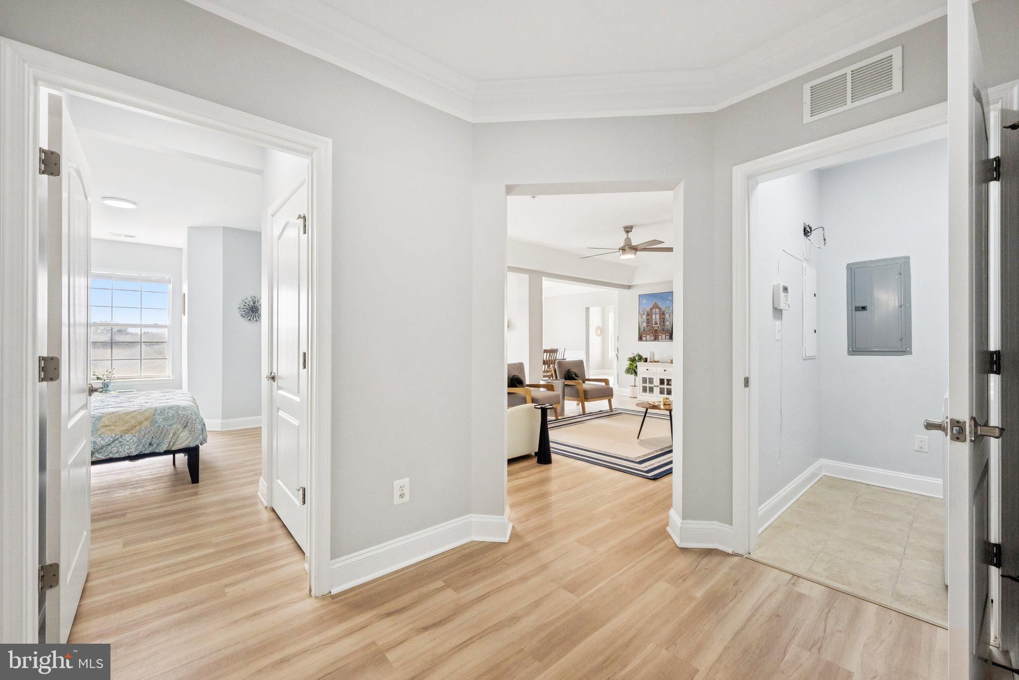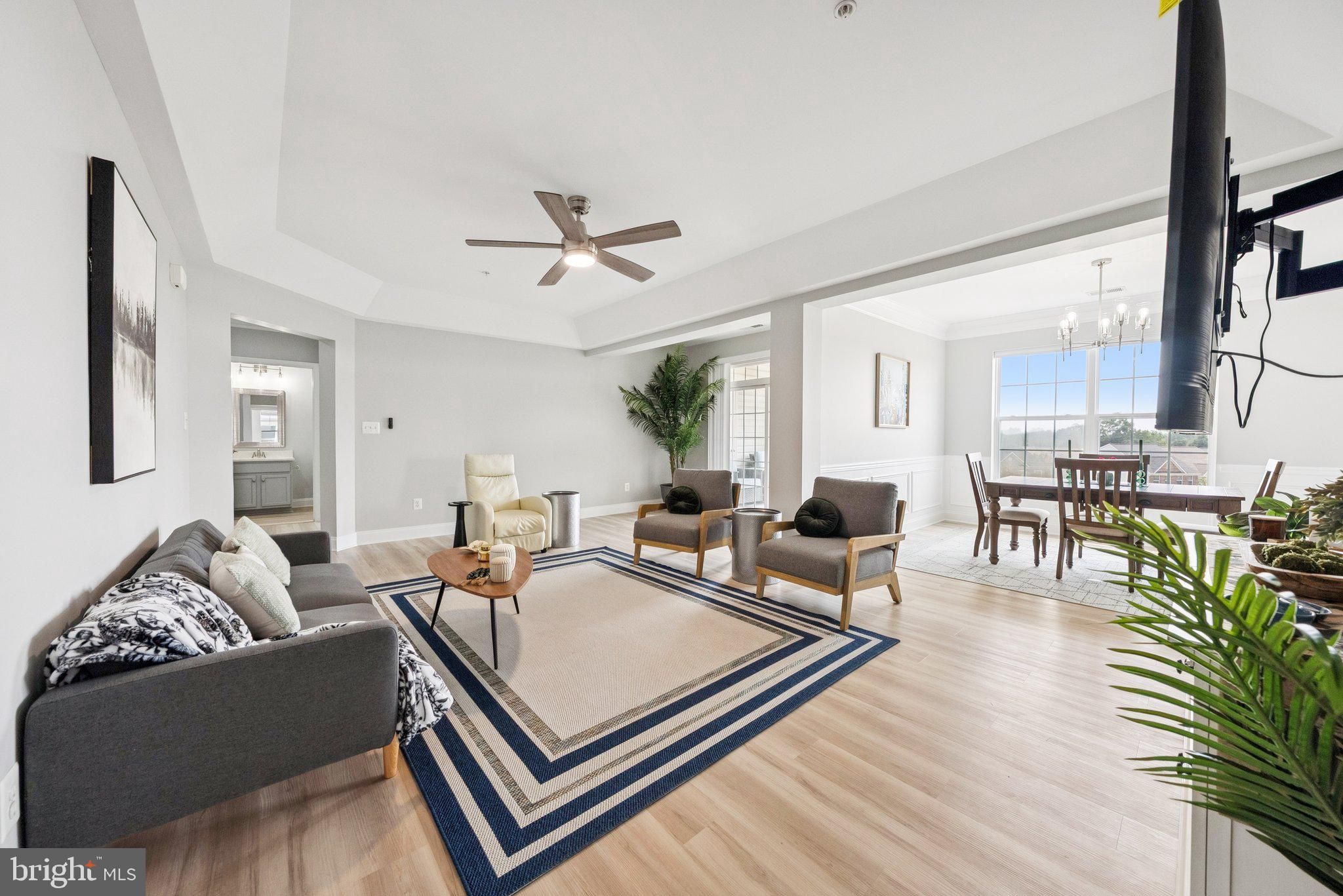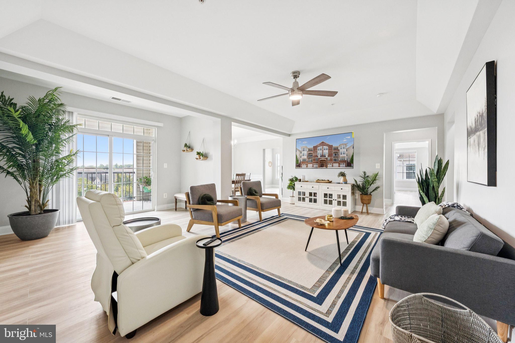 ABSOLUTELY STUNNING top floor unit with unobstructed city and garden views. Recently renovated with modern design in mind. As you enter you notice all the natural light from the large windows. Spacious family room with tray ceiling and additional sitting area. Sliding glass door leads to the private balcony. Separate dining room area with double crown, chair and picture molding accents. Be ready to be impressed with the gorgeous kitchen renovation with quartz counters with waterfall and breakfast bar. 42" two-toned custom cabinetry. Herringbone subway tile backsplash. SS appliances. Eat-in area filled with sunlight. Large double door pantry. Primary suite with tray ceiling and walk-in closet. Updated primary bath with new quartz counters, new lighting and fixtures. Separate shower and soaking tub. Two additional nice sized secondary bedrooms. Hall bath also updated with quartz counters and new fixtures. Laundry room with full-sized washer and dryer. Recently painted, including all the doors and trim. New luxury LVP run seamlessly throughout the unit. New LED lighting and ceiling fans. Garage in the front of the building with interior access and additional driveway parking. This active adult community offers a variety of amenities including secure building entrance, elegant lobby, elevator, fitness room, tennis courts, and a welcoming clubhouse. A walking path leads directly to a nearby shopping center with a Giant Food, public library, restaurants, and more. All just minutes from historic Old Town Manassas, VRE commuter rail, parks, museums, and boutique shopping. Don’t miss this rare opportunity to own a TOP FLOOR CORNER home in one of the areas most desirable 55+ communities! Too much to list it all.