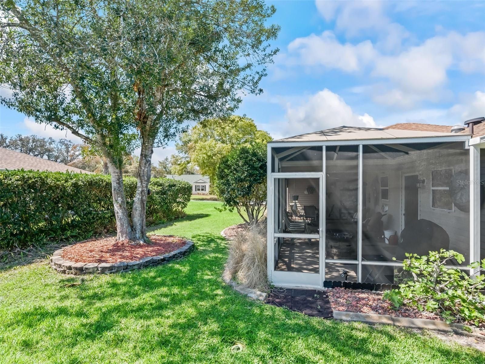 Beautifully maintained Austin model located in the popular Village of Springdale, ideally situated on a desirable corner lot with added privacy, a spacious lanai, and room to add a pool. From the moment you arrive, the decorative paver driveway and inviting front porch sitting area create standout curb appeal. Step inside to an open-concept floor plan featuring vaulted ceilings, granite countertops (kitchen and bathrooms), two-tone cabinetry, and warm neutral paint tones that create a comfortable, move-in-ready feel. The home offers easy living with no carpet with laminate and luxury vinyl plank flooring in the bedrooms for durability and style. Enjoy true Florida living with multiple outdoor spaces—relax with your morning coffee in the private back lanai. The lanai features an additional screened-in area with a protective tarp-style covering, providing extended outdoor enjoyment and flexibility or unwind in the afternoons on the charming front porch. The garage is equipped with an electric roll-down screen and added cabinetry for extra storage and functionality. Major updates already completed for peace of mind, including a new roof (2021), HVAC system (2019), and hot water heater (2023) and Double Pain windows throughout. Located just a short distance to Mulberry Grove Recreation Center and shopping, First Responders Recreation Center featuring Putt & Play, VA Clinic, and the Nancy Lopez and Glenview Championship Golf Courses—this location offers both convenience and lifestyle. Schedule your private showing today—this one is ready for its next owner.