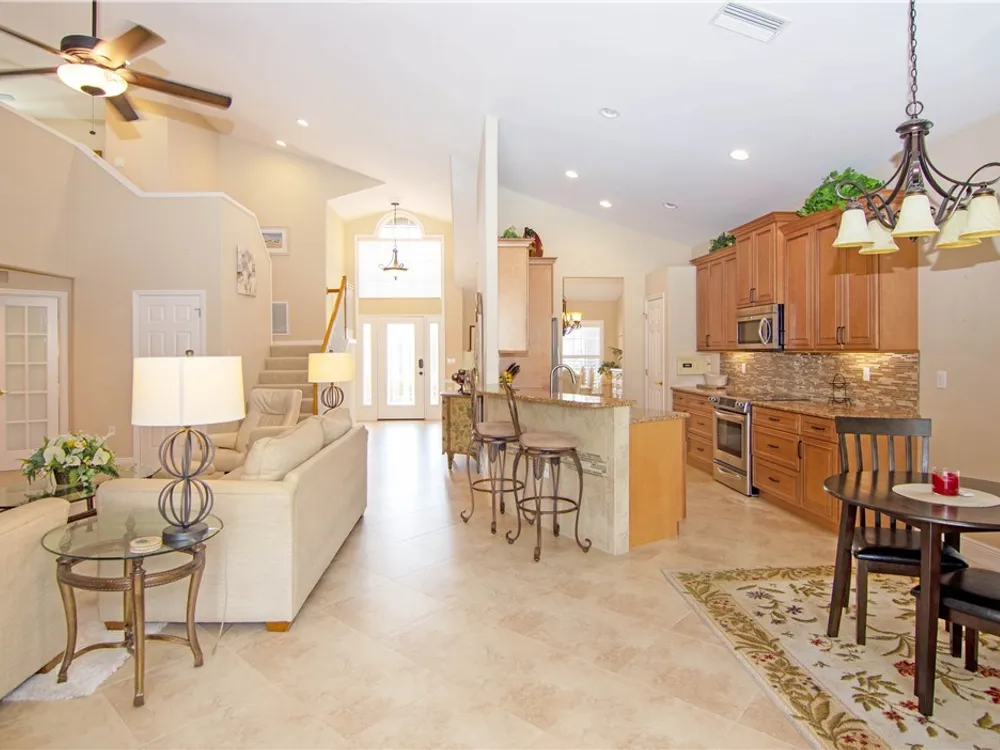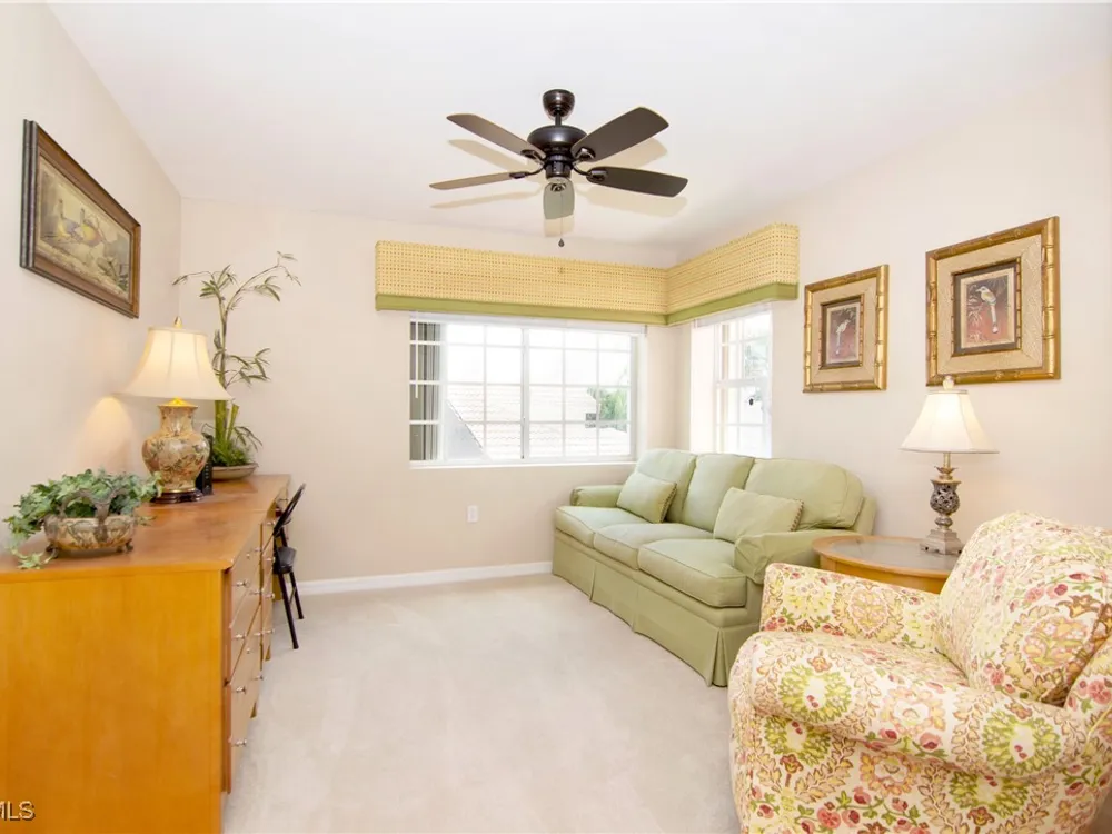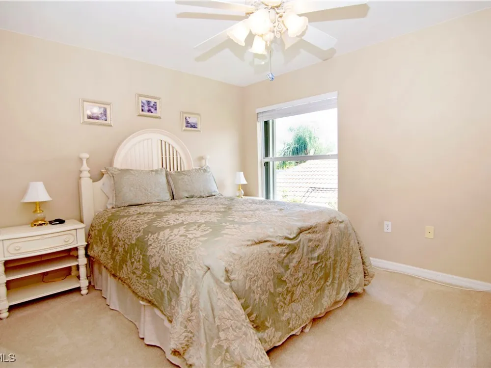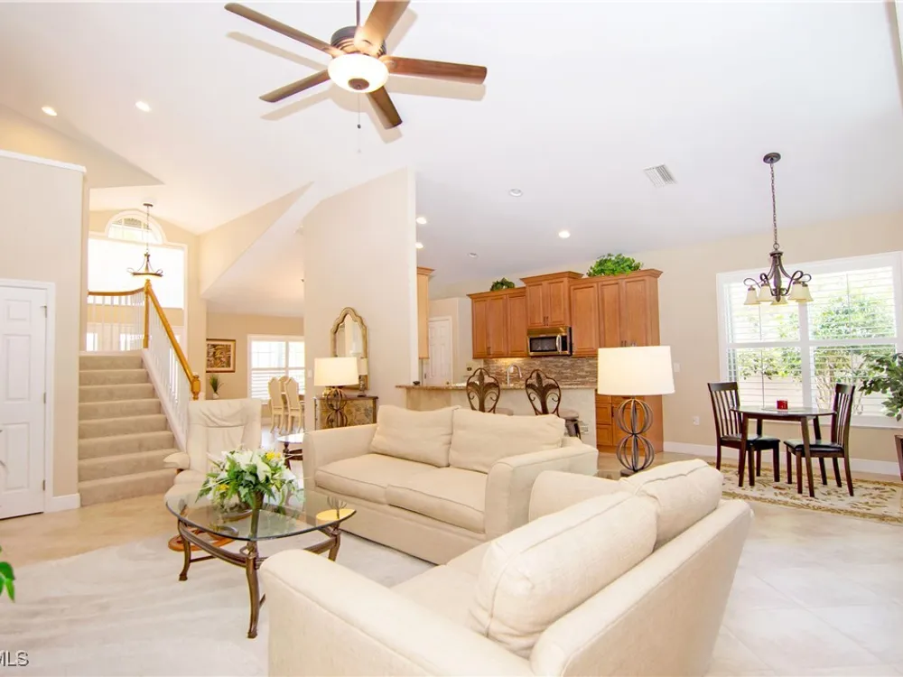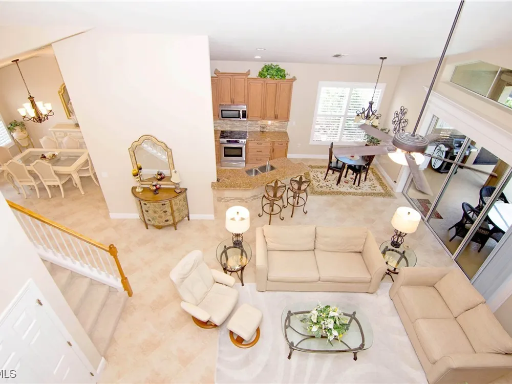 Come and See this popular Laurel Model (2,124sf under air) sold Turnkey and featuring room for everyone with it's 3 bedrooms and 3 full bathrooms plus a loft. Ideally located overlooking the 9th Green and steps from the recently updated Clubhouse and all of it's wonderful amenities- you are steps away from your vacation every day! Loaded with updates including brand new roof and pool heater (2025); Plantation Style Shutters; Efficient LED lighting; Updated kitchen with 42" cabinets that feature drawers and pull outs; granite counters, tile backsplash; recessed lighting & stainless steel appliances. The updated primary bedroom suite offers a view of the pool and golf course beyond, all accessible by sliding glass doors to the screened lanai with picture frame screened window. Included in the space is a fully updated primary bathroom with a tiled custom oversized walk-in shower, dual vanities and a large walk-in closet. The main living area is open and airy featuring soaring ceilings and a spaces for relaxing and dining both informally or in the formal dining space adjacent to the kitchen. Also on the first floor you will find a guest bedroom with an en suite bath with tub & shower and a laundry room with a deep sink and additional storage. The second floor features a third bedroom; a full bath with tub & shower and a loft space that can be used for an office or for overflow guests. Included with the home is a Storm Smart remote operated screen that protects the back covered lanai area; an electric shutter that protects the front entry of the home; while accordion shutters protect all windows offering steadfast storm protection. The property is located in the Golf Village and includes bundled golf and immediate access to the Golf Membership including 7 day ahead tee time booking; tournaments; events; leagues and a full practice facility. The Course is presently undergoing a full remodel and plans are to reopen in late 2025. The facility is designated as a Troon Prive club which offers the members an opportunity to experience golf via reciprocal play world wide. Colonial Country Club is ideally located. Close to I-75; RSW Airport; thousands of restaurants and shops and of course white sandy beaches. Within the complex, you can enjoy a renovated clubhouse with full service restaurant and bar; professionally maintained and lit clay tennis courts & pickle ball courts; a nature preserve trail for walking; a full service fitness center; a community center with library and a full slate of activities to keep you busy day and night! Don't miss your chance to own a piece of paradise!