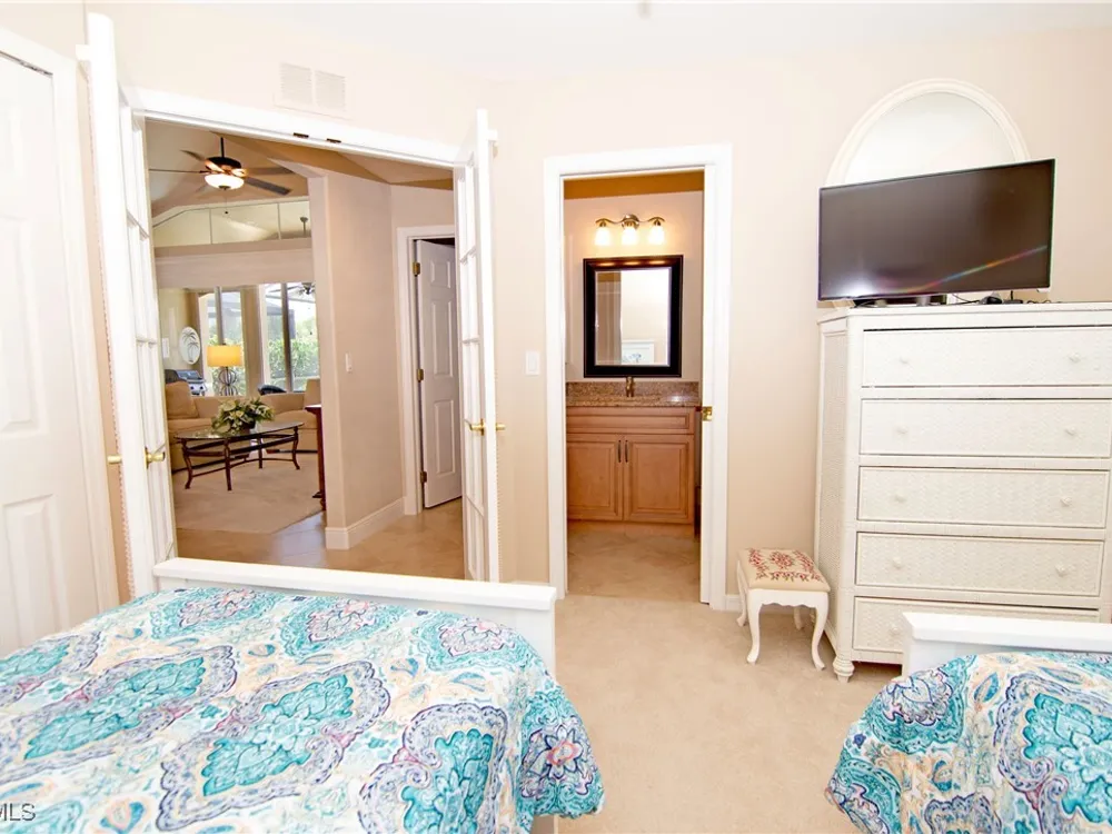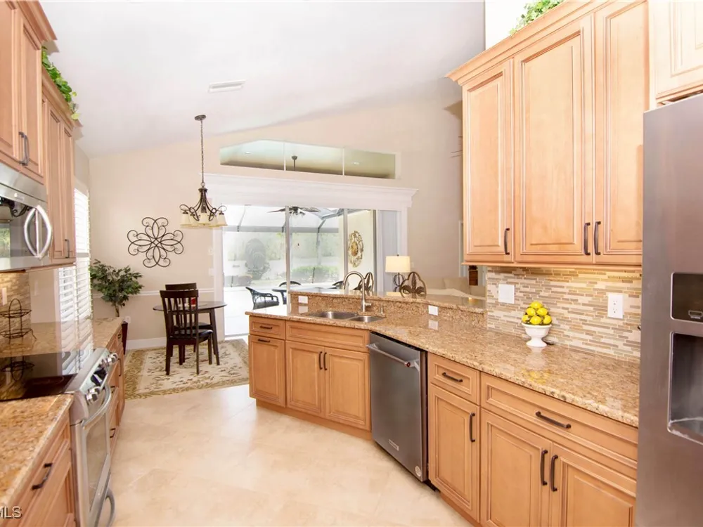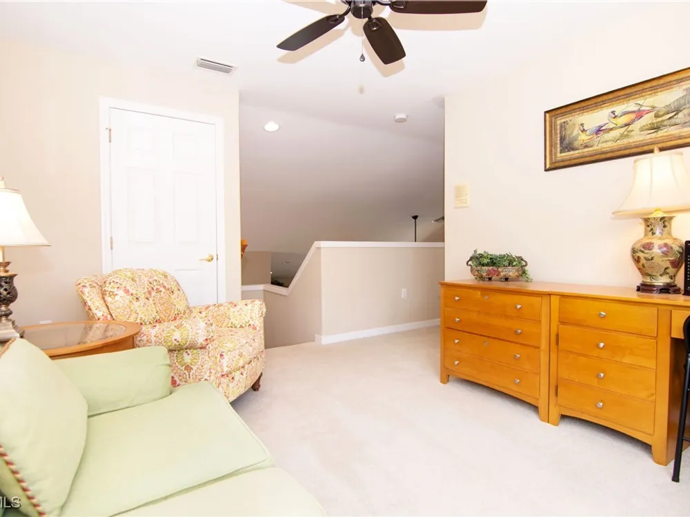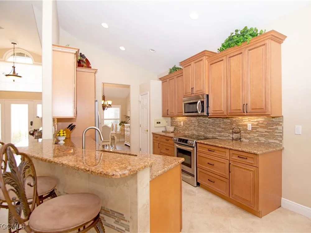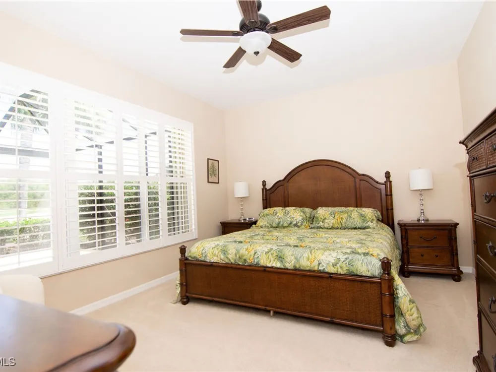Come and See this popular Laurel Model (2,124sf under air) sold Turnkey and featuring room for everyone with it's 3 bedrooms and 3 full bathrooms plus a loft. Ideally located overlooking the 9th Green and steps from the recently updated Clubhouse and all of it's wonderful amenities- you are steps away from your vacation every day! Loaded with updates including brand new roof and pool heater (2025); Plantation Style Shutters; Efficient LED lighting; Updated kitchen with 42" cabinets that feature drawers and pull outs; granite counters, tile backsplash; recessed lighting & stainless steel appliances. The updated primary bedroom suite offers a view of the pool and golf course beyond, all accessible by sliding glass doors to the screened lanai with picture frame screened window. Included in the space is a fully updated primary bathroom with a tiled custom oversized walk-in shower, dual vanities and a large walk-in closet. The main living area is open and airy featuring soaring ceilings and a spaces for relaxing and dining both informally or in the formal dining space adjacent to the kitchen. Also on the first floor you will find a guest bedroom with an en suite bath with tub & shower and a laundry room with a deep sink and additional storage. The second floor features a third bedroom; a full bath with tub & shower and a loft space that can be used for an office or for overflow guests. Included with the home is a Storm Smart remote operated screen that protects the back covered lanai area; an electric shutter that protects the front entry of the home; while accordion shutters protect all windows offering steadfast storm protection. The property is located in the Golf Village and includes bundled golf and immediate access to the Golf Membership including 7 day ahead tee time booking; tournaments; events; leagues and a full practice facility. The Course is presently undergoing a full remodel and plans are to reopen in late 2025. The facility is designated as a Troon Prive club which offers the members an opportunity to experience golf via reciprocal play world wide. Colonial Country Club is ideally located. Close to I-75; RSW Airport; thousands of restaurants and shops and of course white sandy beaches. Within the complex, you can enjoy a renovated clubhouse with full service restaurant and bar; professionally maintained and lit clay tennis courts & pickle ball courts; a nature preserve trail for walking; a full service fitness center; a community center with library and a full slate of activities to keep you busy day and night! Don't miss your chance to own a piece of paradise!
