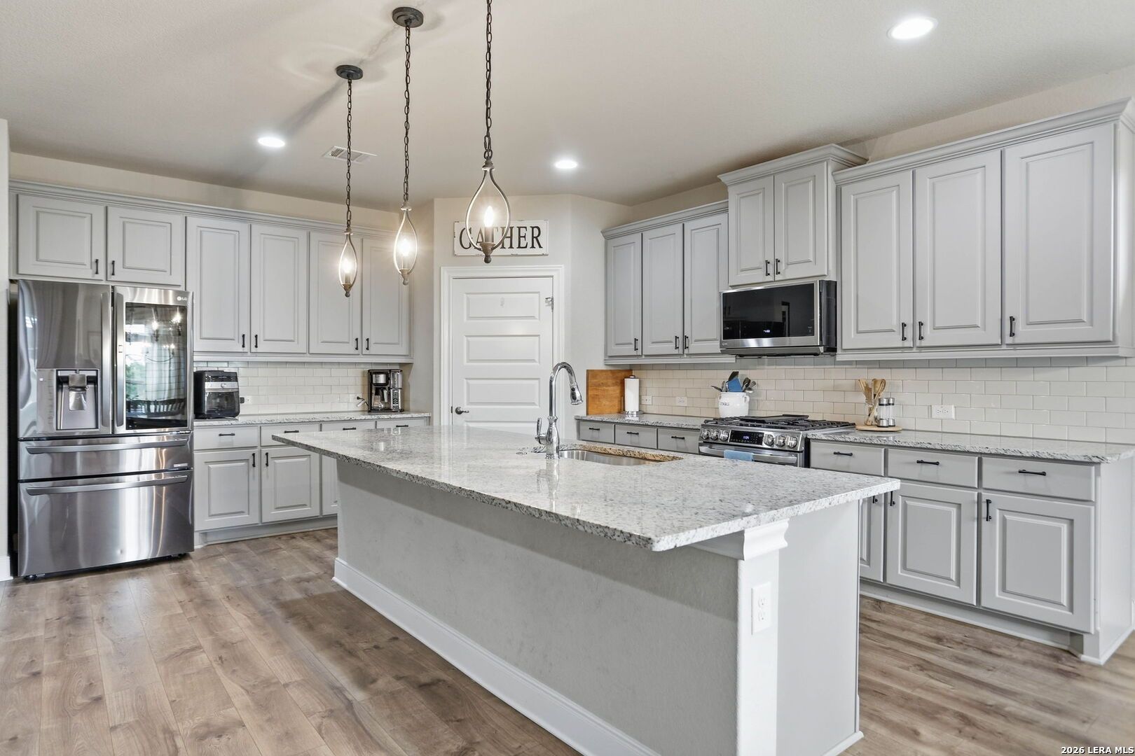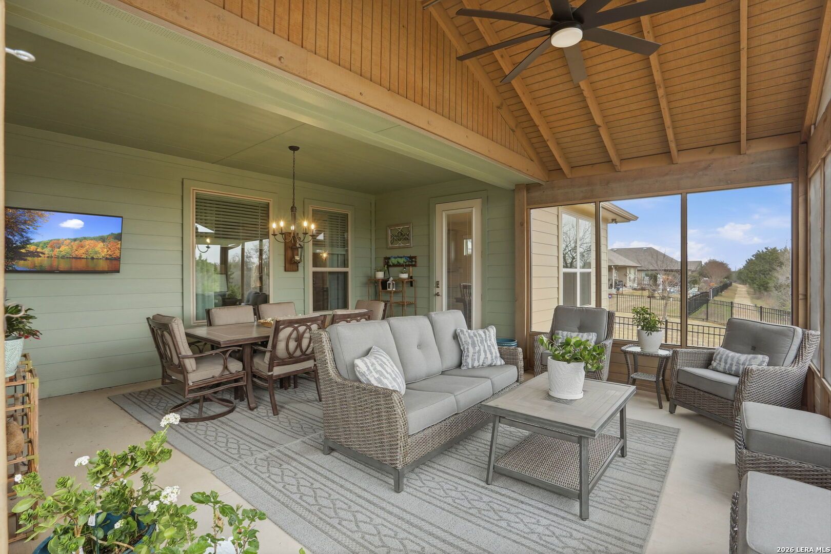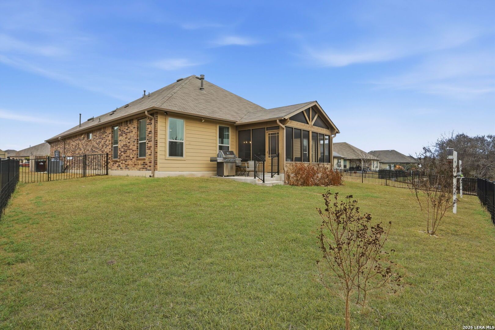 Welcome to 9206 Sundrop Valley in the desirable Valley Ranch community of San Antonio. Built in 2020, this beautifully maintained two-bedroom, two-and-a-half-bath home offers approximately 2,250 square feet of thoughtfully designed living space with modern finishes and functional flow. The heart of the home features upgraded appliances, providing both style and performance for everyday cooking and entertaining. The open-concept layout creates seamless connectivity between the kitchen, dining, and living areas, allowing for comfortable gatherings and flexible use of space.Throughout the home, ADA-width doorways enhance accessibility and ease of movement, offering added flexibility for a variety of lifestyle needs. One of the standout features is the newly added screened-in back porch, offering a private and versatile outdoor retreat. Whether enjoying morning coffee or hosting evening get-togethers, this space extends the living area while allowing year-round enjoyment. The backyard provides additional room to relax, garden, or entertain. For added peace of mind, the home includes a whole-home generator, delivering dependable backup power when needed. This valuable upgrade enhances comfort, convenience, and preparedness. Situated on a generous lot within a well-established neighborhood, this property combines modern construction, thoughtful upgrades, and practical enhancements. This home offers an excellent opportunity for buyers seeking quality, comfort, and functionality in a convenient San Antonio location.