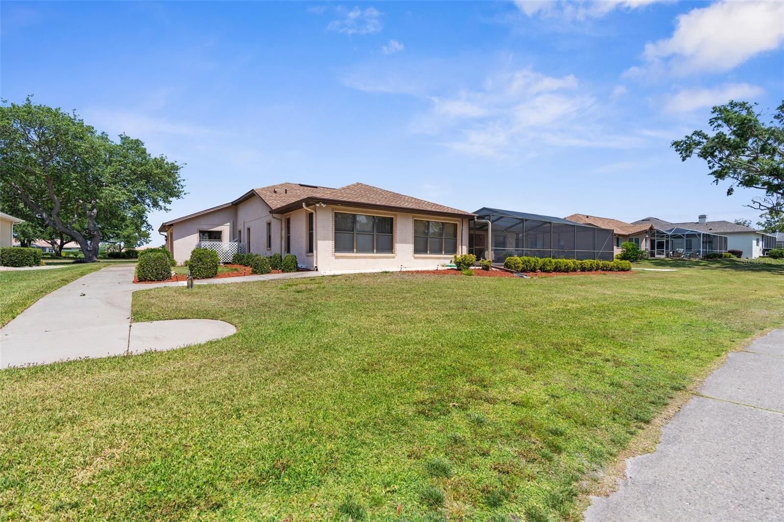 HUGE PRICE REDUCTION. Seller WANTS TO SELL! This is the opportunity you have been waiting for. Seller is open to creative financing, lease to own, and more! Secure this stunning resort-style home on a rare double lot overlooking the 16th tee of GlenLakes Golf & Country Club at a dramatically improved new price. This is an absolute steal for the space, features, and location offered. With the spacious interior, screened lanai, and oversized garage, you have nearly 3,700 total square feet to enjoy. Live the vacation lifestyle on your own terms. The social membership is completely optional, so you decide when to utilize the community pool, clubhouse, fitness center, golf, and pickleball. Right within the neighborhood, you already have immediate access to a dog park, play area, bocce, horseshoes, shuffleboard, basketball, and more. Inside, discover over 2,300 square feet of vibrant, well-cared-for living space. High ceilings, elegant crown molding, and an open layout amplify the abundant natural light. Seamless laminate flooring and tile enhance the main areas, while a whole-house audio system and all-new ceiling fans provide ultimate everyday comfort. The great room and formal dining area will take your breath away with panoramic fairway views framed by classic French doors. The chef's kitchen is a showstopper. It features stainless steel appliances, granite counters with a matching backsplash, and impressive 42-inch staggered cabinets. Storage is unbeatable with two pantries, including one equipped with its own freezer. A breakfast bar and sunny breakfast nook flow effortlessly into the family room, creating the perfect gathering hub. Retreat behind double French doors to the massive primary suite, boasting a tray ceiling and an oversized walk-in closet. The fully accessible ensuite bath offers dual vanities, a wheelchair-friendly shower, and a brilliantly discreet laundry area. Total privacy is ensured with two additional guest bedrooms and a spacious full bath on the opposite side of the residence. A separate executive-style office sits adjacent to the primary suite for ideal remote work conditions. Your outdoor living game just leveled up. Entertaining is spectacular on the nearly 1,000-square-foot screened lanai, finished with pavers and offering sweeping golf course vistas. Car enthusiasts and hobbyists will be amazed by the oversized garage. With front and side entries, it easily fits multiple cars, a golf cart, and even a 20-foot boat. This incredible space also includes abundant cabinetry, an automatic door opener, a handy half bath, and an extra oven perfect for holiday cooking. This home is loaded with premium updates and features for total peace of mind, including whole-house handicap accessibility, multiple surrounding sidewalks, a central vacuum system, and a newer 2018 roof. Just installed in 2025 are a brand-new HVAC system, and a new Radiant barrier to reduce heat gain and improve energy costs. At this new price, this property will move fast. Arrange your private showing today and grab the best deal in GlenLakes. Follow this link to view property Video: https://apex-imaging-media-1.aryeo.com/videos/0199a669-1bb1-71ae-92df-7e18b9107cae?v=218 All information in the MLS is intended to be accurate; buyer and buyer's agent to verify. Appt. required.