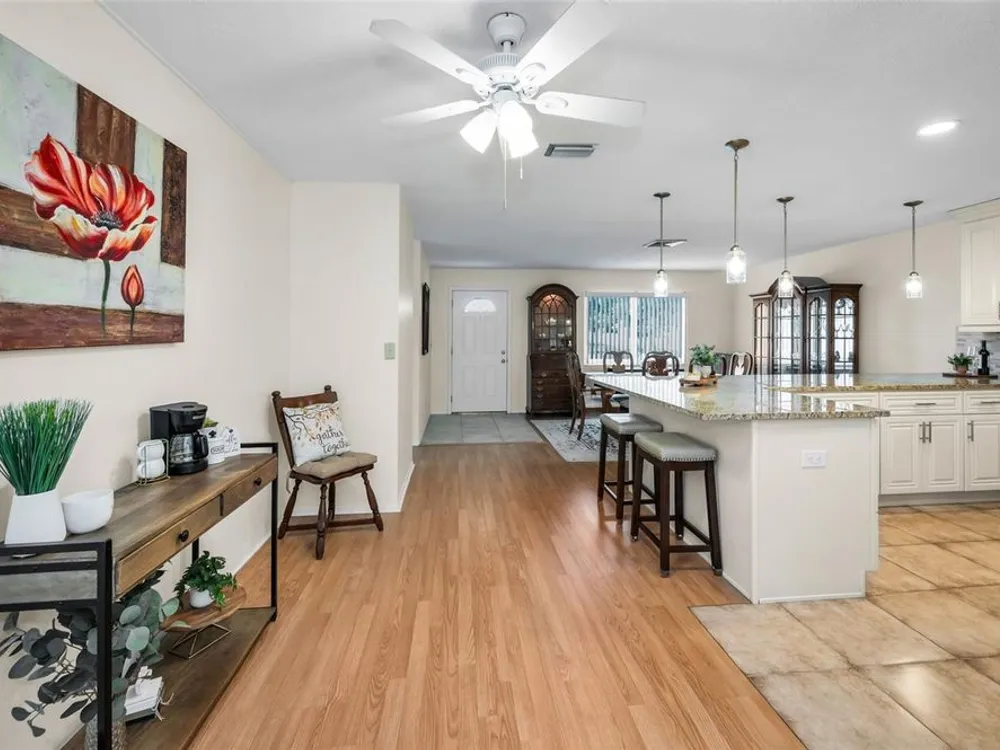 Fall in love with this Palm Harbor treasure!!! 921 Anchorage Lane is a beautifully updated 1,204 sq ft 2 bedroom, 1 bath, 1-car garage home in the vibrant 55+ community of Anchorage of Tarpon Lake. Inside, the airy open-concept design is highlighted by a fully remodeled kitchen including new cabinets, granite counters, tile backsplash, new stainless steel appliances, and new lighting. A newly renovated bathroom features a walk-in shower with safety bars and a new vanity. Thoughtful upgrades include a water softener, updated interior doors, hurricane windows, new leaf-guard gutters, and freshly screened porches, along with a clean 4-point inspection that makes this home truly move-in ready. Open the sliding glass doors on a breezy day and enjoy true indoor-outdoor living, with natural light streaming throughout. The location is just as impressive as the home itself. Steps away are the newly redone community pool and updated clubhouse, complete with a full kitchen, library, and billiard room — perfect for social gatherings and neighborhood fun. A private walkway connects you directly to John Chesnut Park, where you’ll find shaded trails, a dog park, boat ramp, picnic areas, and even a tower with sweeping views of Lake Tarpon. Deer and wildlife are a common sight right in your own yard. Anchorage residents enjoy an active lifestyle with endless nearby amenities. The Suncoast YMCA is approximately 1 mile away, offering a gym, pool, tennis and basketball courts, and group fitness classes from yoga to water aerobics. Lansbrook Golf Club is right around the corner, and the Pinellas Trail makes walking and biking a breeze. Gulf Coast favorites like Honeymoon Island State Park Beach are just 20 minutes away. Anchorage of Tarpon Lake offers peace of mind with its low $500/year HOA fee, X flood zone location (no flood insurance required), and well-maintained community. For those considering future leasing, owners must reside in the home for two years prior to leasing, with a minimum twelve-month lease and HOA approval required. This is your chance to enjoy easy, active Florida living with the perfect balance of modern updates, community charm, and nature at your doorstep.