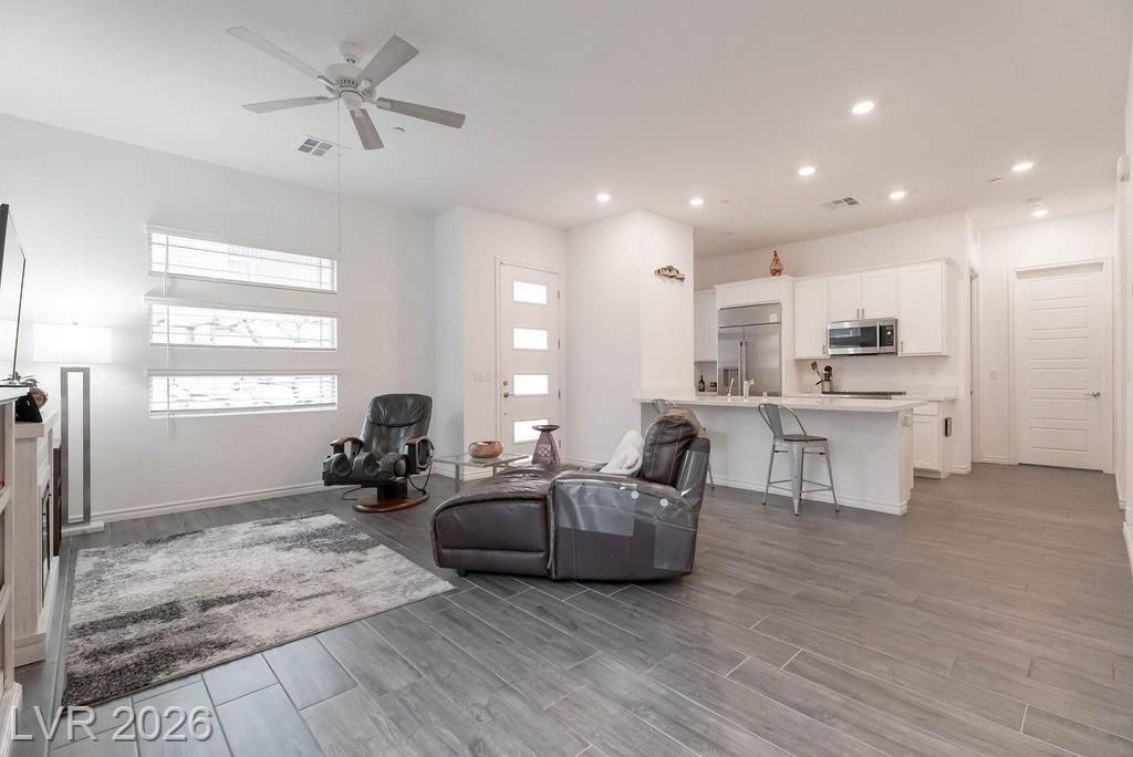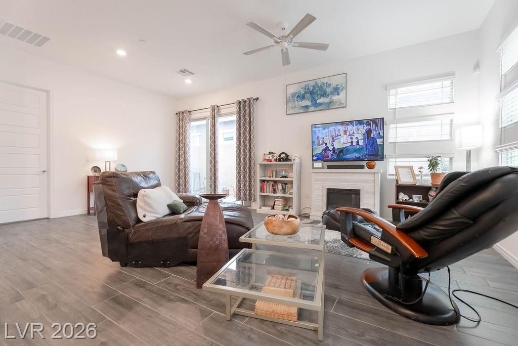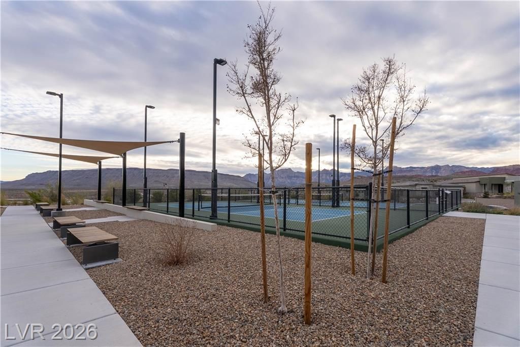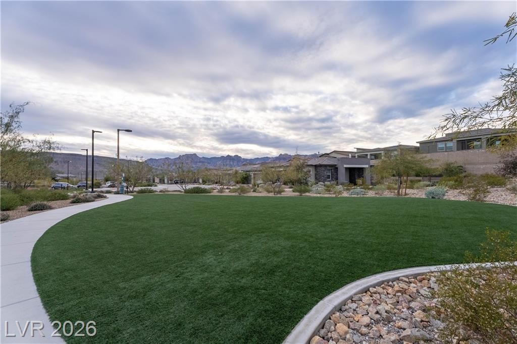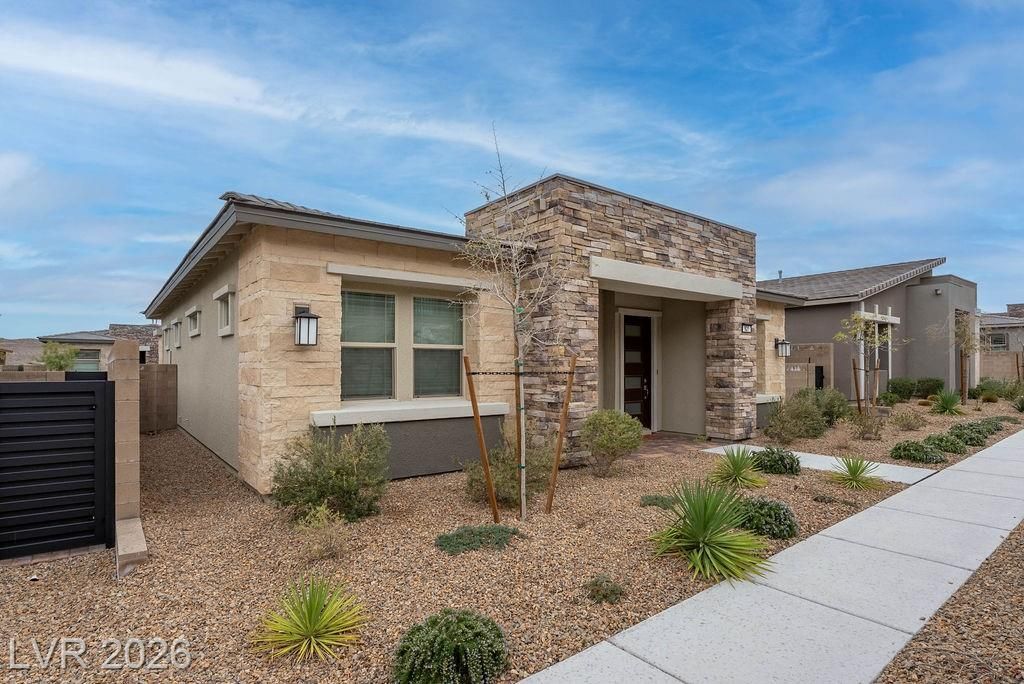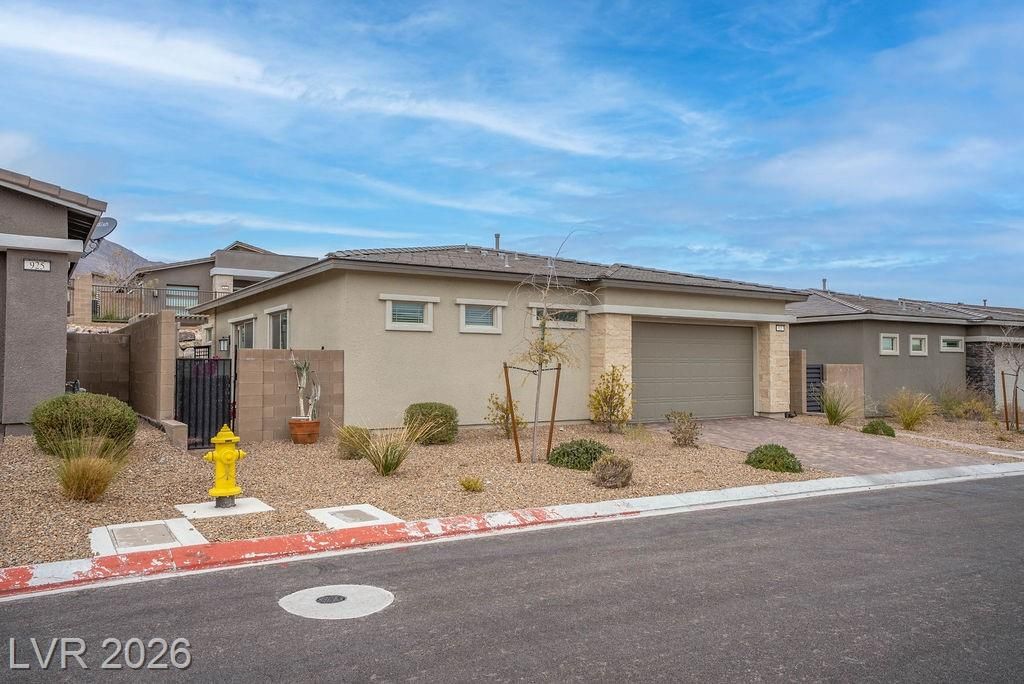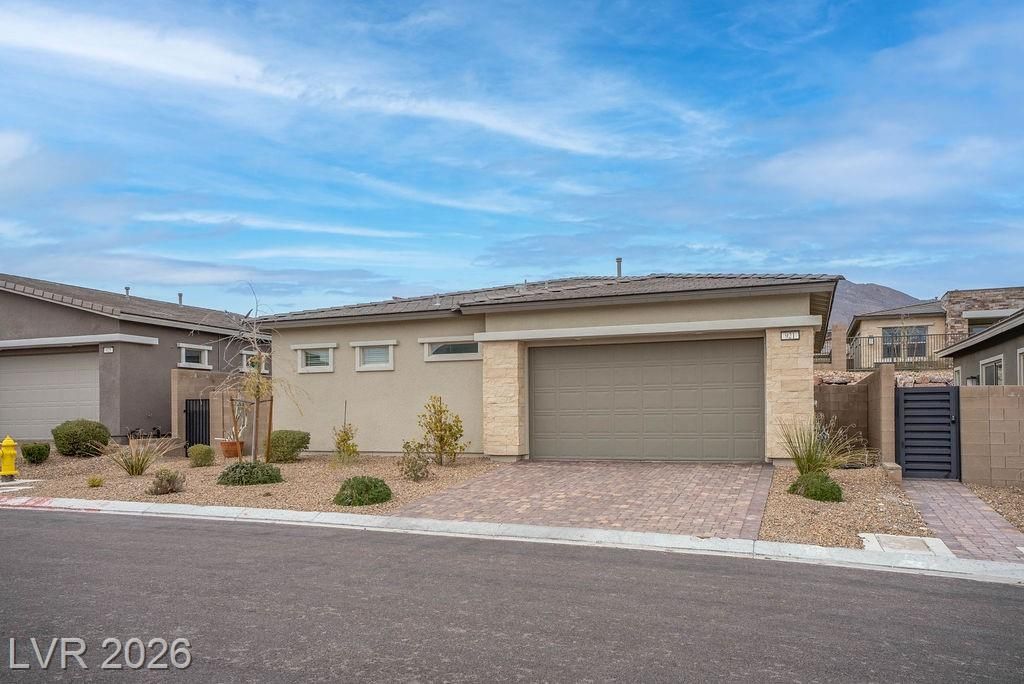 Welcome to 921 Mayfield Manor Lane, located in Heritage at Stonebridge...a posh 55+ active community in the heart of Summerlin. Built in 2022, this pristine 1,232 sq ft home rests on a lot that offers majestic glimpses of the red rock mountains from your driveway. Tastefully designed with modern finishes and an emphasis on low-maintenance living, this home offers a seamless blend of comfort, style, and everyday ease. Perfect for those who want to enjoy the best of Summerlin living in a beautifully maintained, like-new residence. Enjoy access to resort-style amenities, including three pools with resort-style amenities, relaxing spas, a state-of-the-art gym, and pickleball courts...all within the privacy of a guard gated community. This is what you've been searching for.