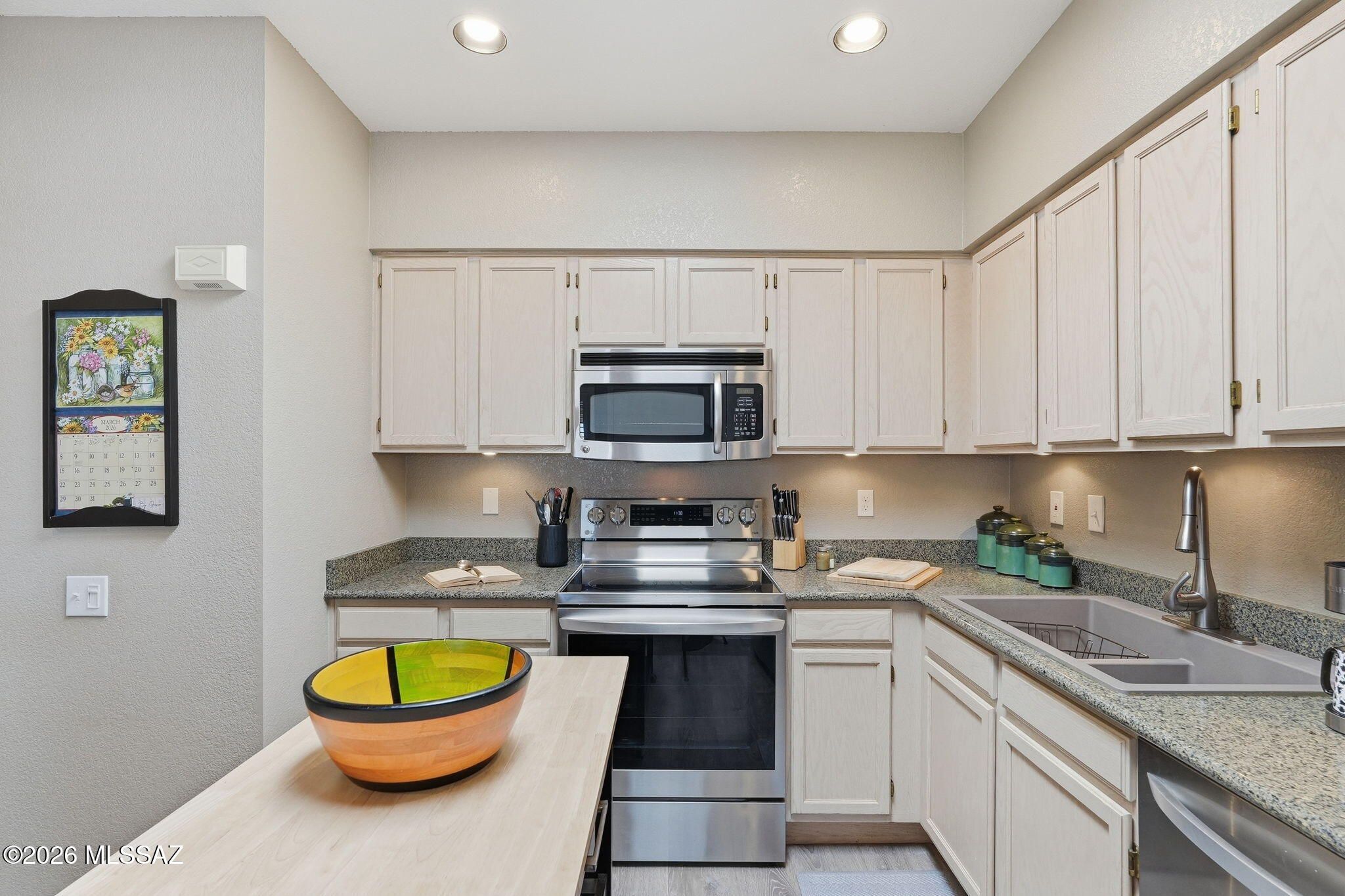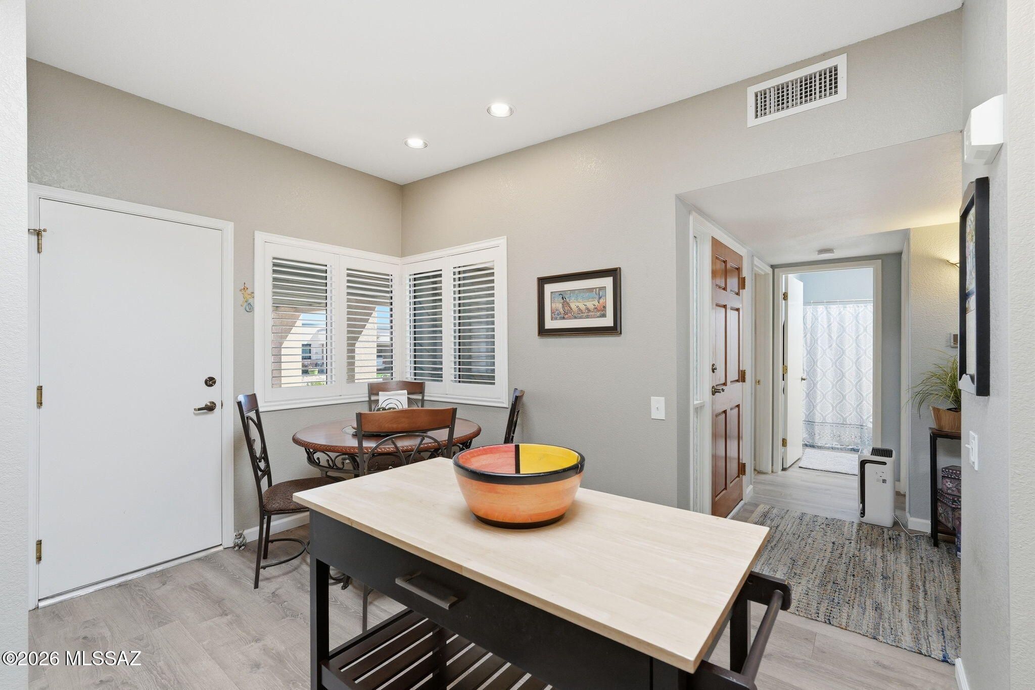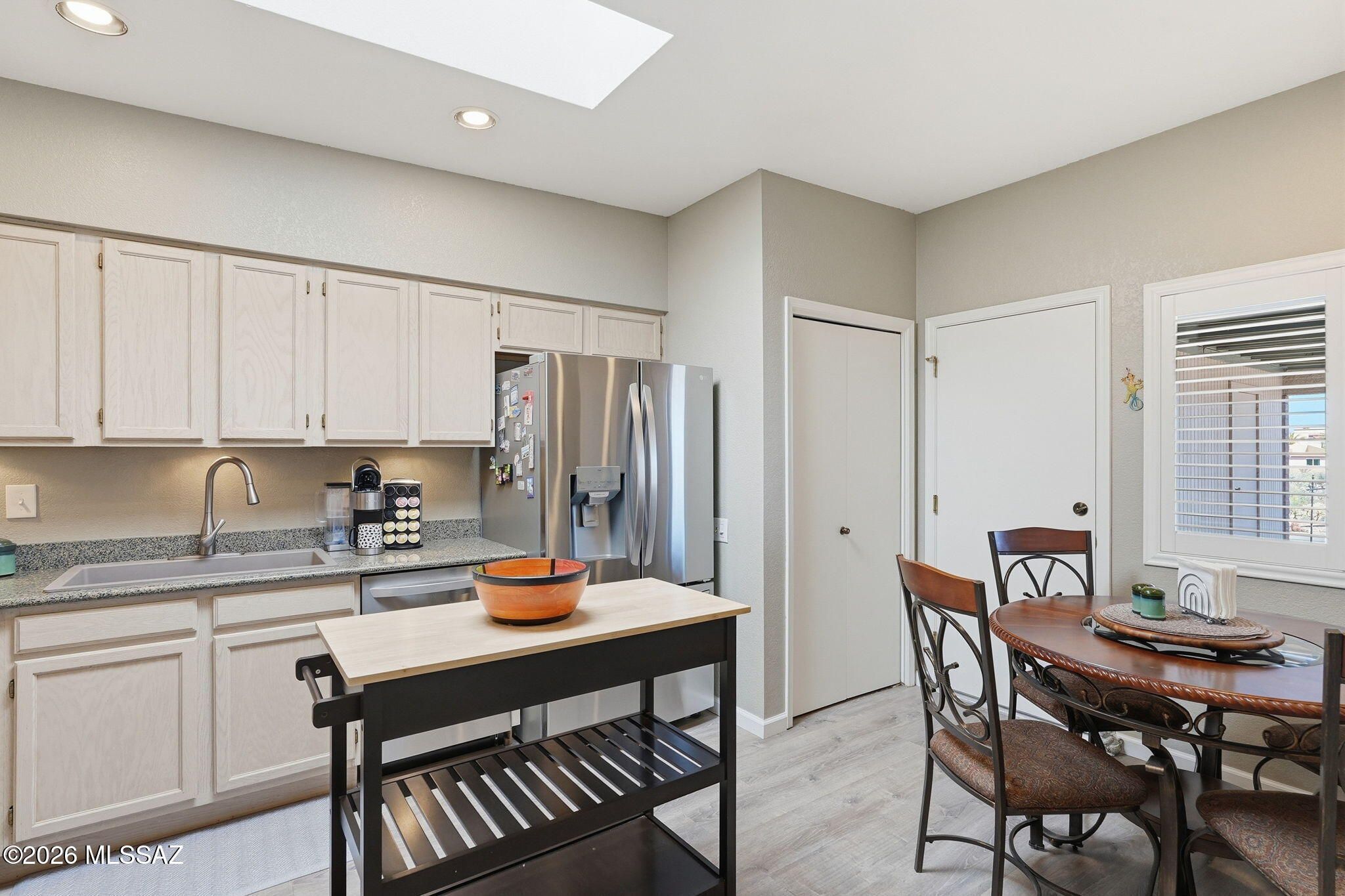 Welcome to your next happy place in sunny Green Valley! This charming two-bedroom, two-bathroom townhouse has been lovingly updated from top to bottom, making it the perfect spot for year-round living or your seasonal escape from the cold.Step inside through the wrought iron security door into a welcoming foyer that sets the tone for what's ahead. The kitchen is a real showstopper with gorgeous quartz countertops, under-counter lighting, recessed lights, a new drop-in sink and faucet, brand new stainless steel appliances, a garbage disposal, and a handy island with a breakfast nook featuring plantation shutters. It's the kind of kitchen that makes you actually want to cook dinner.The living room flows right off the kitchen with beautiful new plank flooring and skylights that fill