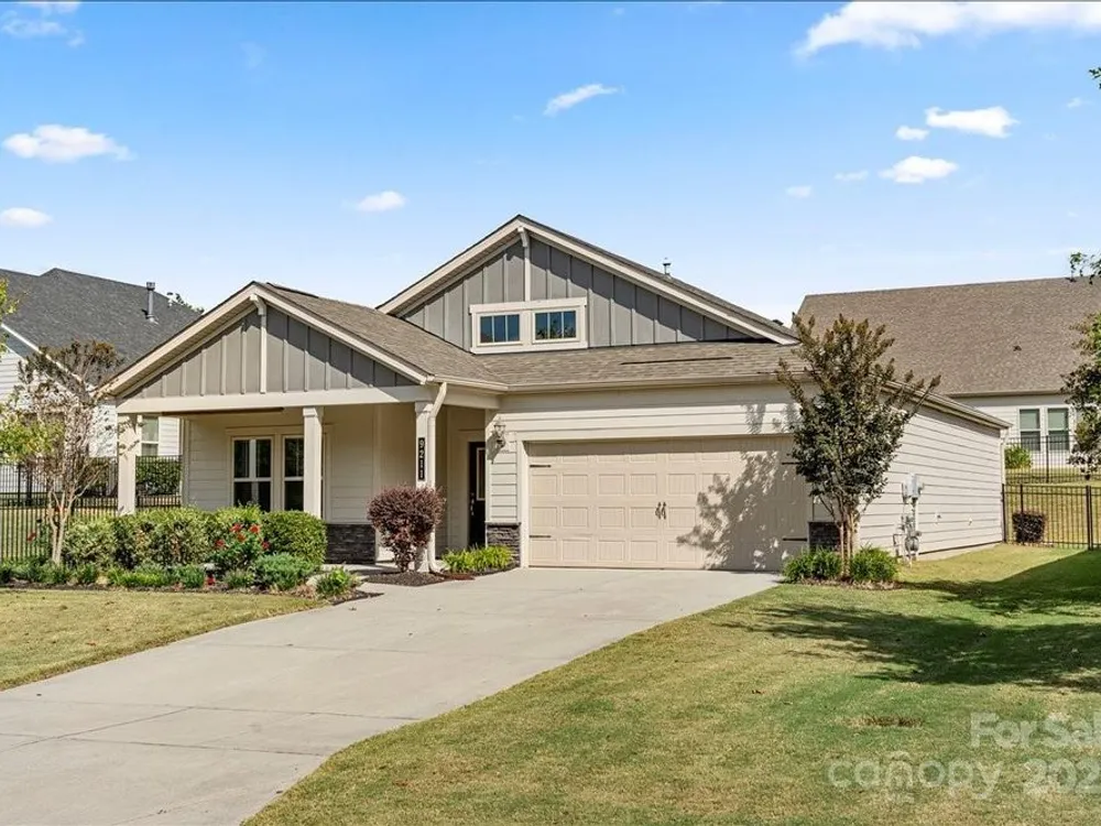 Discover this stunning 2019-built ranch home, nestled on a premium cul-de-sac lot. Offering three bedrooms and two full baths, it boasts an inviting open floor plan that seamlessly blends the kitchen, breakfast nook, and family room. The kitchen impresses with stainless steel appliances, kitchen island, and a gas range. The primary bedroom features a walk-in closet and dual vanity sinks. Step out back to enjoy the spacious fenced-in backyard, perfect for entertaining. With new carpet in the bedrooms and fresh paint throughout, this home is truly move-in ready. HOA fees include professional lawn maintenance and access to the Palisades Country Club's amenities, such as a pool, fitness center, tennis courts, and clubhouse. Ideally located near Lake Wylie and the Rivergate Shopping Center, this property offers easy access to Charlotte Douglas International Airport and Uptown Charlotte.