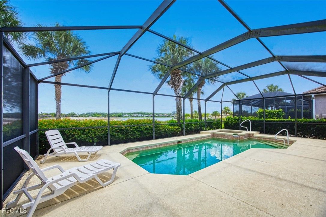 Welcome to your dream home in Colonial Country Club! This beautiful single-family home boasts 2 bedrooms, 2 bathrooms, an in-ground pool, and an office or den for all your work-from-home needs. NO FLOOD INSURANCE REQUIRED. Enjoy Breathtaking Views of the first hole right from your backyard, perfect for relaxing evenings or entertaining guests. This home comes with a FULL GOLF MEMBERSHIP to a Gordon Lewis designed championship golf course which is being renovated so you will have a brand new golf course in December. Reciprocals are set up for play through November. The newer roof and air conditioner provide peace of mind and added value to this already impressive property. With plenty of natural light and open living spaces, this home is perfect for those who love to entertain or simply enjoy the tranquility of their surroundings.The award-winning Colonial Country Club offers resort-style living with amenities like bundled golf, tennis, pickleball, a fitness center, miles of walking trails and bocce ball. The on-site restaurant and bar offers a place to socialize with friends and neighbors Colonial Country Club has won the Distinguished Club Award as one of only two clubs in Fort Myers and in the top 4% of clubs globally, Colonial proudly upholds the esteemed Distinguished Club Award, a testament to its steadfast dedication to excellence in service, facilities, and the overall member experience. Handpicked through a meticulous evaluation process by BoardRoom magazine's industry specialists, this award solidifies its standing among the world's most esteemed private clubs. Don't miss out on this incredible opportunity to own a piece of paradise in Colonial Country Club!