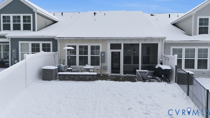 Discover easy living in this beautifully appointed Avalon plan townhome located in the #1-selling 55+ Active Adult community of Mosaic at West Creek. This stylish home offers 3 bedrooms, 2.5 baths, and luxury finishes throughout. The kitchen is a standout with quartz countertops, white cabinetry, tile backsplash, gas cooking with a hooded vent, and stainless steel appliances. The first-floor primary suite features a spacious bedroom with a ceiling fan, two large walk-in closets, and an impressive ensuite bath with a floor-to-ceiling tiled shower with bench, dual vanities, and tile flooring. Durable LVP flooring spans the entire first level, creating a sleek and cohesive feel. Enjoy peaceful wooded views from the screened porch, which opens to an extended brick paver patio—perfect for quiet morning coffee or evening relaxation. The rear yard is fully enclosed with a wrought-iron–style black aluminum fence for added privacy. Upstairs, you’ll find two generous bedrooms, each with a walk-in closet, plus a spacious loft and a full bath. A large walk-in attic provides exceptional storage, and the home is equipped with gas heat and a gas tankless water heater for year-round comfort and efficiency. All of this is set within Mosaic’s vibrant amenity-rich community featuring a beautiful clubhouse, pool, extensive fitness center, bocce courts, scenic walking trails, and a wide range of clubs and activities. Don’t miss your chance to experience the best of active adult living at Mosaic at West Creek!