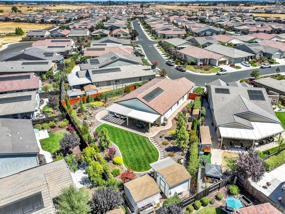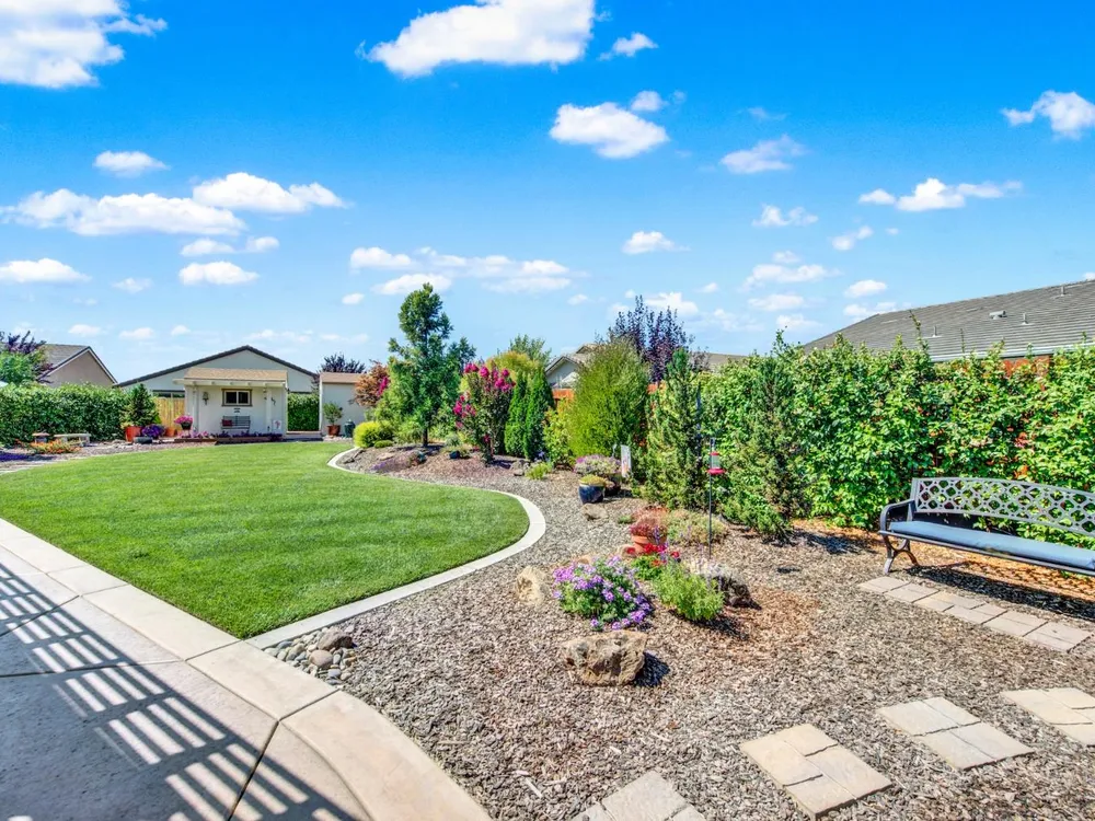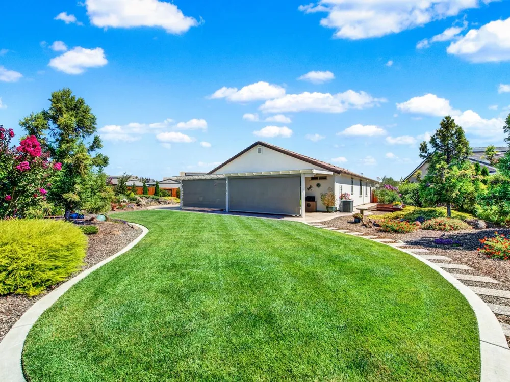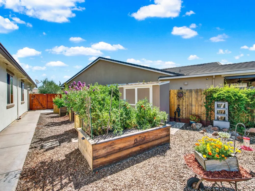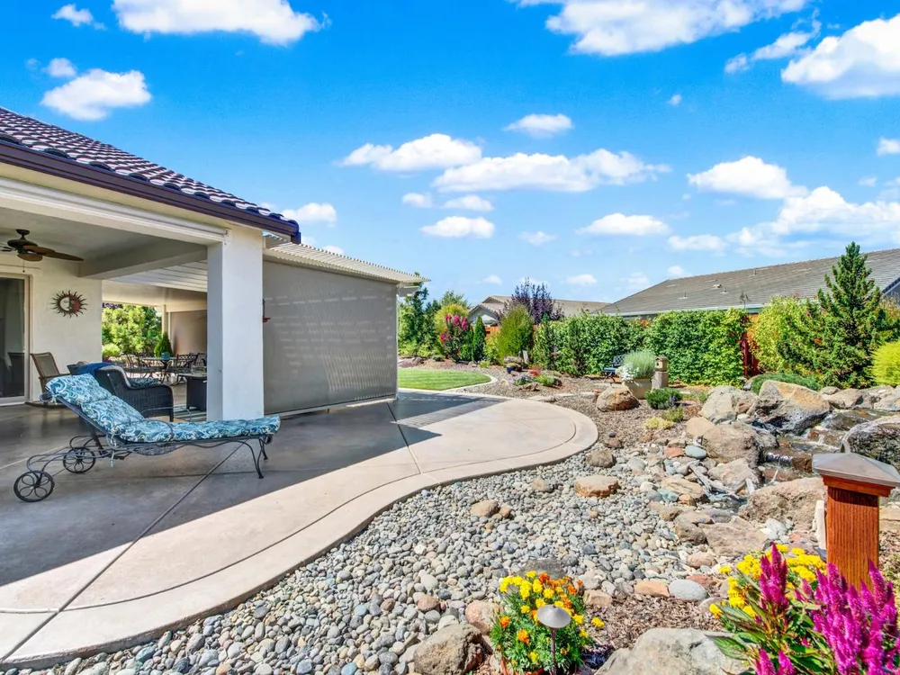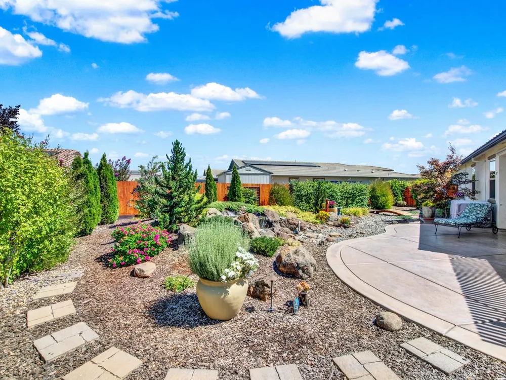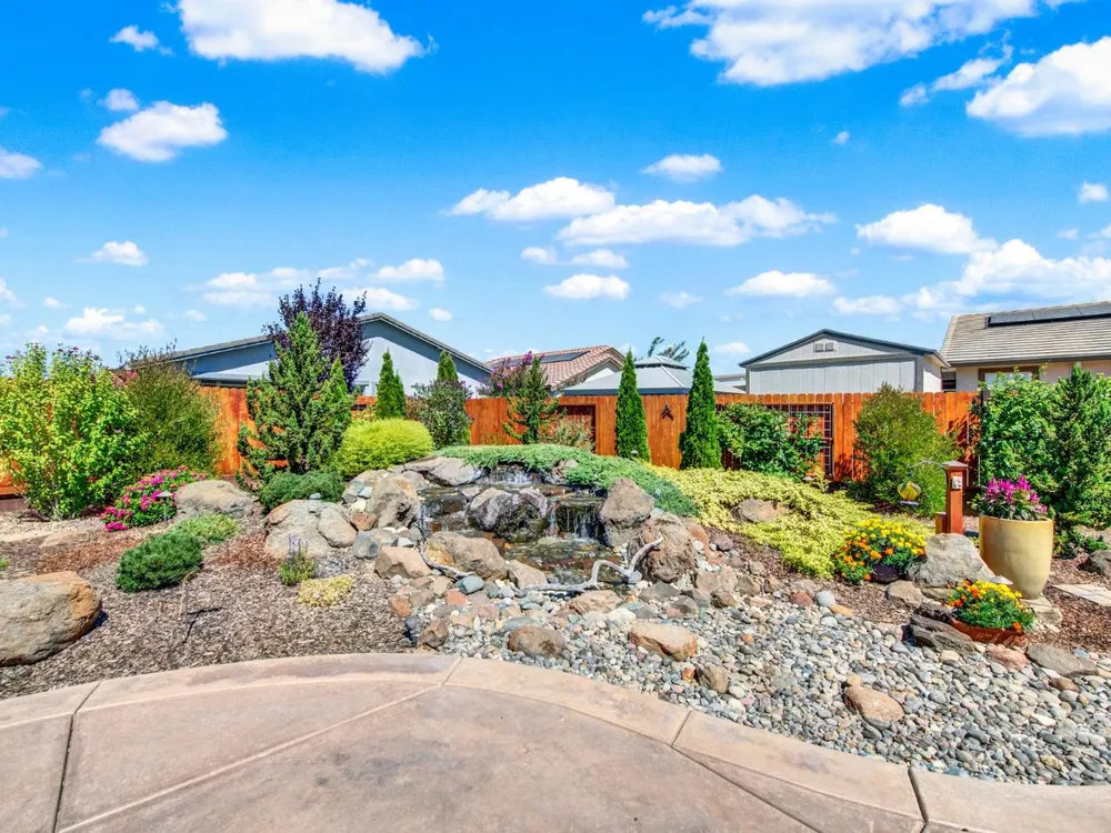The centerpiece of this home is its magical backyard a sanctuary unlike any other, a lush expanse perfect for morning coffee or evenings spent under the stars. Built on the largest lot in the development, this outdoor haven invites both lively celebrations and peaceful solitude. This SMART home offers a seamless blend of comfort and sophistication, featuring a gourmet kitchen with a five-burner stove top, durable quartz countertops, a walk-in corner pantry, and an oversized island that flows into an inviting family room that highlights a view of the backyard oasis. The luxurious primary bedroom has a dual sink bathroom, with an accessible roll-in shower, a walk-in closet, and a view of the back yard fountain from the glass slider. Generous guest bedrooms, full guest bathroom, laundry room with sink, and a long list of additional premium upgrades. 55+ residents of Heritage Vinyard Creek enjoy exclusive access to community amenities such as a clubhouse, swimming pool, fitness center, and courts for pickle & bocce ball. Conveniently located near downtown Sacramento/Elk Grove for shopping, dining, and essential services, this home offers a perfect blend of serenity and accessibility. Come by and take a look!