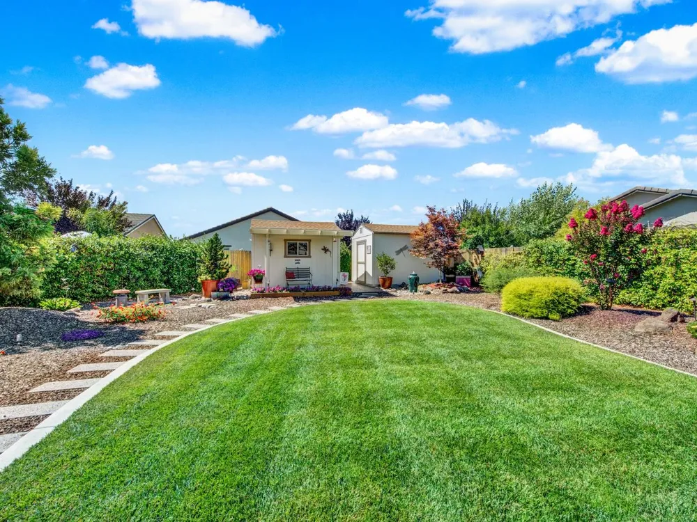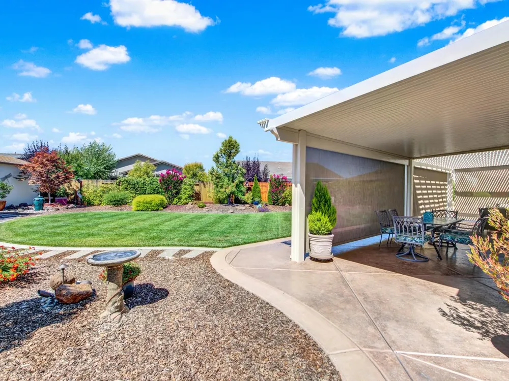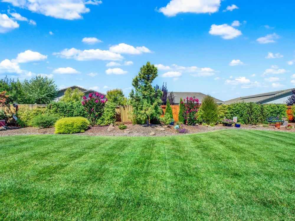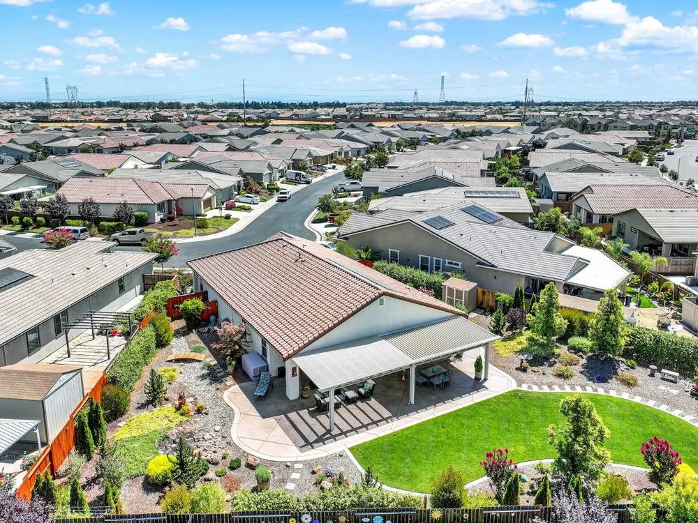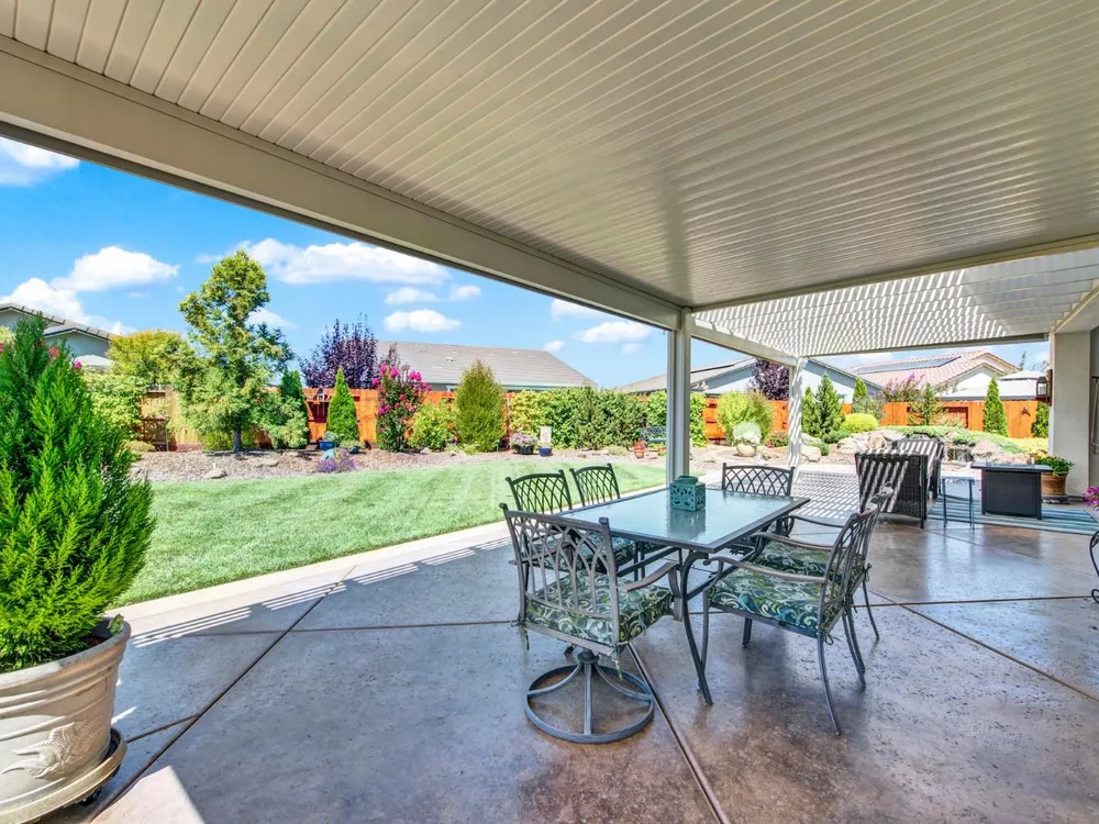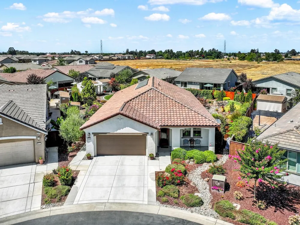 The centerpiece of this home is its magical backyard a sanctuary unlike any other, a lush expanse perfect for morning coffee or evenings spent under the stars. Built on the largest lot in the development, this outdoor haven invites both lively celebrations and peaceful solitude. This SMART home offers a seamless blend of comfort and sophistication, featuring a gourmet kitchen with a five-burner stove top, durable quartz countertops, a walk-in corner pantry, and an oversized island that flows into an inviting family room that highlights a view of the backyard oasis. The luxurious primary bedroom has a dual sink bathroom, with an accessible roll-in shower, a walk-in closet, and a view of the back yard fountain from the glass slider. Generous guest bedrooms, full guest bathroom, laundry room with sink, and a long list of additional premium upgrades. 55+ residents of Heritage Vinyard Creek enjoy exclusive access to community amenities such as a clubhouse, swimming pool, fitness center, and courts for pickle & bocce ball. Conveniently located near downtown Sacramento/Elk Grove for shopping, dining, and essential services, this home offers a perfect blend of serenity and accessibility. Come by and take a look!