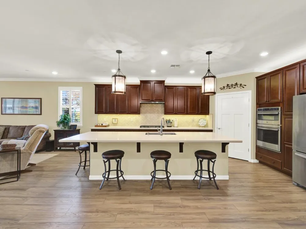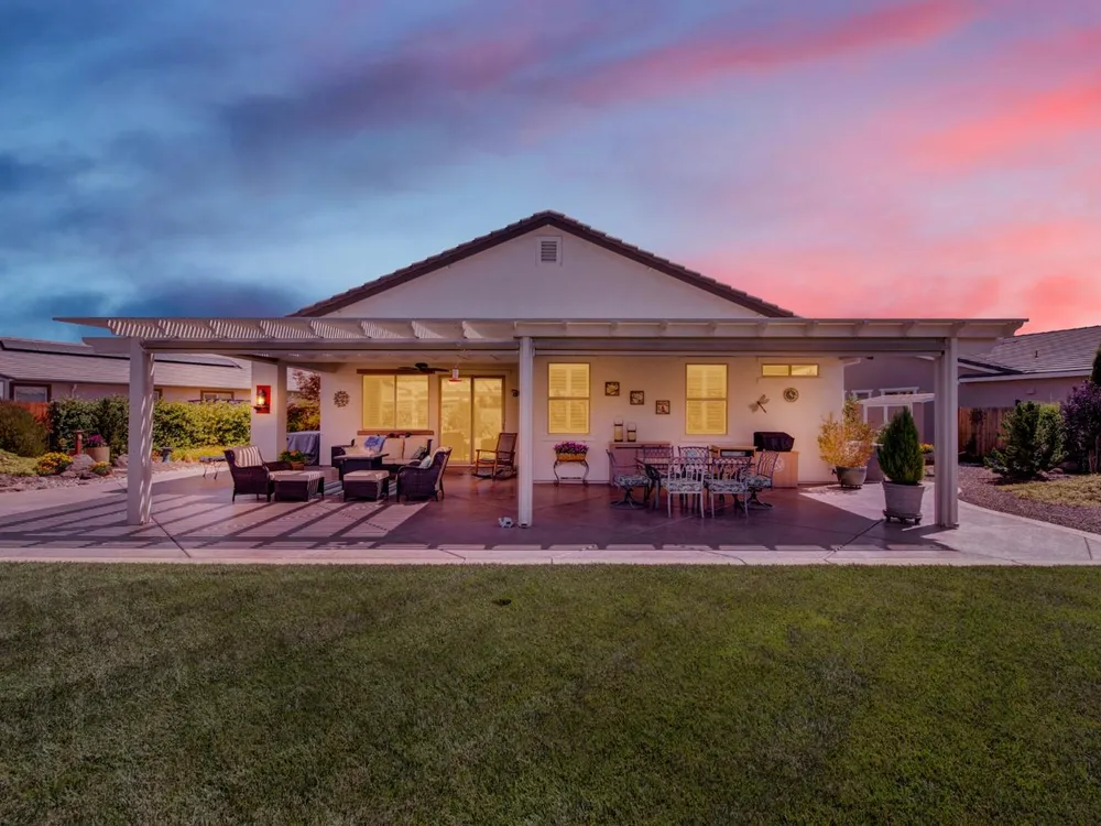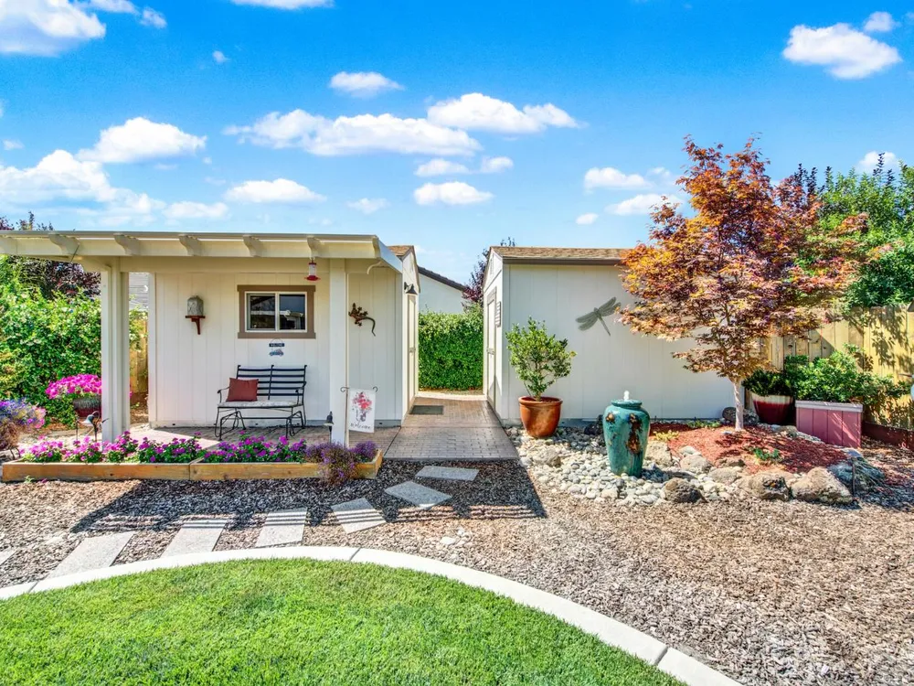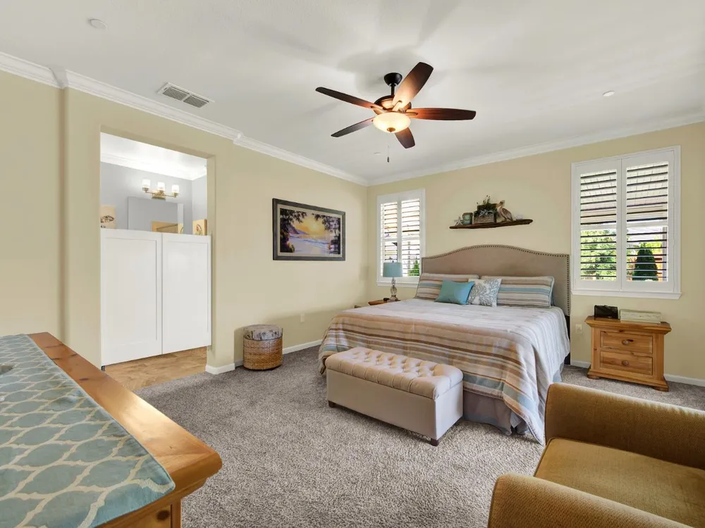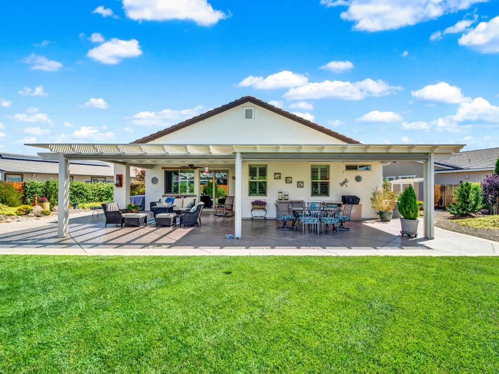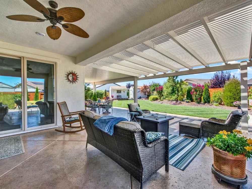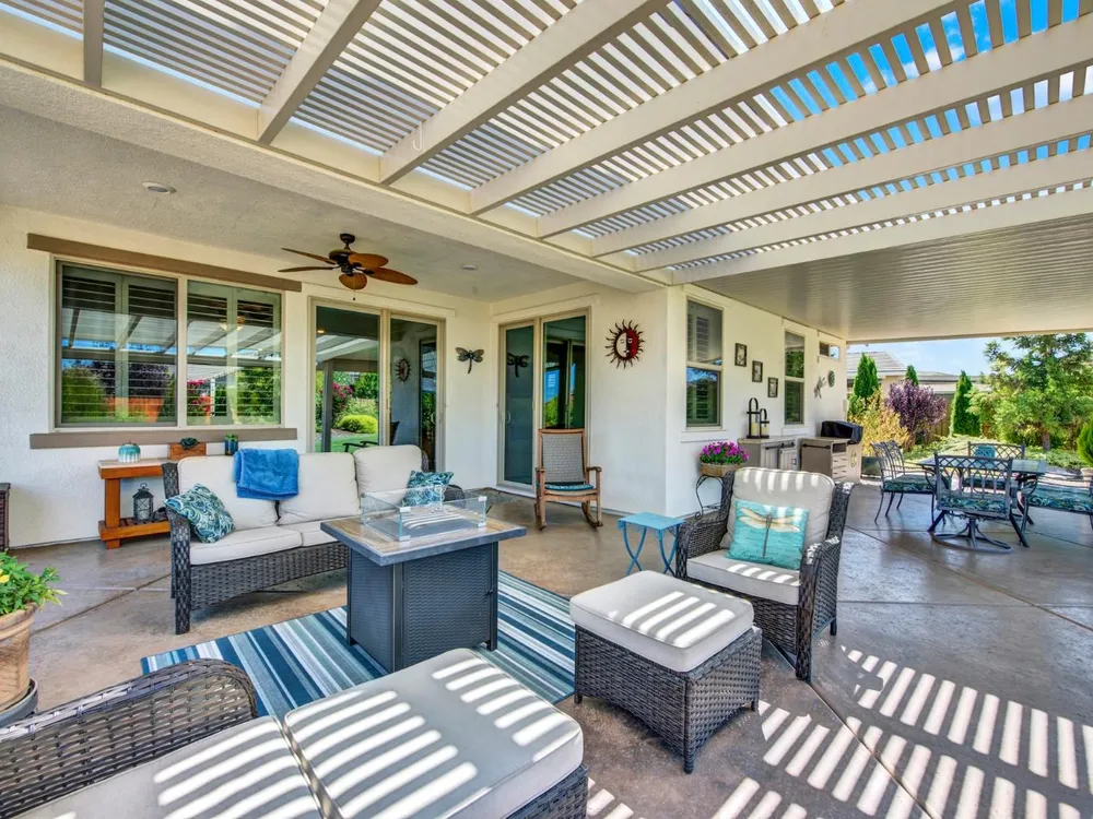 The centerpiece of this home is its magical backyard a sanctuary unlike any other, a lush expanse perfect for morning coffee or evenings spent under the stars. Built on the largest lot in the development, this outdoor haven invites both lively celebrations and peaceful solitude. This SMART home offers a seamless blend of comfort and sophistication, featuring a gourmet kitchen with a five-burner stove top, durable quartz countertops, a walk-in corner pantry, and an oversized island that flows into an inviting family room that highlights a view of the backyard oasis. The luxurious primary bedroom has a dual sink bathroom, with an accessible roll-in shower, a walk-in closet, and a view of the back yard fountain from the glass slider. Generous guest bedrooms, full guest bathroom, laundry room with sink, and a long list of additional premium upgrades. 55+ residents of Heritage Vinyard Creek enjoy exclusive access to community amenities such as a clubhouse, swimming pool, fitness center, and courts for pickle & bocce ball. Conveniently located near downtown Sacramento/Elk Grove for shopping, dining, and essential services, this home offers a perfect blend of serenity and accessibility. Come by and take a look!