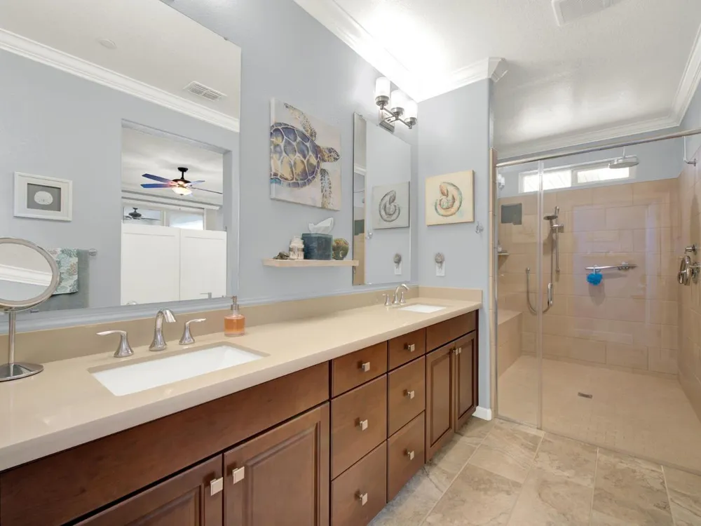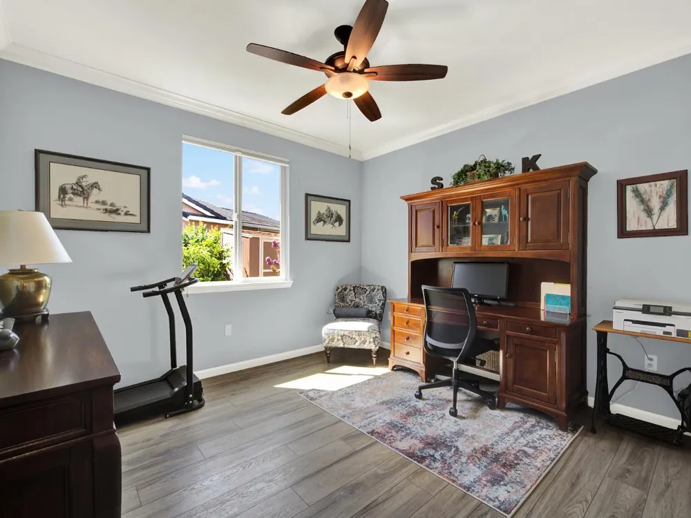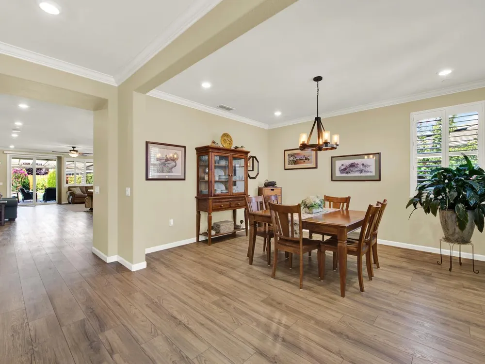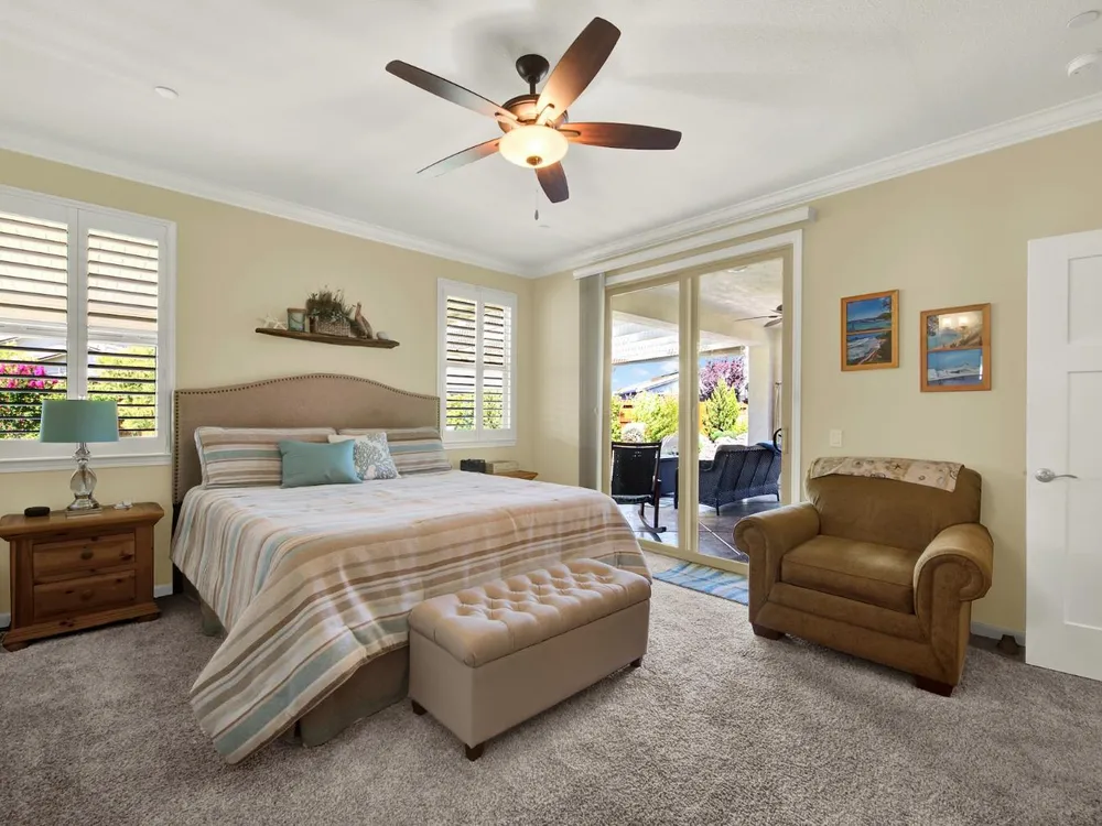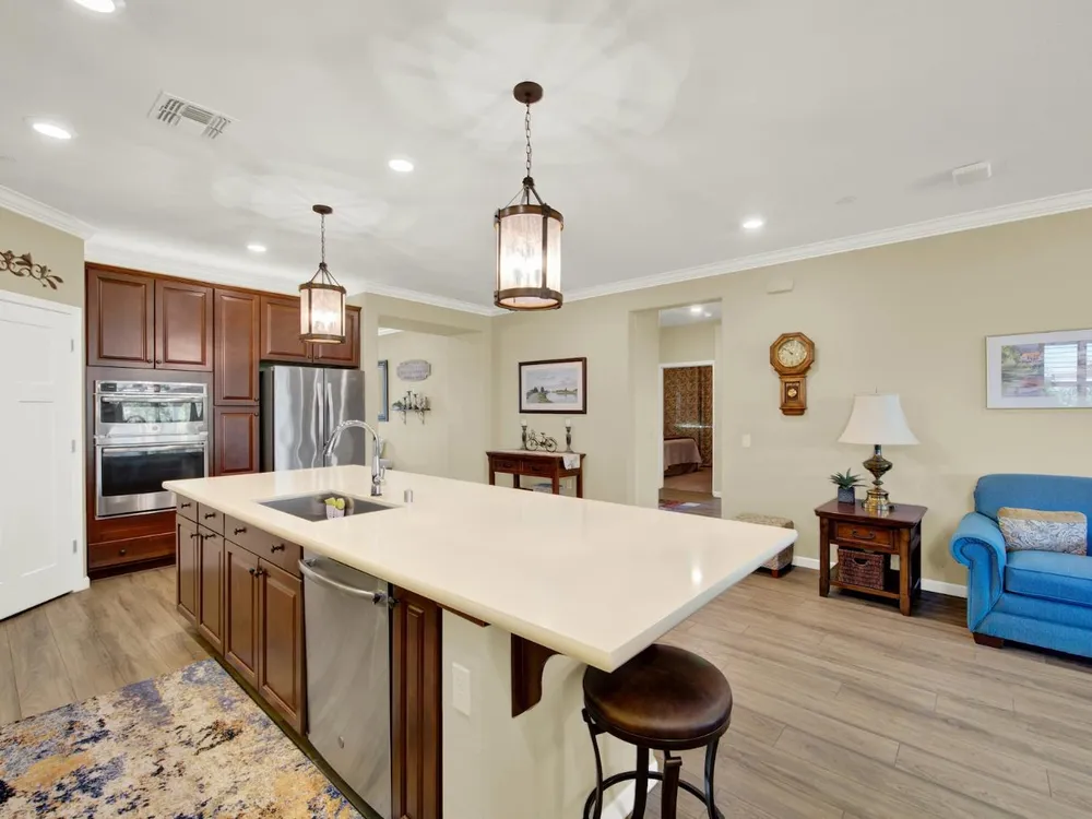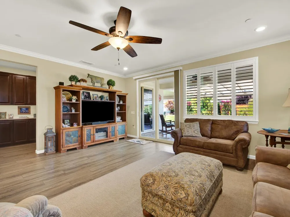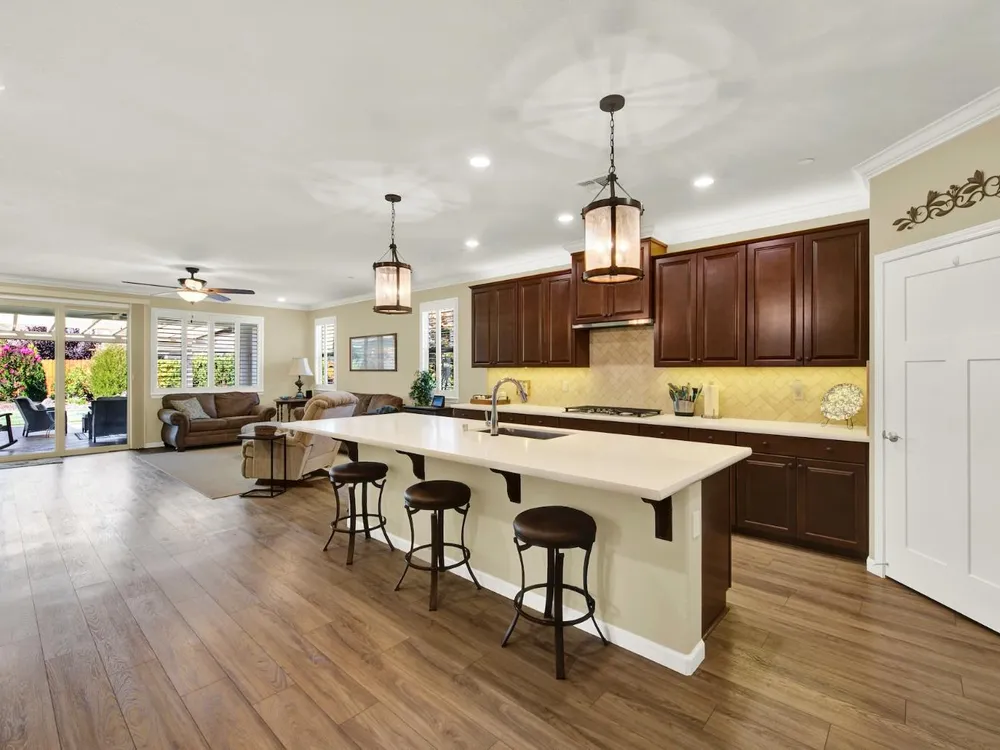 The centerpiece of this home is its magical backyard a sanctuary unlike any other, a lush expanse perfect for morning coffee or evenings spent under the stars. Built on the largest lot in the development, this outdoor haven invites both lively celebrations and peaceful solitude. This SMART home offers a seamless blend of comfort and sophistication, featuring a gourmet kitchen with a five-burner stove top, durable quartz countertops, a walk-in corner pantry, and an oversized island that flows into an inviting family room that highlights a view of the backyard oasis. The luxurious primary bedroom has a dual sink bathroom, with an accessible roll-in shower, a walk-in closet, and a view of the back yard fountain from the glass slider. Generous guest bedrooms, full guest bathroom, laundry room with sink, and a long list of additional premium upgrades. 55+ residents of Heritage Vinyard Creek enjoy exclusive access to community amenities such as a clubhouse, swimming pool, fitness center, and courts for pickle & bocce ball. Conveniently located near downtown Sacramento/Elk Grove for shopping, dining, and essential services, this home offers a perfect blend of serenity and accessibility. Come by and take a look!