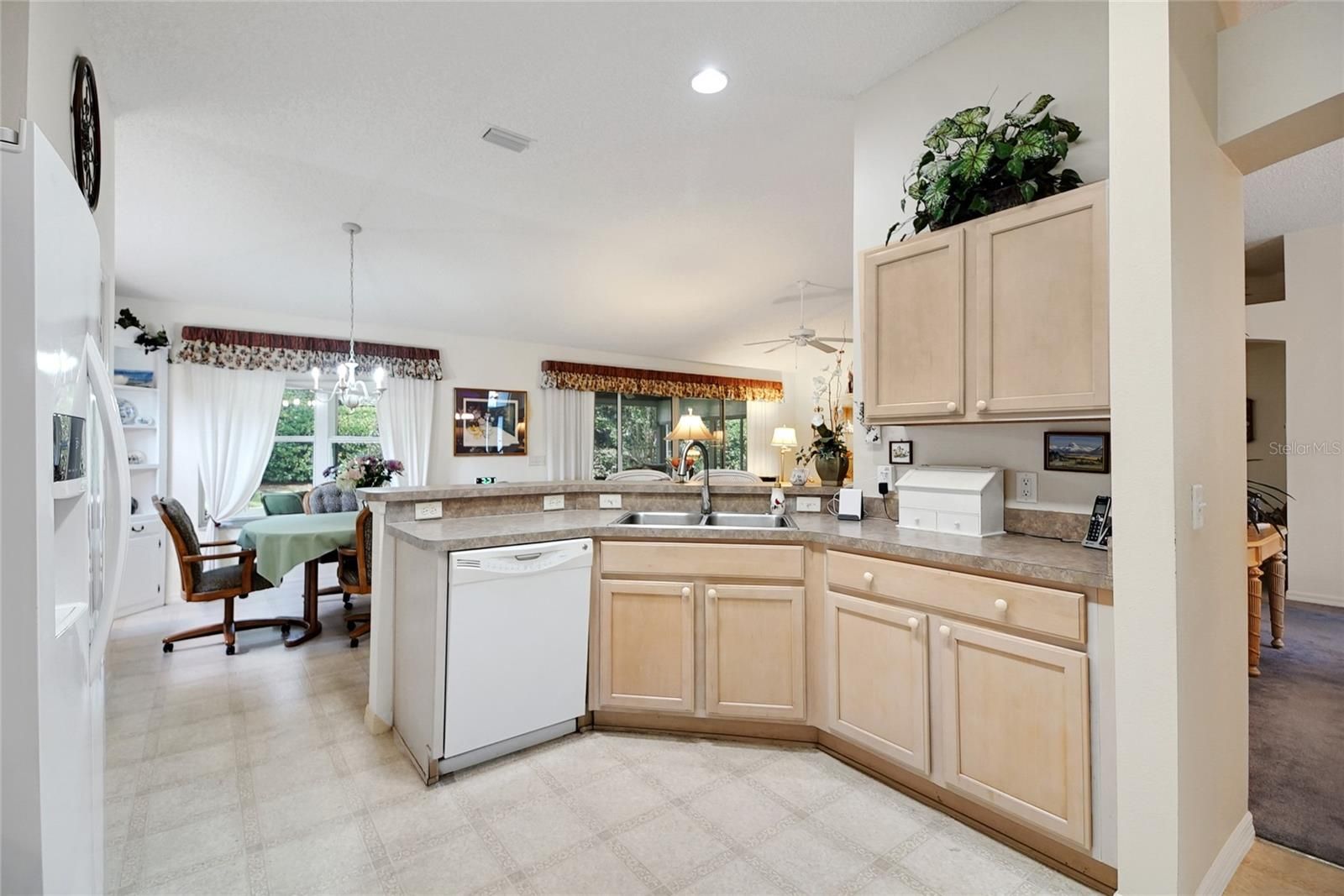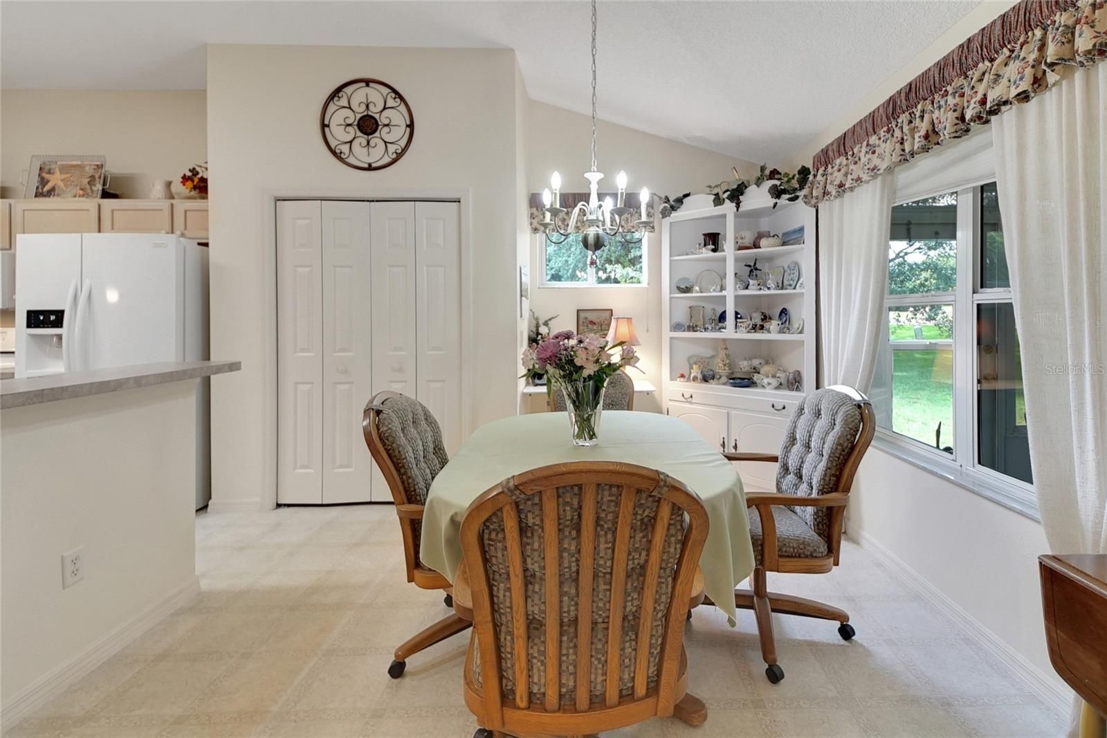 - Ceiling Fan(s), Eat-in Kitchen, High Ceilings, Living/Dining Room, Open Floorplan, Split Bedrooms, Walk-In Closet(s), Window Treatments
