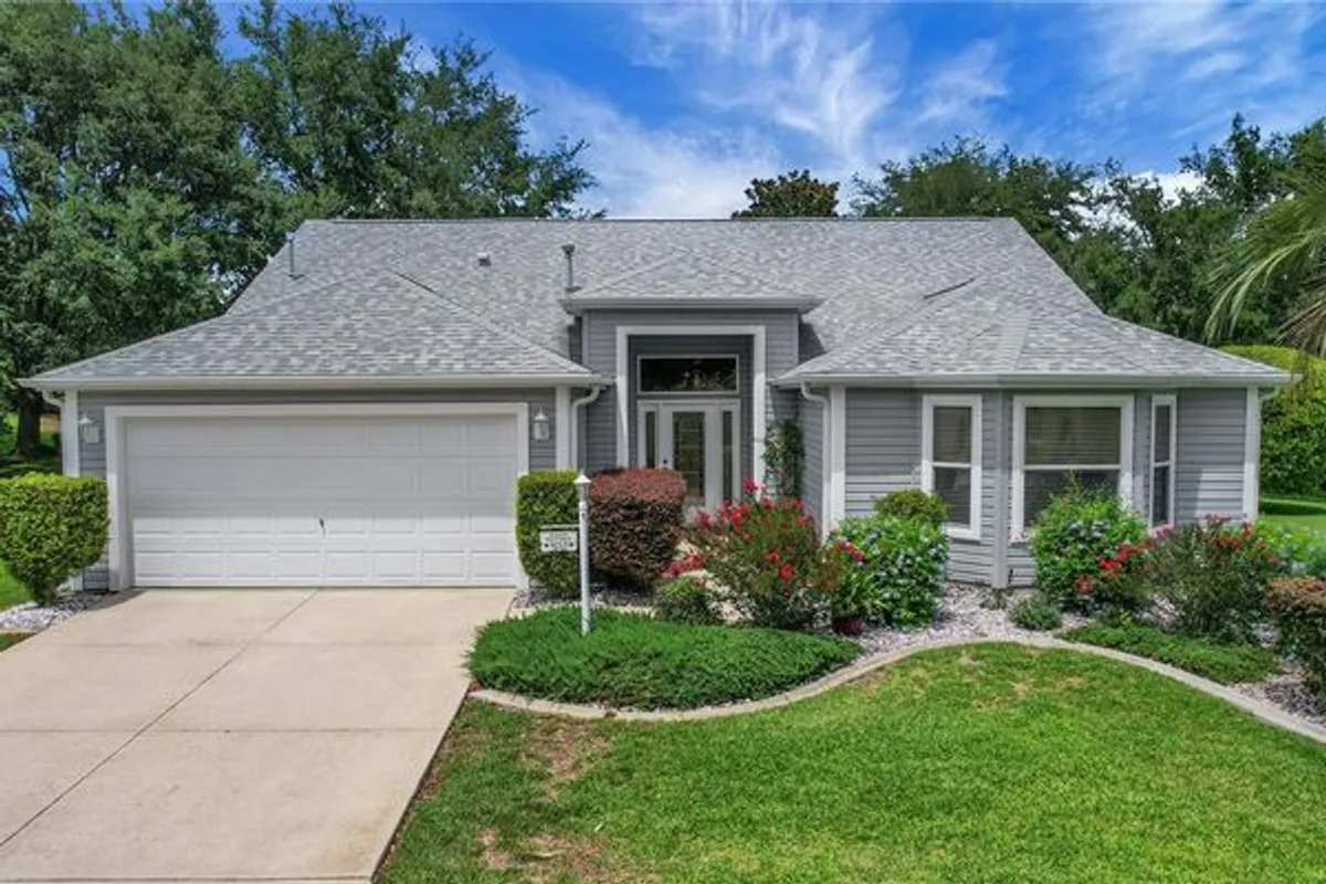 Tucked away on a peaceful cul-de-sac in the highly desirable Woodbury neighborhood, one of the best-kept secrets in The Villages, this BOND PAID 1900+ sq ft heated Crepe Myrtle Designer home on an oversized lot (.29 acre with room for a pool) offers both comfort and convenience. Inside, you’ll find high ceilings and a spacious laundry room with ample storage and an area for a desk. The kitchen features a breakfast bar, perfect for casual dining or entertaining. The primary suite includes a bathroom with double sinks, a toilet closet for privacy, and a walk in shower. Enjoy peace of mind with major updates already completed: ROOF replaced 12/20, HVAC changed out in 2020, and water heater installed in 2013. This home also features both gas and electric utilities. Step outside to a large PRIVATE yard with an extended screened lanai, ideal for relaxing or hosting guests. This home is just a short golf cart ride to Nancy Lopez and Glenview Country Clubs, several community pools, and the Mulberry Grove Recreation Center and plaza. Nearby amenities include shopping, restaurants, banking, and the VA Center — everything you need just moments away. Call today for your private showing!!