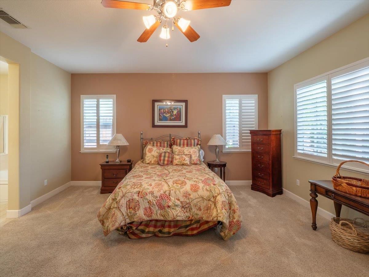 Discover the perfect blend of luxury and leisure in this stunning 2,612 sq. ft. residence located within the Four Seasons 55+ community. From the moment you arrive, the charming front courtyard sets a private, welcoming tone, leading into a sprawling open floor plan designed for modern living and effortless entertaining. At the heart of the home, the chef-inspired kitchen boasts a massive island, sleek cabinetry professionally painted in 2022, and premium finishes that flow seamlessly into the main living areas. Elegant 12x24 tile flooring spans the primary social spaces, while multiple flex rooms offer the versatility needed for a home office, hobby studio, or library. The expansive primary suite serves as a true sanctuary, complemented by a secondary bedroom and two full baths. Outside, the secluded, low-maintenance backyard is a lush oasis featuring a tranquil fountain, a spacious covered patio, and vibrant greenery perfect for quiet mornings or evening gatherings. Practicality meets peace of mind with a 22-panel owned solar array for maximum energy efficiency, an upgraded HVAC and Smart vent 2009, and a full re-pipe completed in 2017 (ensuring the home is Kitec-free). An oversized garage equipped with a full wall of custom cabinetry for superior storage. Enjoy the Low maintenance and an Abundance of Amenities at Four Seasons El Dorado Hills which includes Front Yard Landscape Maintenance, NO MELLO ROOS, the impressive 12,000 square foot Lodge Club House, Pool/Spa, 2-acre Community Garden/Orchard/Vineyard, Private Park, Pickle ball/Tennis/Bocci Courts, Miles of Walking Trails, Clubs and Social Activities Galore and so much more!This meticulously maintained home offers an unparalleled lifestyle of comfort and sophistication in one of the region's most sought-after active adult enclaves.
