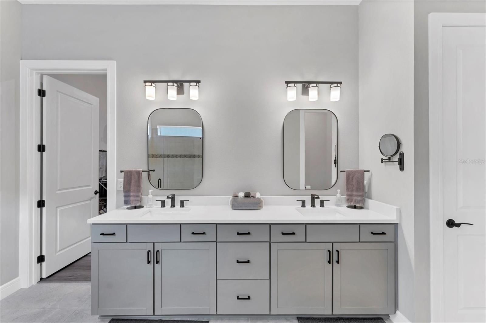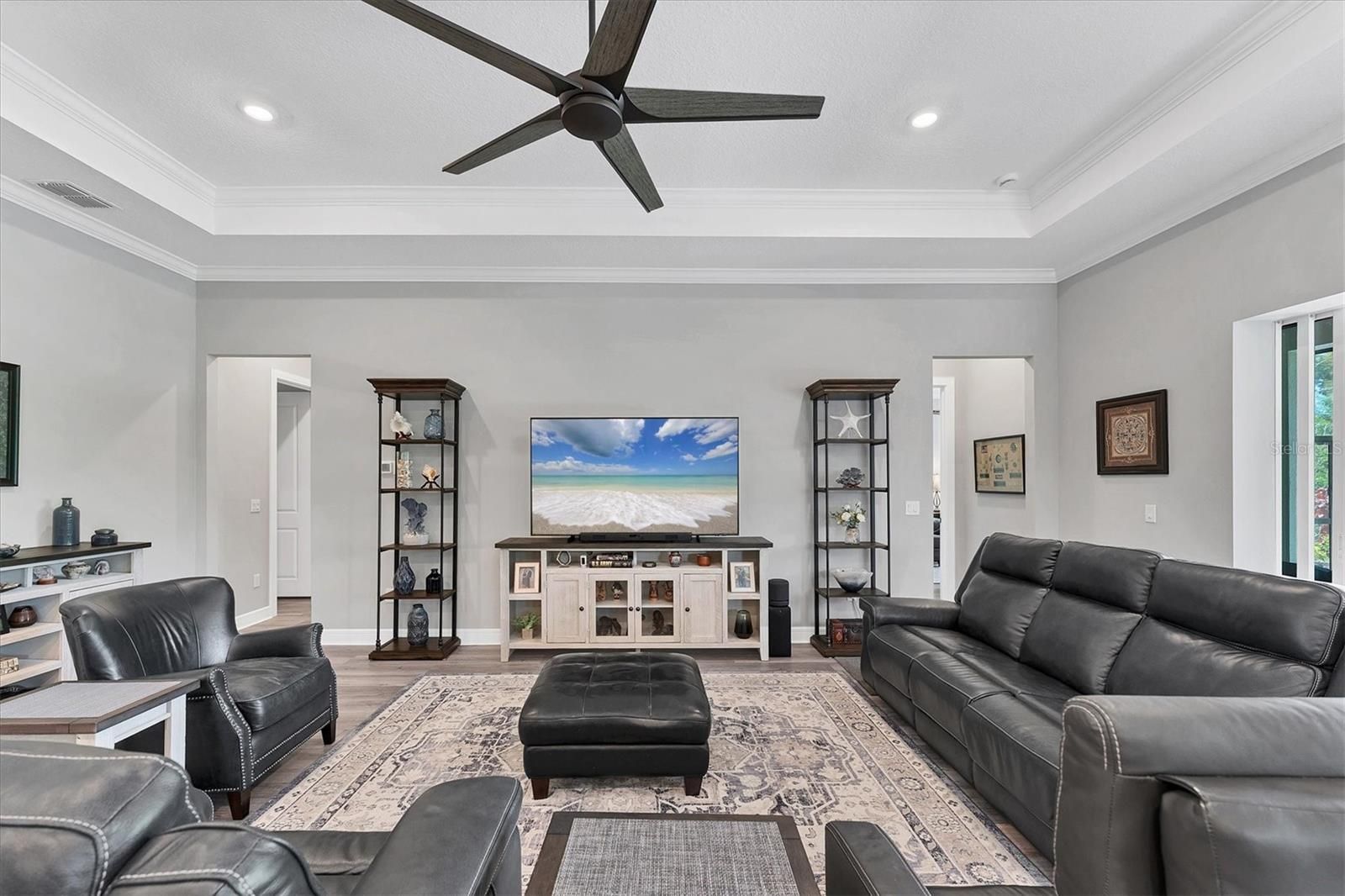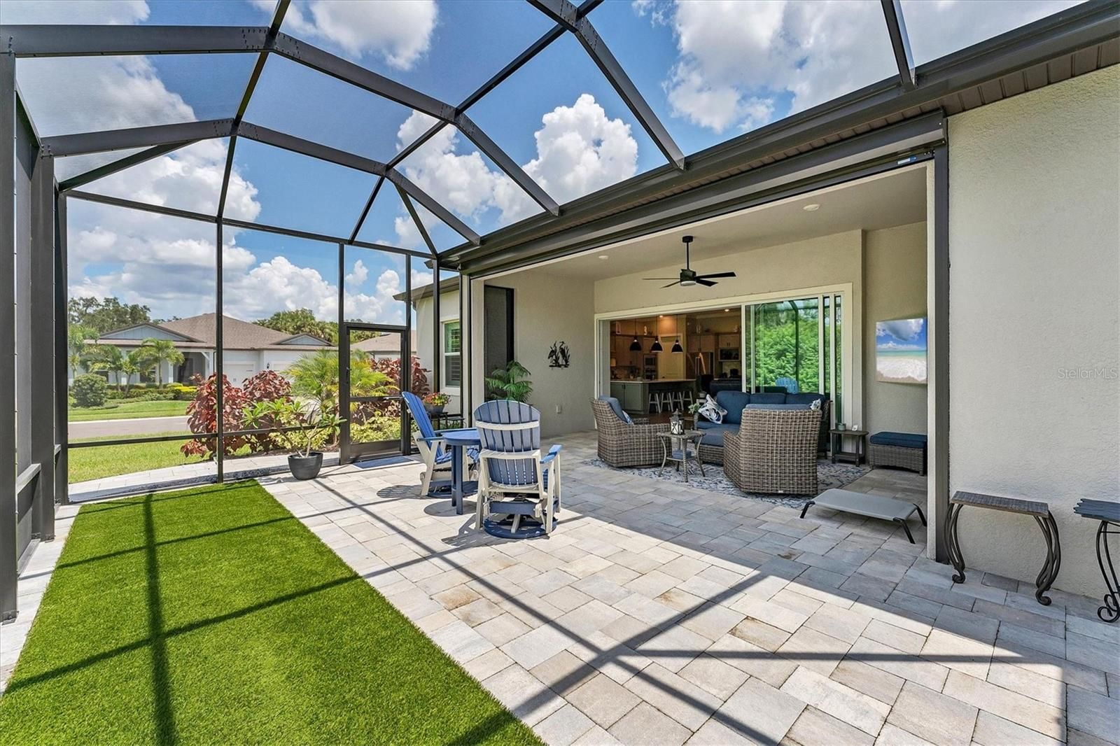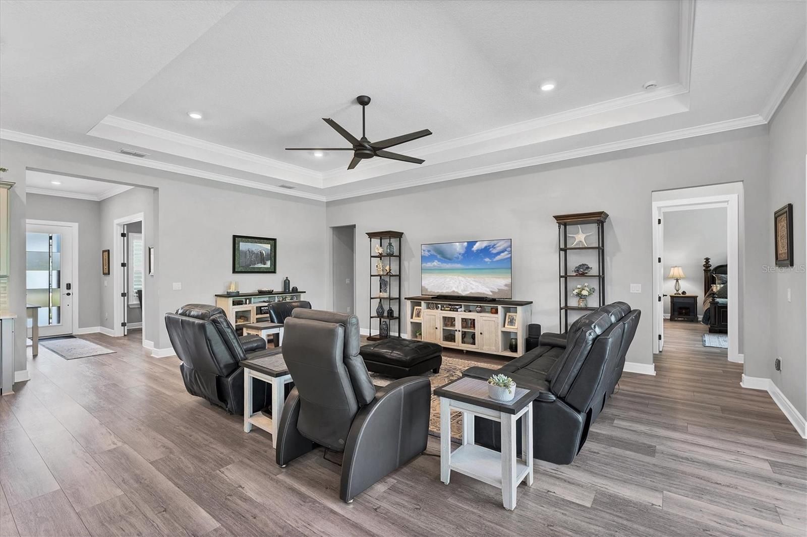 Sellers have moved and want this delightfully finished home sold! This Stellar floorplan delivers it all. The kitchen boasts TWO KitchenAid ovens (PERFECT FOR HOSTING HOLIDAY GATHERINGS), a new Thermador cooktop, and Café series wine and home refrigerators, along with a fully finished walk-in pantry. Sited on a corner lot with conservation views, the sellers have enhanced the landscaping, widened the front walkway, screened the entry, and extended the paver lanai. The lanai is pre-plumbed for an outdoor kitchen and features a remote-controlled hurricane screen. Inside, there is no carpeting—only gorgeous luxury vinyl plank flooring. The home includes three bedrooms, three baths, a spacious den with doors, an inside laundry, and a three-car garage. One guest room offers an ensuite for visitors. The primary bath features custom mirrors, a double sink vanity, and pre-wiring for a bidet in the water closet. Conveniently located near the Driftwood Club amenity center, this home offers easy access to a vibrant 55+ lifestyle. With golf cart-friendly streets, an on-site restaurant, and close proximity to I-75 and 275, you will enjoy the best of Florida living with cultural, music, and beach attractions nearby. Plus, the CDD is included in the taxes. Now vacant, easy to show, and available for a quick close!