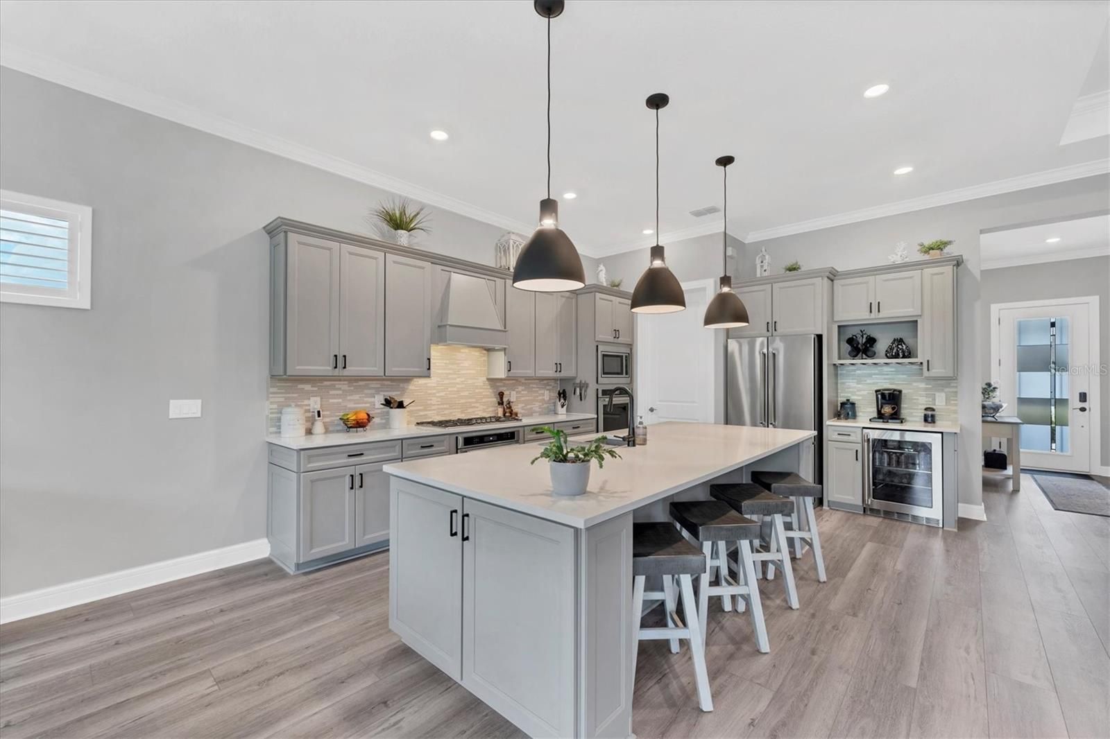 - Bar Fridge, Built-In Oven, Cooktop, Dishwasher, Disposal, Exhaust Fan, Microwave, Refrigerator, Tankless Water Heater, Water Filter, Wine Refrigerator