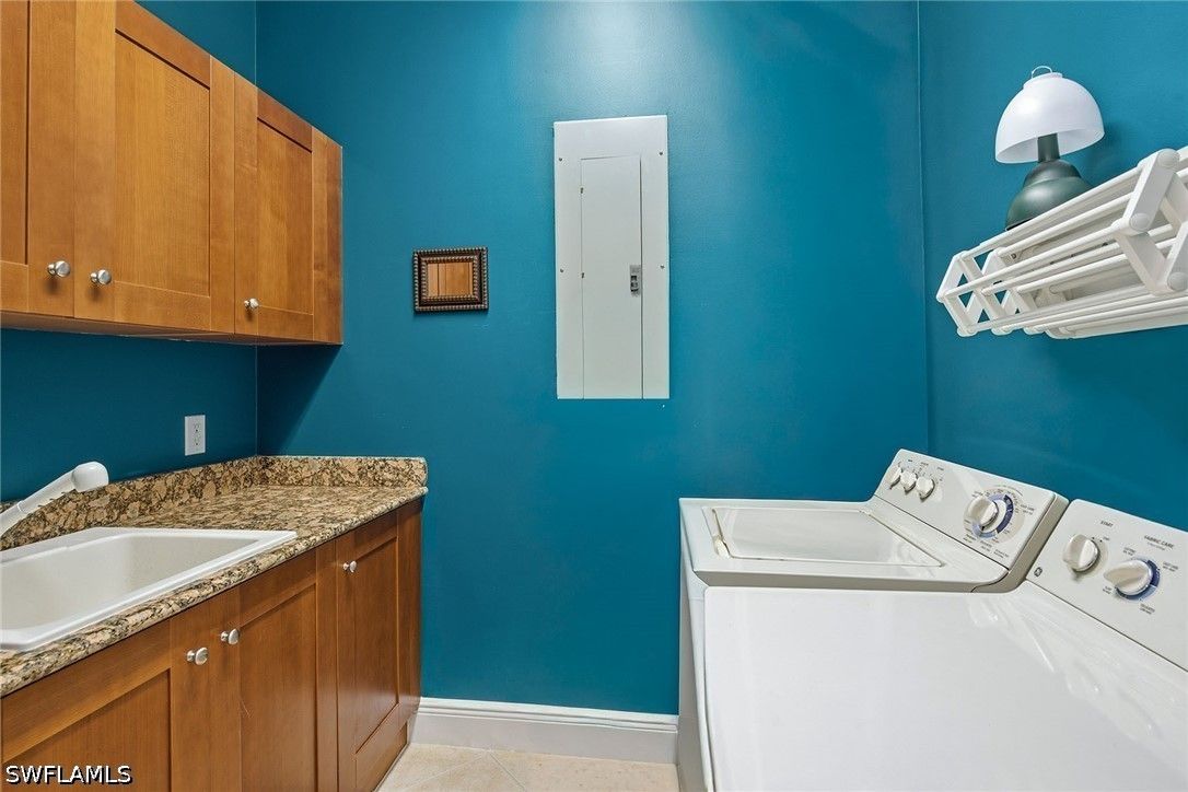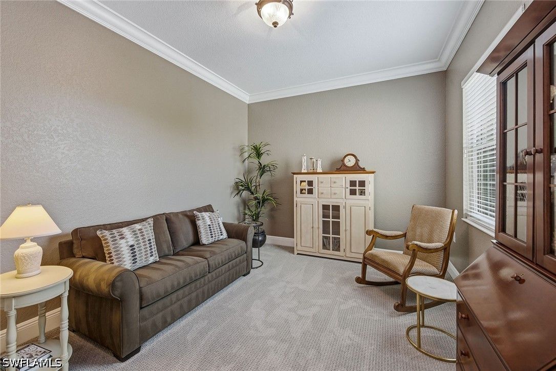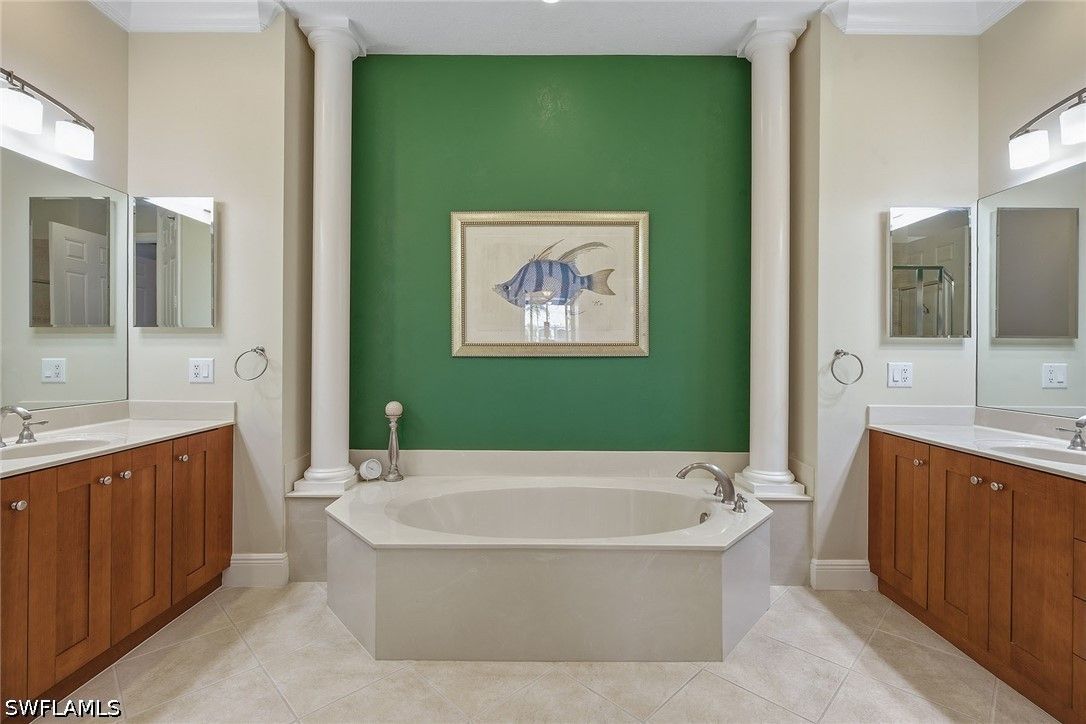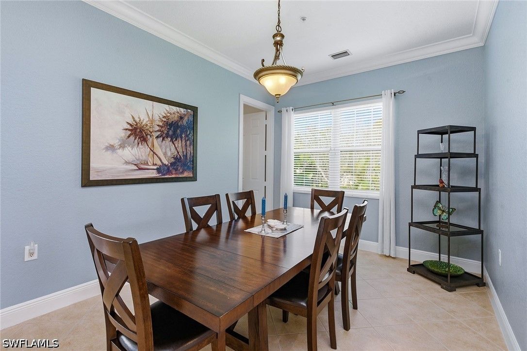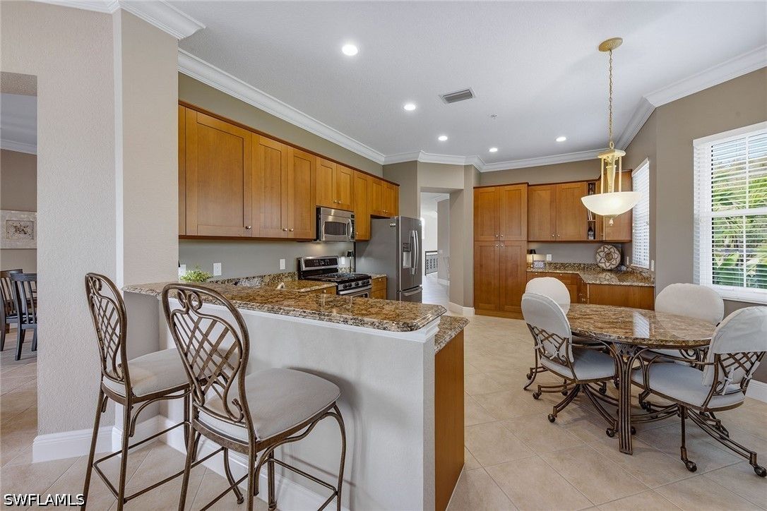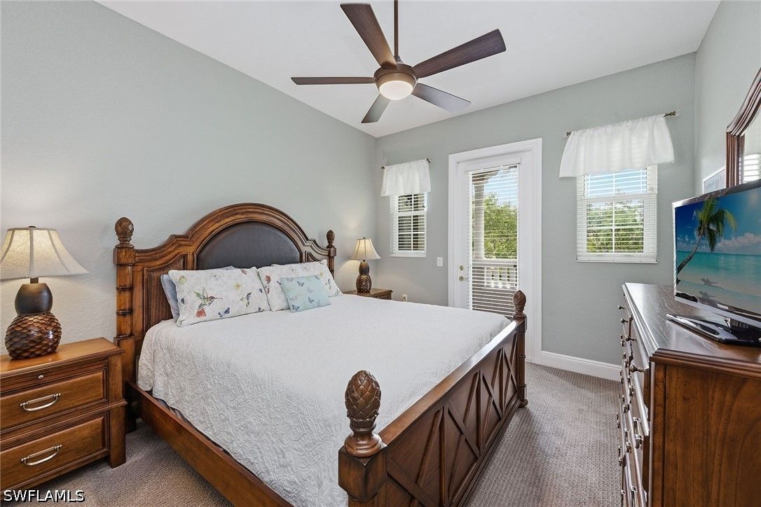 Enjoy tranquil lake views and an abundance of natural light from this beautifully appointed two-story residence in the sought-after Verenna enclave of Fiddler’s Creek. Designed to capture the beauty of its serene setting, this spacious home offers three bedrooms plus a den, three full baths, a private elevator, and a two-car garage, blending comfort, privacy and refined Florida living. An expansive screened and covered balcony creates an ideal outdoor retreat, complete with ceiling fans for year-round enjoyment and peaceful water vistas. Storm protection is thoughtfully integrated with electric and manual shutters, offering added peace of mind. Inside, a harmonious combination of tile flooring in the main living areas and soft carpet in the bedrooms enhances style and comfort. The formal dining room provides an elegant setting for entertaining, while the bright living room features tile flooring, a ceiling fan and glass sliders that open seamlessly to the balcony, filling the space with natural light. A separate family room with tile flooring and a ceiling fan offers additional space for relaxation or gathering. The kitchen is functional and inviting, showcasing recessed lighting, custom cabinetry, a breakfast bar counter and a charming eat-in area. A full appliance package includes a microwave, electric range, dishwasher, and refrigerator with freezer and icemaker, making it ideal for everyday living and hosting. The primary suite is a private haven with sliding doors to the balcony, a ceiling fan and plush carpet flooring. The en-suite bath is thoughtfully designed with a separate soaking tub, enclosed walk-in glass shower, dual sinks with custom mirrors, an enclosed toilet and dual walk-in closets. One guest bedroom offers its retreat with carpet flooring, a closet, private balcony access through glass doors, and an en-suite bath with a glass walk-in shower. The second guest bedroom features a closet, ceiling fan and carpet flooring, with access to a full Jack-and-Jill bath connecting to the dining area, complete with a shower/tub combination. Additional highlights include a well-equipped laundry room with washer and dryer, laundry tub, and extra custom cabinetry for ample storage. Residents enjoy access to exceptional amenities within the 54,000-square-foot club and spa, including poolside and fine dining, a state-of-the-art fitness center with personal training and classes, resort-style pools with waterfalls and slides, full-service spa, sauna, steam room, and active tennis, pickleball and bocce programs, along with a vibrant social calendar. Optional memberships are available for beach and marina access as well as a newly renovated golf course and spectacular clubhouse. Ideally near Marco Island and Naples, this fully furnished residence presents an exceptional opportunity to enjoy a luxurious, move-in-ready lifestyle in one of Southwest Florida’s premier gated communities.