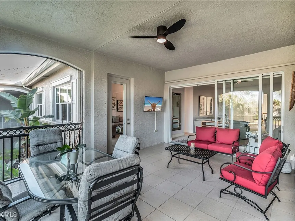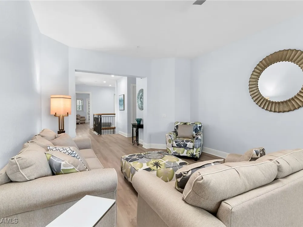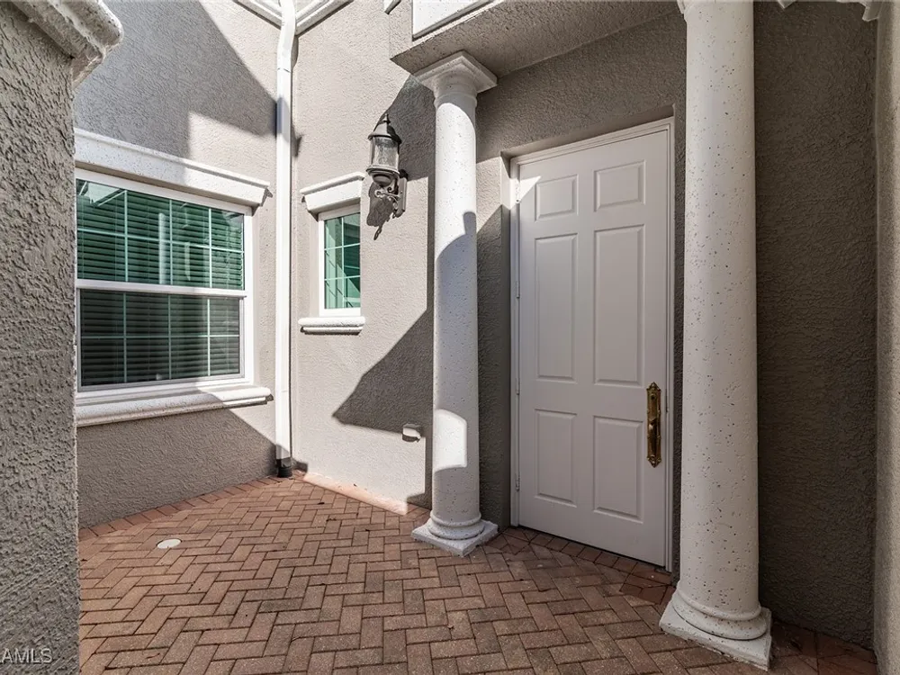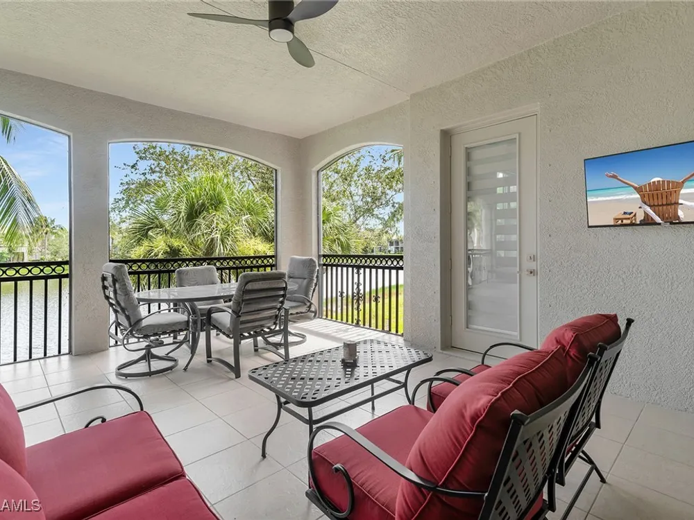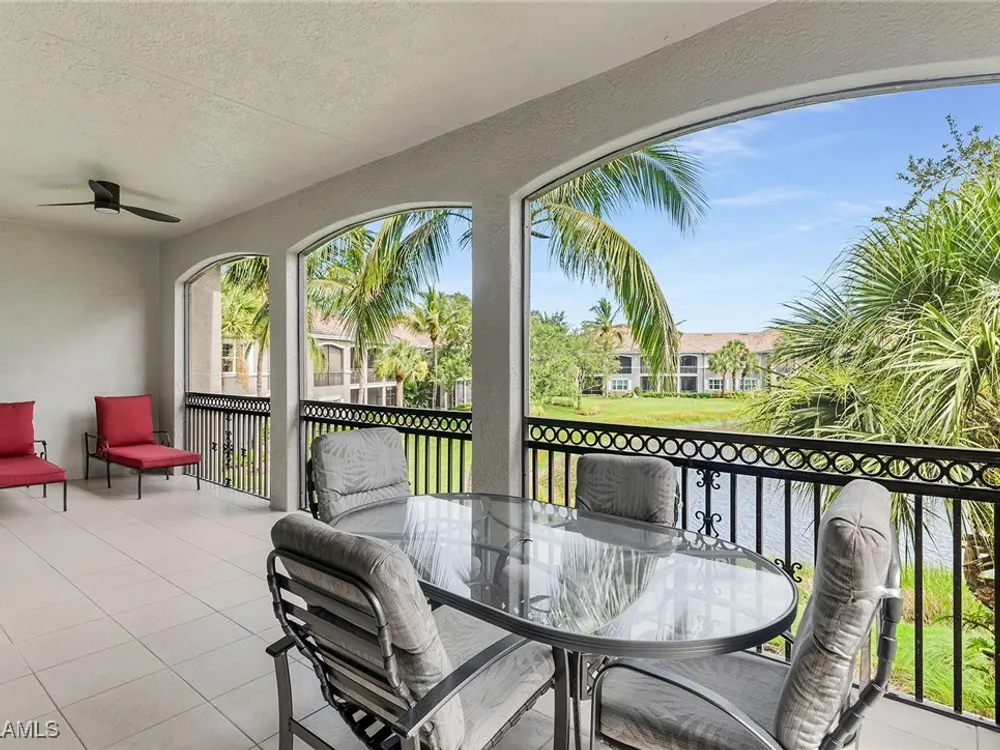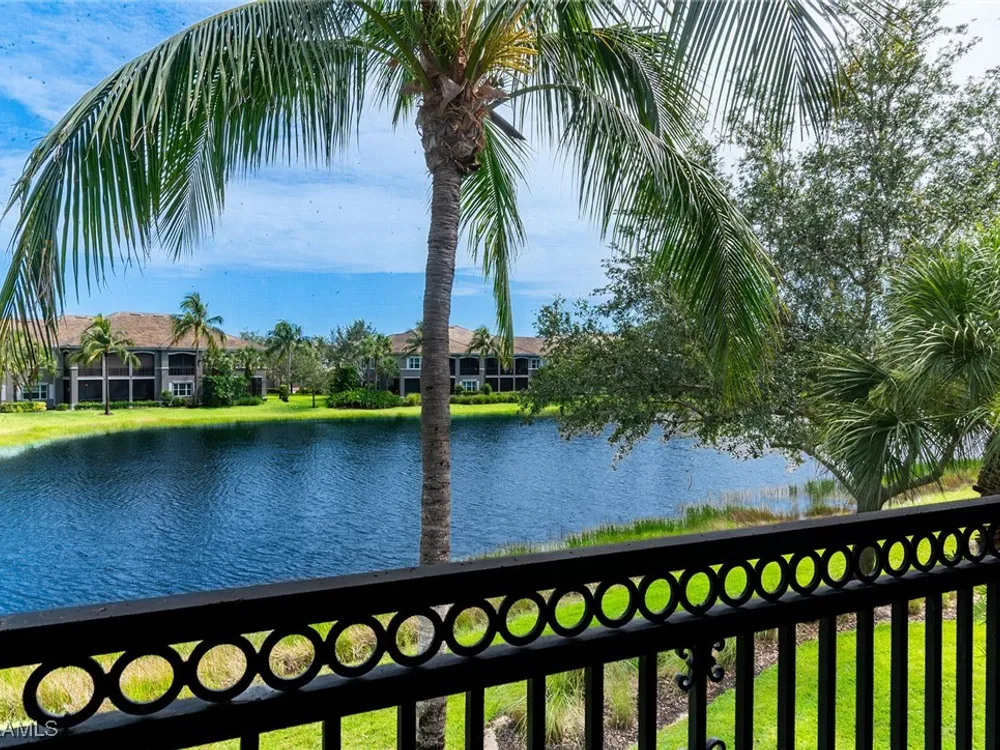 Southern exposure furnished second-floor, top-floor coach home with a large lanai and lake view. Private elevator-ready with a living room, dining room, kitchen opening into the family room, three bedrooms, three baths and a two-car garage. Remote control window shades and sliding glass door blinds, and plantation shutters. The primary bedroom has two walk-in closets, dual sinks, a tub and shower. On a quiet street in the Village of Varenna, close to the village pool. Enjoy a luxurious lifestyle in the amenity-rich Fiddler's Creek enhanced by a 54,000-square-foot club and spa, fitness center with a full-service spa, steam and sauna, three swimming pools, two championship golf courses, six tennis courts with 16 competitive tennis teams, four pickleball courts, a bocce court, fine and casual dining, full calendar of social activities and miles of biking, running and recreational paths. Optional golf, beach club and marina memberships available. Fiddler's Creek is close to the Marco Island Executive Airport, beaches, shopping, restaurants, boating and quick access to Naples 5th Avenue and Naples Airport.