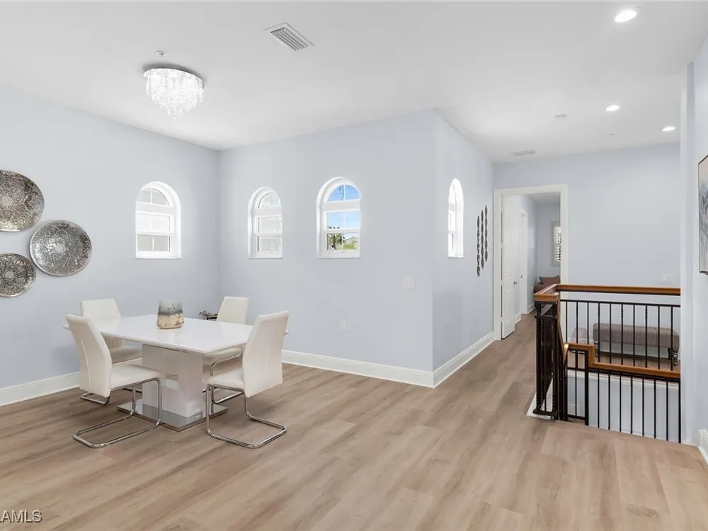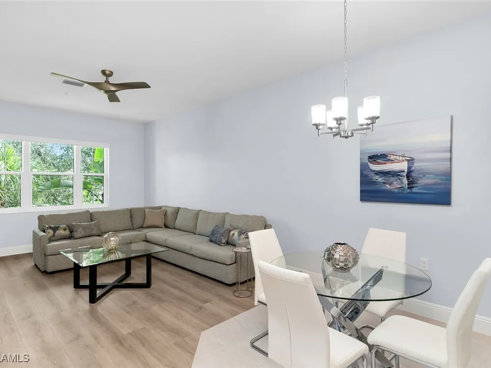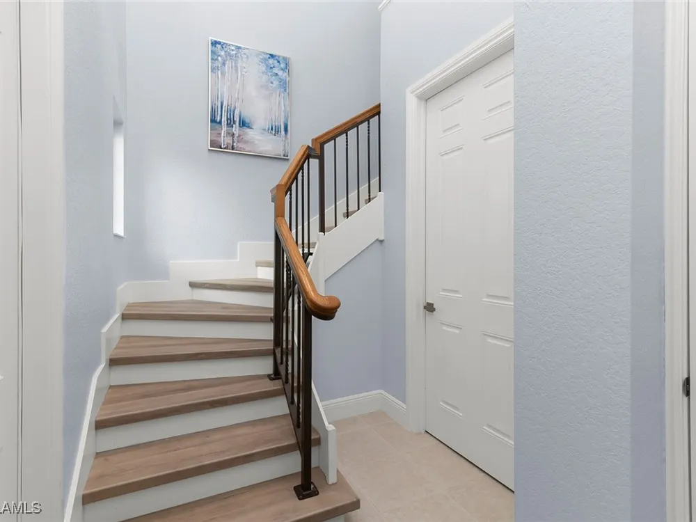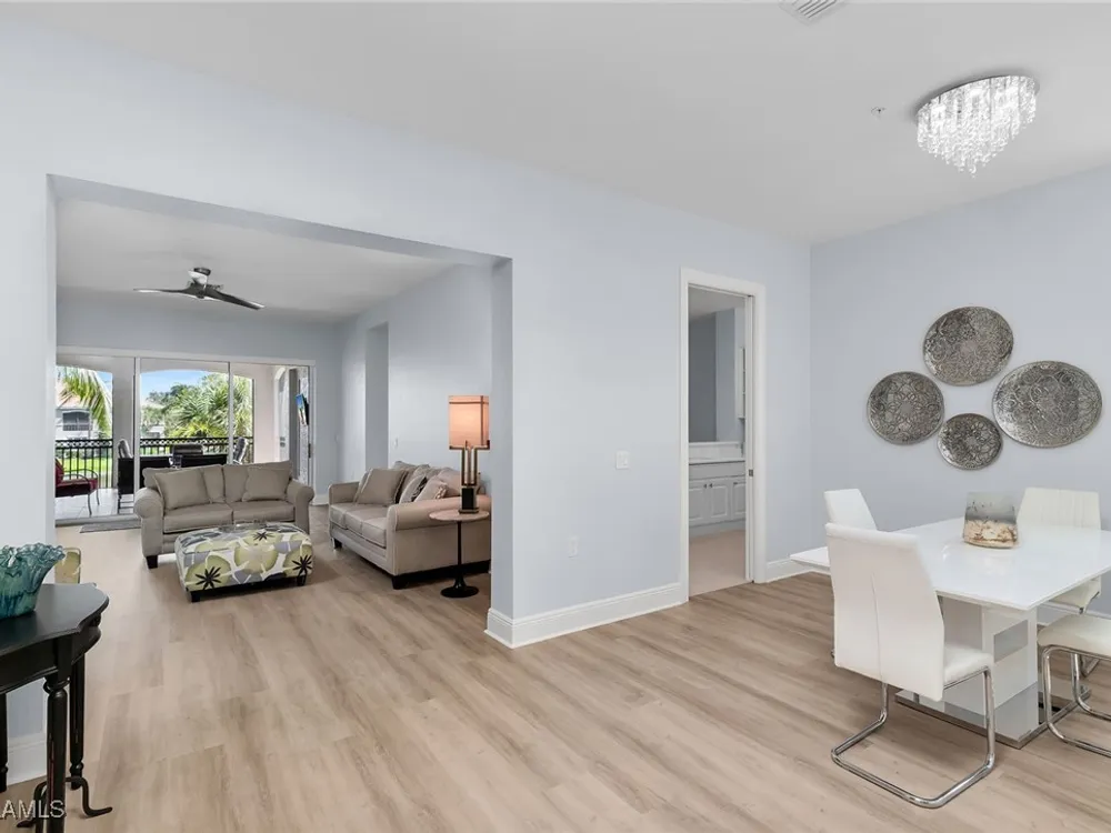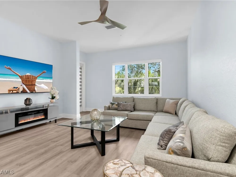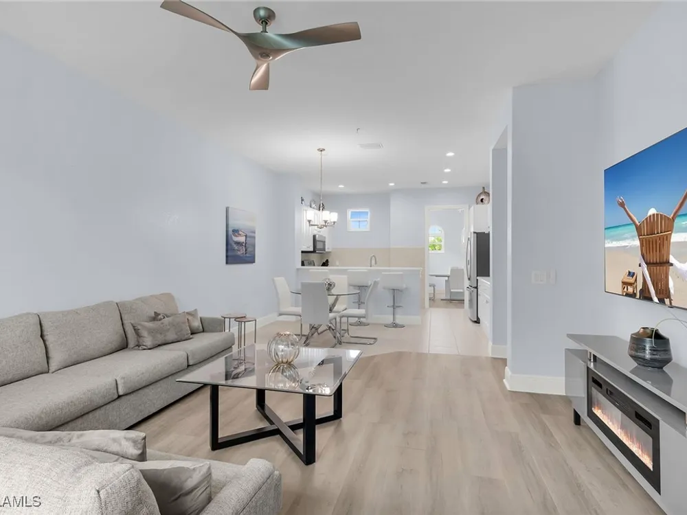Southern exposure furnished second-floor, top-floor coach home with a large lanai and lake view. Private elevator-ready with a living room, dining room, kitchen opening into the family room, three bedrooms, three baths and a two-car garage. Remote control window shades and sliding glass door blinds, and plantation shutters. The primary bedroom has two walk-in closets, dual sinks, a tub and shower. On a quiet street in the Village of Varenna, close to the village pool. Enjoy a luxurious lifestyle in the amenity-rich Fiddler's Creek enhanced by a 54,000-square-foot club and spa, fitness center with a full-service spa, steam and sauna, three swimming pools, two championship golf courses, six tennis courts with 16 competitive tennis teams, four pickleball courts, a bocce court, fine and casual dining, full calendar of social activities and miles of biking, running and recreational paths. Optional golf, beach club and marina memberships available. Fiddler's Creek is close to the Marco Island Executive Airport, beaches, shopping, restaurants, boating and quick access to Naples 5th Avenue and Naples Airport.