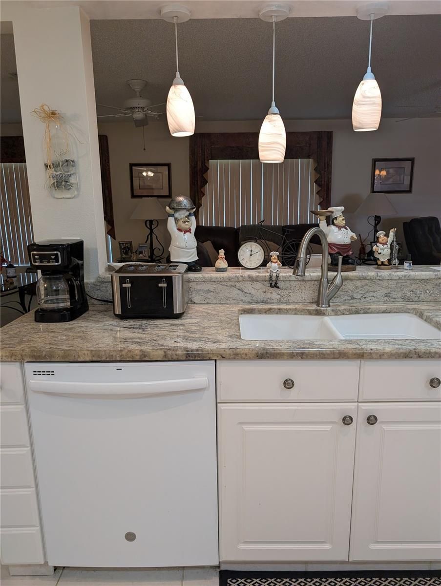 - Ceiling Fan(s), Eat-in Kitchen, Living/Dining Room, Main Level Primary, Stone Counters, Thermostat, Walk-In Closet(s), Window Treatments